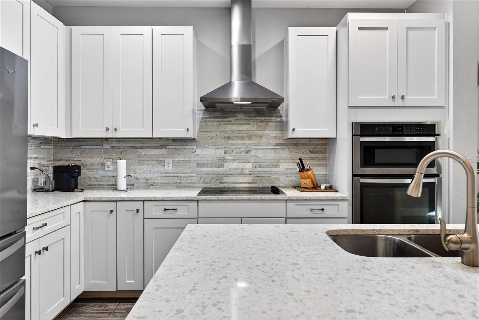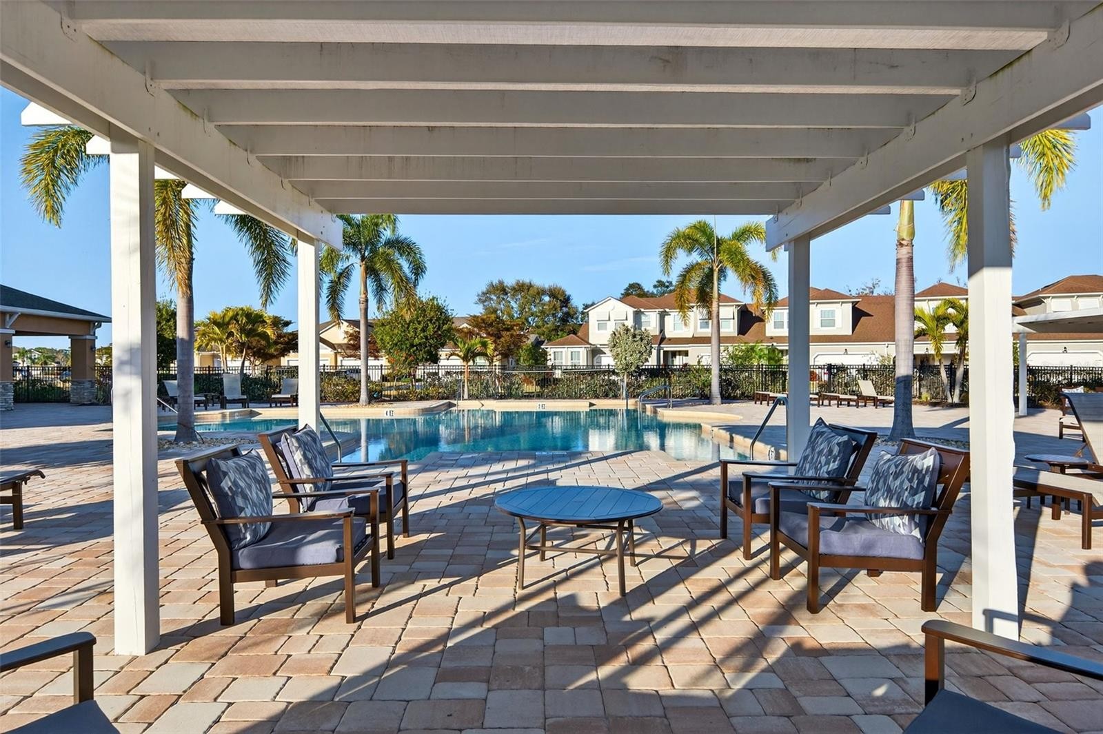 Welcome to this beautifully updated townhome in the Enclave community in Sarasota, featuring a brand new roof and a low-maintenance lifestyle that makes everyday living easy. From the moment you walk in, you’re immediately drawn to the stylish porcelain tile flooring and soaring ceilings that create a bright, open feel. The entryway leads into a thoughtfully designed floor plan and into the kitchen, where quartz countertops, 42-inch white cabinetry, stainless steel appliances, and a striking tile backsplash come together in a clean, modern design. The kitchen flows seamlessly into the living area, making it a great setup for entertaining or simply relaxing at home. A half bath for guests is conveniently positioned on the first floor. The primary suite is also located on the main level, providing the ease and privacy of first-floor living. The en-suite bathroom includes dual vanities, a walk-in shower, and a large closet with upgraded custom built-ins. Upstairs, you’ll find a versatile flex space that can serve as a home office, media room, workout area, or play space—whatever fits your lifestyle. Both guest bedrooms include custom closet systems and share a well-appointed bathroom with a tub/shower combination. The entire second floor has been updated with luxury vinyl flooring, and there’s also a generously sized storage room upstairs, providing plenty of space for seasonal items and extras. Step outside to enjoy the screened-in patio, a perfect spot for morning coffee or winding down in the evening. Additional features include a 2-car garage and a dedicated laundry room for added convenience. Residents of Enclave enjoy access to a resort-style pool, grilling area, and dog park, all within a well-maintained community. Located just minutes from downtown Sarasota, Southgate, world-class beaches, shopping, dining, and everyday conveniences, this home offers the perfect blend of comfort, style, and location.