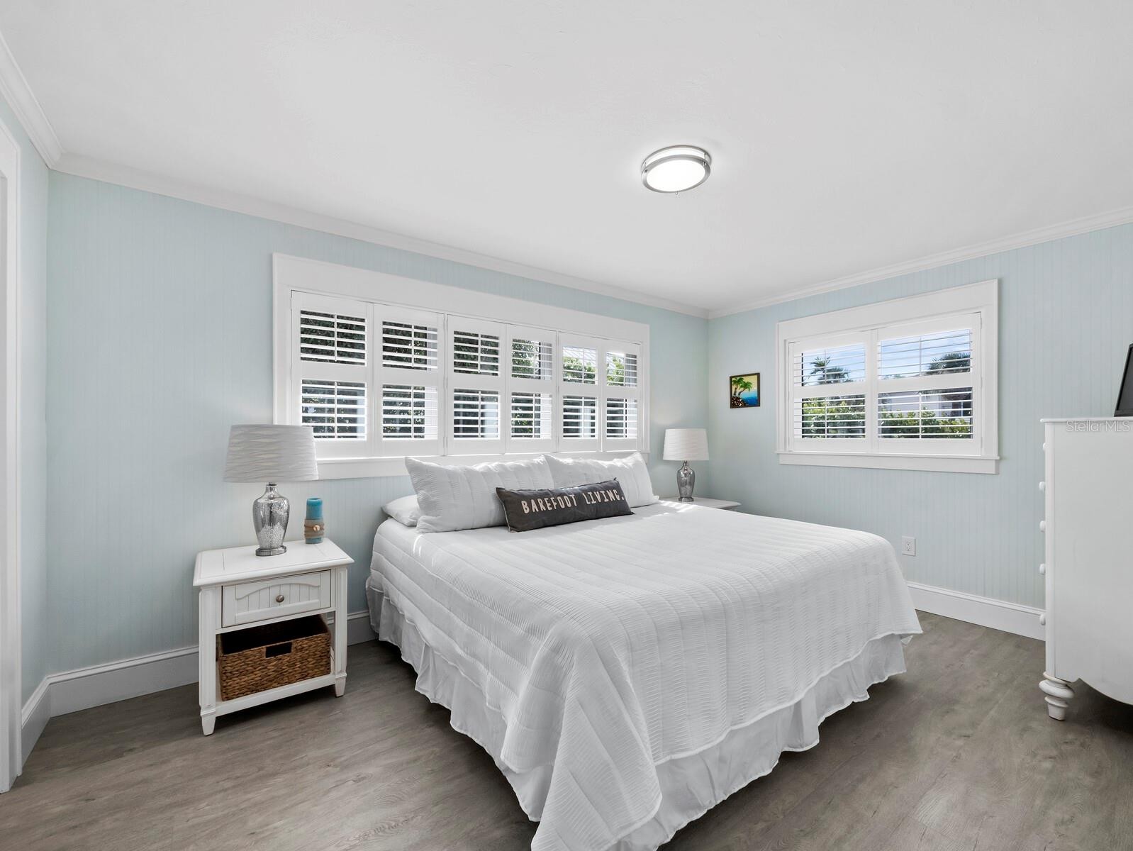 Set at the quiet end of the canal, with open water just beyond the dock and the beach only minutes away, this Country Club Shores home offers an easy, comfortable waterfront lifestyle on South Longboat Key. The 4-bedroom, 3-bath residence spans approximately 2,162 square feet and has been thoughtfully updated to feel open, inviting, and easy to live in. Mature landscaping, a paver driveway and walkway, and a double-door entry create an appealing first impression. Inside, the open floor plan features neutral tones, wood tile flooring, crown molding, plantation shutters, and recessed lighting. The living room is both relaxed and refined, with a built-in electric fireplace and a custom TV niche that keeps the space clean and uncluttered. The kitchen sits at the heart of the home and works well for both daily living and entertaining. It includes white quartz countertops, white cabinetry, a statement range hood, stainless steel Bosch appliances, a tiled backsplash, and a breakfast bar. An adjacent dining area with built-ins adds storage without interrupting the flow. The primary suite offers privacy and comfort, with clerestory windows for added natural light, direct access to the pool, and an updated bath featuring dual vanities, a glass-enclosed walk-in shower, and a spacious custom closet. The additional bedrooms are well-appointed and versatile, suitable for guests, an office, or everyday use. Impact sliders open to a covered and screened lanai overlooking the pool, where a waterfall feature adds a subtle focal point. Brick pavers and lush landscaping surround the outdoor area, creating a comfortable space for entertaining or quiet time outdoors. A paver path leads to the private dock, recently updated and equipped with a boat lift and jet ski platform, all on excellent boating water with direct access to Sarasota Bay. Additional features include a side-entry garage, barrel tile roof, and high-impact glass throughout. Country Club Shores is one of Longboat Key’s established waterfront communities, offering DEEDED BEACH ACCESS and a convenient south-end location close to St. Armands Circle and downtown Sarasota.