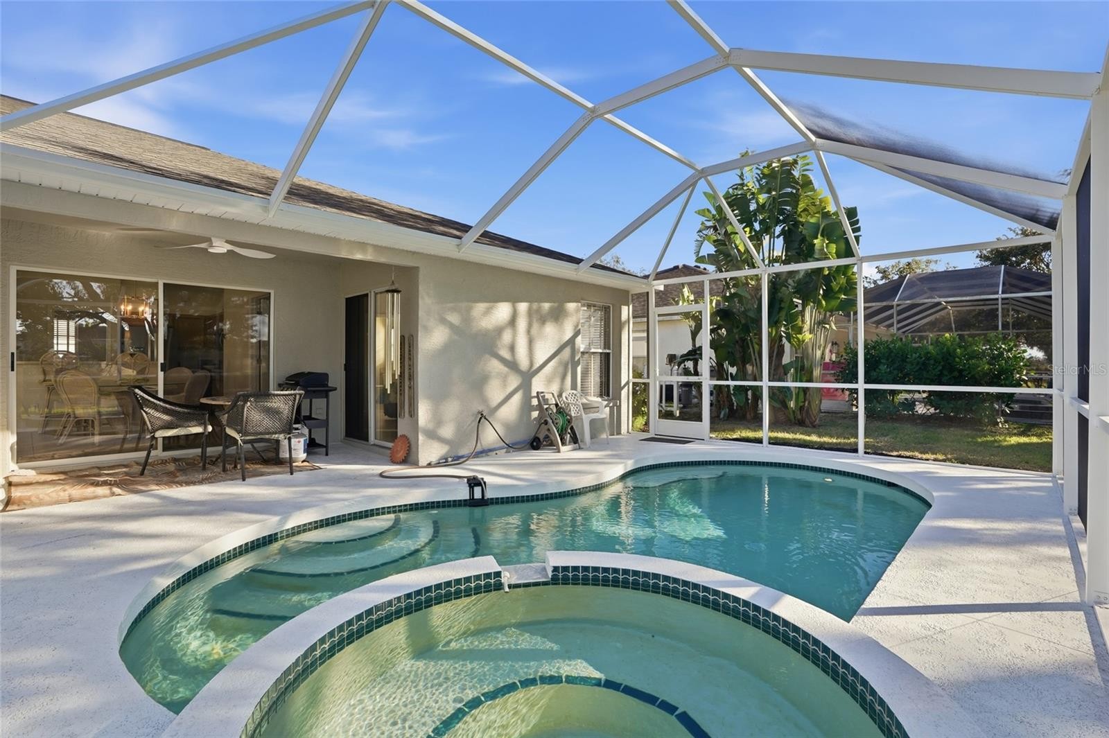Pool & Spa Home with Pond Views, Vaulted Ceilings & Major Updates This well-maintained block home built in 1997 offers 3 bedrooms and 2 full baths with a sought-after split-bedroom floor plan and vaulted ceilings that fill the main living areas with natural light. Step outside to classic Florida living with a screen-enclosed pool and spa, all overlooking a serene pond surrounded by mature landscaping—a private, peaceful backdrop for everyday enjoyment or entertaining. The primary suite is a true retreat, featuring private sliders to the pool and lanai for effortless indoor-outdoor living. Significant recent upgrades include a new roof, new HVAC, fresh interior and exterior paint, a newly painted pool deck, and a new pool pump, offering comfort, efficiency, and peace of mind. Inside, the home is clean, bright, and well cared for, presenting an excellent opportunity to personalize with cosmetic updates. With durable block construction and a location in an established neighborhood, this property delivers the perfect blend of lifestyle, privacy, and long-term potential.
