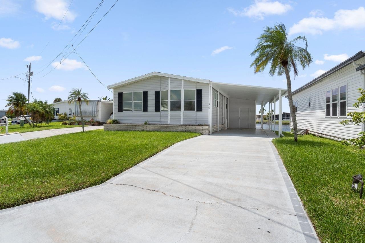 PRICE REDUCTION OF OVER $19,000! Enjoy everyday with the gentle shimmer of STUNNING CANAL FRONT WATER VIEWS from this RARE 3 BEDROOM, 2 bathroom retreat in Harbor Cove, an affordable 55+ waterfront community with GULF ACCESS. This spacious 1,341 sq. ft. FURNISHED home in the pet section invites you to unwind in a living room that opens to a wide canal, where manatees swim and herons perch just beyond your patio. The open kitchen and dining area offer generous counter space and cabinetry, perfect for preparing meals as sunlight filters through the skylights. A split bedroom plan ensures privacy in the large primary suite but also offers direct views through the living room access when desired. Two additional bedrooms near the hall bathroom make it easy for family and friends to be comfortable. Step outside and find your covered porch nearly at the water’s edge, perfect for gathering with friends for evening beverages, watching the boats go by or some backyard fishing. The HOA maintains the seawall and with a leasehold fee of just $99 PER YEAR, this is very affordable living in harmony with nature. Sellers have owned this property since 2017 and are unaware of any flooding to the home. Updates within the past 4 years include a new AC system, carport, siding, gutters, living room vinyl flooring, bathroom tile, renovated shower, and more. A long driveway, carport, and shed provide ample space for guests and gear. Beyond your doorstep is a 90-slip marina, amazing fishing and boating opportunities along the Myakka River, two swimming pools, a hot tub, bocce and shuffleboard courts and a 2-story clubhouse alive with dances, outdoor picnics, games, and community fun. Join the boat club or woodworking shop, participate in water aerobics and volleyball, craft classes, plays, etc. An optional fitness center, tennis/pickleball courts, boat slip and storage compound are also available. Located just minutes from beaches, restaurants, farmers markets, golf courses, spring training baseball, shopping and quality medical care this is one not to be missed! Schedule a private showing today.