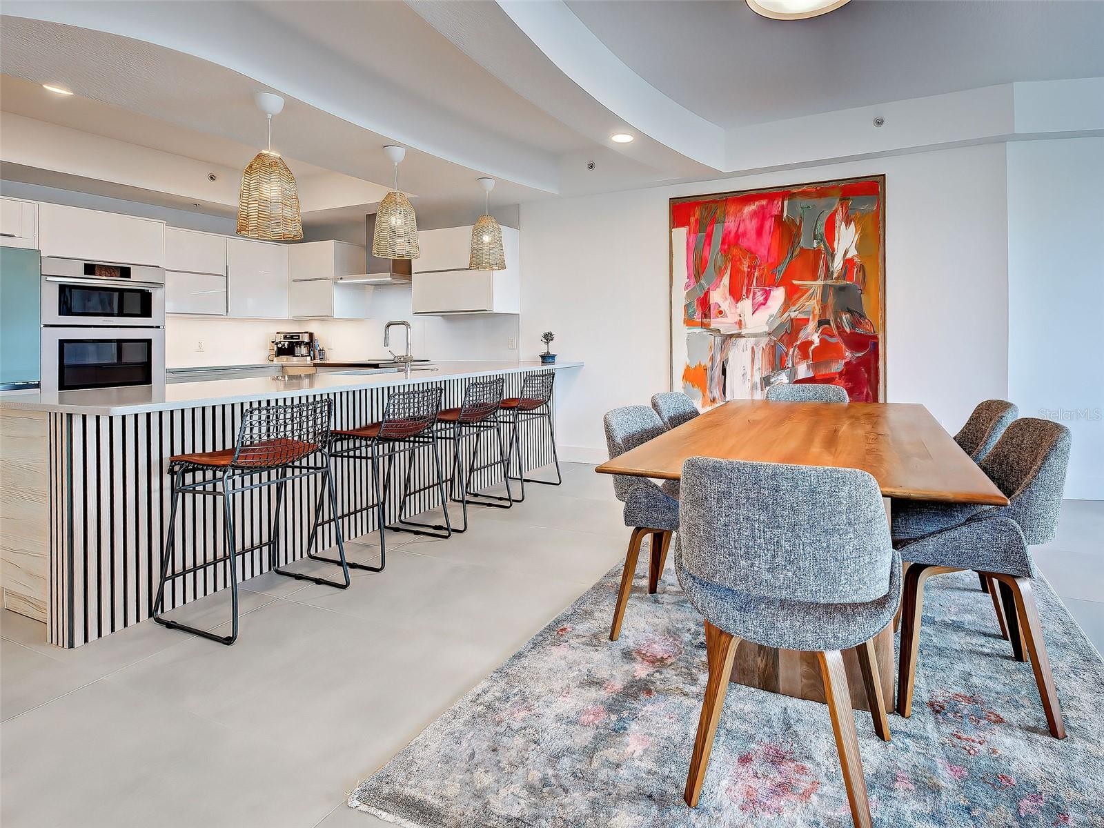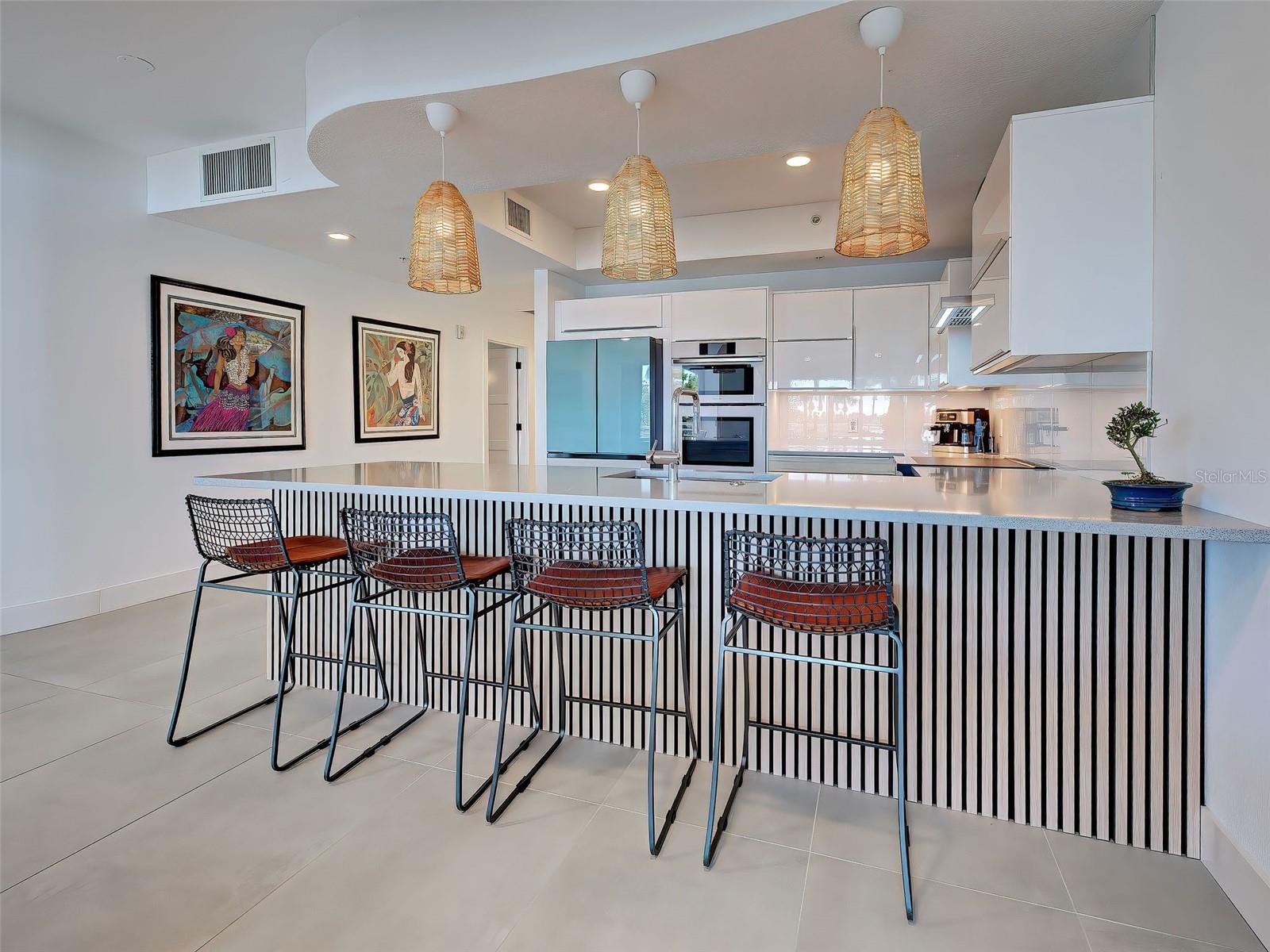 LUXURY WATERFRONT LIVING | COMPLETELY REMODELED CONDO WITH PRIVATE BOAT SLIP Discover refined waterfront living in this completely remodeled luxury condo offering over 1,800 square feet with 2 bedrooms and 2½ bathrooms. From the moment you enter, you are welcomed by abundant natural light, a striking wall of windows and sliding glass doors, and soaring ceilings that create a bright, open atmosphere. This residence has been thoughtfully upgraded throughout, featuring new large-format concrete-look tile flooring, new interior paint, designer lighting fixtures, and new ceiling fans. The stunning new kitchen is complemented by all-new appliances, while additional updates include new interior doors, upgraded baseboards, and trim. Impact windows and doors provide peace of mind while enhancing energy efficiency and quiet comfort. The spacious primary suite offers sliding glass doors with breathtaking water views and a spa-inspired en-suite bathroom featuring a luxurious wet area with soaking tub, new vanity, toilet, and mirror. The second bedroom includes its own beautifully remodeled en-suite bath, ideal for guests, while the elegant half bath is highlighted by a dramatic full wall of tile. Step outside to the large covered balcony and enjoy spectacular sunset views over the water. Boating enthusiasts will appreciate no fixed bridges and the convenience of a private boat slip. Ideally located just minutes from Nokomis Beach and Historic Venice Island, this exceptional residence delivers upscale, maintenance-free living in a premier coastal location.