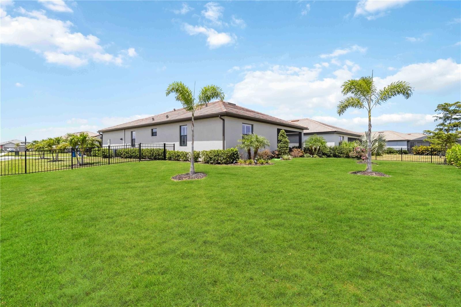 Nestled in the prestigious community of Lorraine Lakes in Lakewood Ranch, this stunning 4-bedroom, 3-bath home, built in 2023, offers over 2,000 square feet of luxurious living space. Recognized as one of the top master-planned communities in the nation, Lakewood Ranch boasts an amazing school district and a vibrant, welcoming environment. The home features dual en-suites, perfect for multigenerational living, and a primary suite with an extra-large shower and dual vanities. Natural gas is a luxurious addition in Florida, and the cabinetry in all three bathrooms is topped with beautiful granite countertops. Additionally, unlike many new construction homes in the area, this home already has gutters conveniently installed. The home's interior is freshly painted in bright, inviting colors and custom light fixtures and plantation shutters add a personal touch throughout. The widened driveway and spacious fenced backyard on an oversized corner lot offer plenty of outdoor space, with serene views of the lake. There has been an abundance of landscaping added to the backyard as well as to meticulously plan for future privacy. The kitchen is a chef's dream, featuring modern appliances, a large island, and abundant storage. The living area flows seamlessly into the outdoor living space, perfect for entertaining or simply enjoying the peaceful lake views. Lorraine Lakes offers a lifestyle unmatched in the area with amenities such as a massive clubhouse, fitness center, resort-style pool, splash pad, lap pool, indoor basketball court, arcade, tennis and pickleball courts, bocce, volleyball, a well-maintained restaurant, and more. Whether you're looking for a peaceful place to call home or a vibrant neighborhood with activities at every turn, this home truly offers it all in one of the nation’s top master-planned communities.