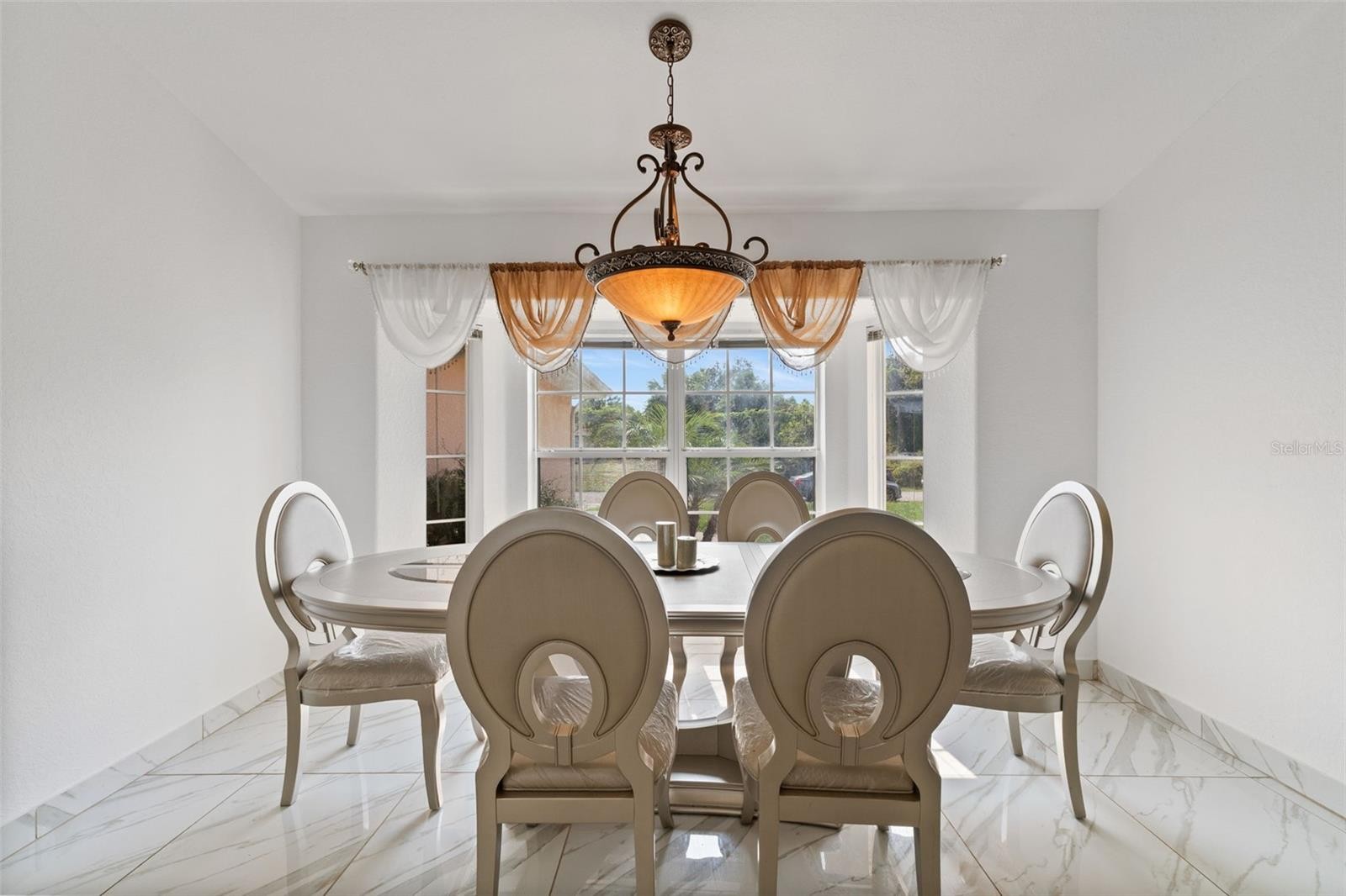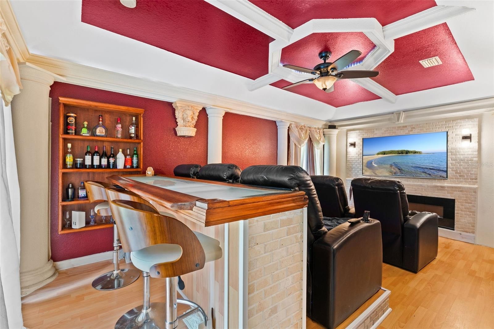 Beautifully 3 bedroom and 2 bathroom home featuring over 2,200 sq. ft. of living space with an open floor plan and high ceilings. The interior includes 24x24 marble-like tile flooring throughout main living areas, luxury vinyl flooring in all bedrooms, and spacious walk-in closets. The master suite features a large walk-in shower with floor-to-ceiling tile and a spa-like en-suite bathroom. The kitchen offers ample cabinet and counter space, breakfast nook, breakfast bar, and recessed lighting. Enjoy movie nights at home in your private theater room—complete with an LED fireplace, pro video/sound system, and cozy movie furniture included. Additional highlights include hurricane shutters, a whole-home water system, a security system, a new roof (2024), a complete HVAC system (2020), a water heater (2023), and the peace of mind of being in a no flood zone. Call today to schedule your private showing!