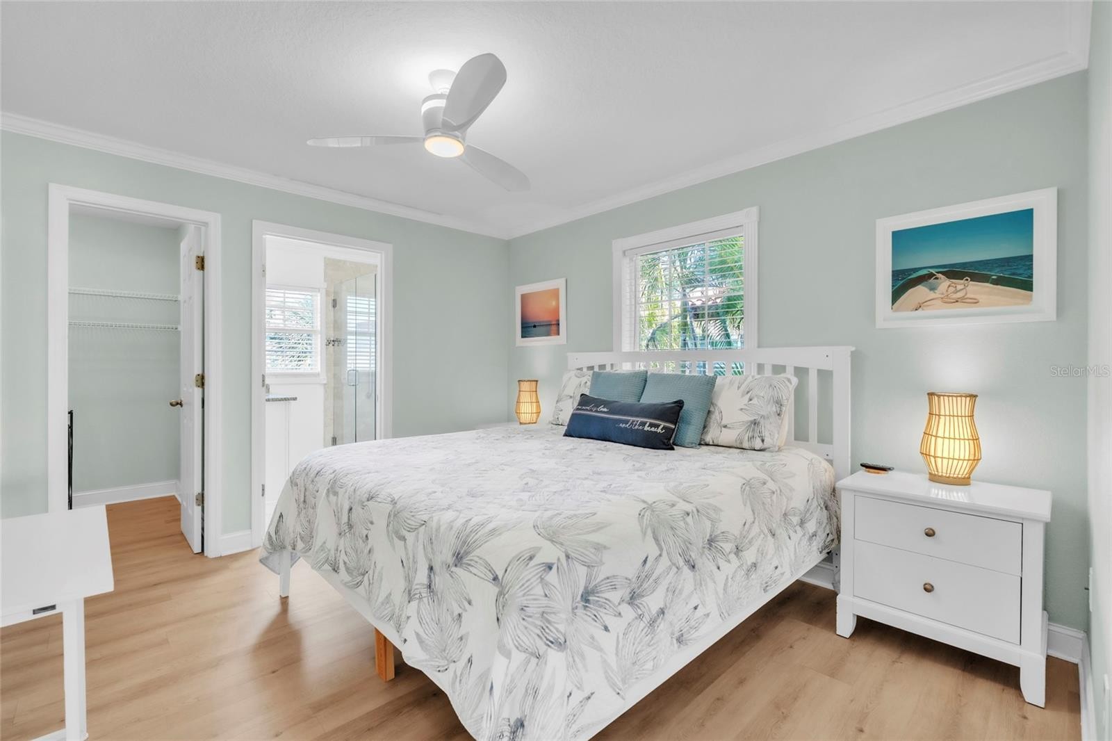 Discover Sunday Funday, an inviting coastal escape set in the desirable Holmes Beach area of Anna Maria Island. This three-bedroom, three-bath residence blends relaxed island living with refined Mediterranean influences, offering privacy, comfort, and thoughtful design throughout. The outdoor living space is a true highlight. Lush tropical landscaping surrounds the backyard, creating a private oasis ideal for entertaining or unwinding. The heated pool features a cascading stone waterfall and a built-in swim-up table, while the expansive covered lanai invites year-round enjoyment. Accented by a pergola, the space includes a refrigerator, granite serving counter, and dining area—perfect for embracing the island’s indoor-outdoor lifestyle. On the ground level, you’ll find two single-car garages, generous parking, and a covered poolside lounge area. A welcoming foyer leads upstairs to the main living level, where an open, airy layout connects the living, dining, and kitchen spaces. Coastal-inspired finishes include new flooring, crown molding, raised-panel doors, crisp white trim, and a soothing neutral palette. The kitchen has been tastefully updated with white cabinetry, granite countertops, stainless steel appliances, and ample workspace for hosting and everyday living. Two generously sized primary suites each feature walk-in closets and renovated en-suite bathrooms, providing flexibility for guests or extended stays. An additional bedroom, full bathroom, laundry area, and walk-in pantry complete the level. Offered fully furnished, Sunday Funday is a successful vacation rental and truly move-in ready. Located just a short walk from Anna Maria Island’s renowned beaches—complete with public amenities, concessions, and live music—as well as nearby dining and shopping, this property offers convenient access on and off the island. Whether you’re seeking a full-time residence, a second home, or a proven income-producing investment, Sunday Funday is ready to deliver the best of island living.