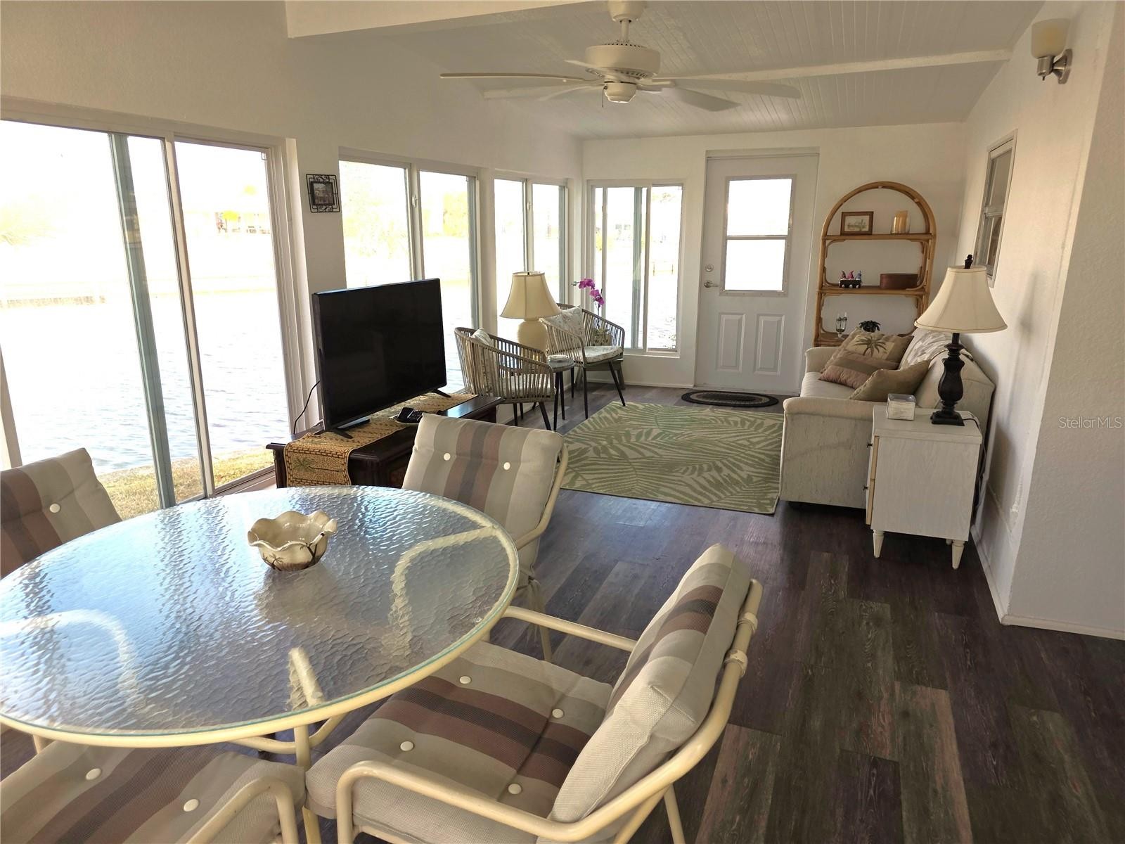 Just look at these waterfront views from your spacious turn-key furnished 2 bedroom home in Harbor Cove. Laminate wood flooring throughout, 2022 AC, 2023 Roof, glass windows in the large rear waterfront lanai adds to the under air square footage from 1080 to 1310. Living room has plenty of space for an office and desk, breakfast bar in the kitchen, plenty of countertops, white cabinetry, above the stove microwave, smooth top stove, dual sinks, spacious dining room fits large table for plenty of guests. Harbor Cove - Voted BEST Manufactured Home Community by North Port Sun Reader's Choice. Offering a private community boat ramp, 90 slip marina, two story clubhouse, two heated pools, hot tub, bocce, tennis, pickle ball, fitness, storage grounds, wood working shop, crafts dinners, dances, entertainment and more. Easy commutes to Sarasota and Fort Myers. Minutes from the gulf beaches, Myakka River, Peace River, Charlotte Harbor, restaurants, shopping, Tampa Bay Rays summer training stadium, Warm Mineral Springs Health Spa, Cool Today stadium for the Atlanta Braves, and the Sun Seeker Resort located in Charlotte Harbor. EVERYTHING you need for your waterfront lifestyle is here in Southwest Florida.