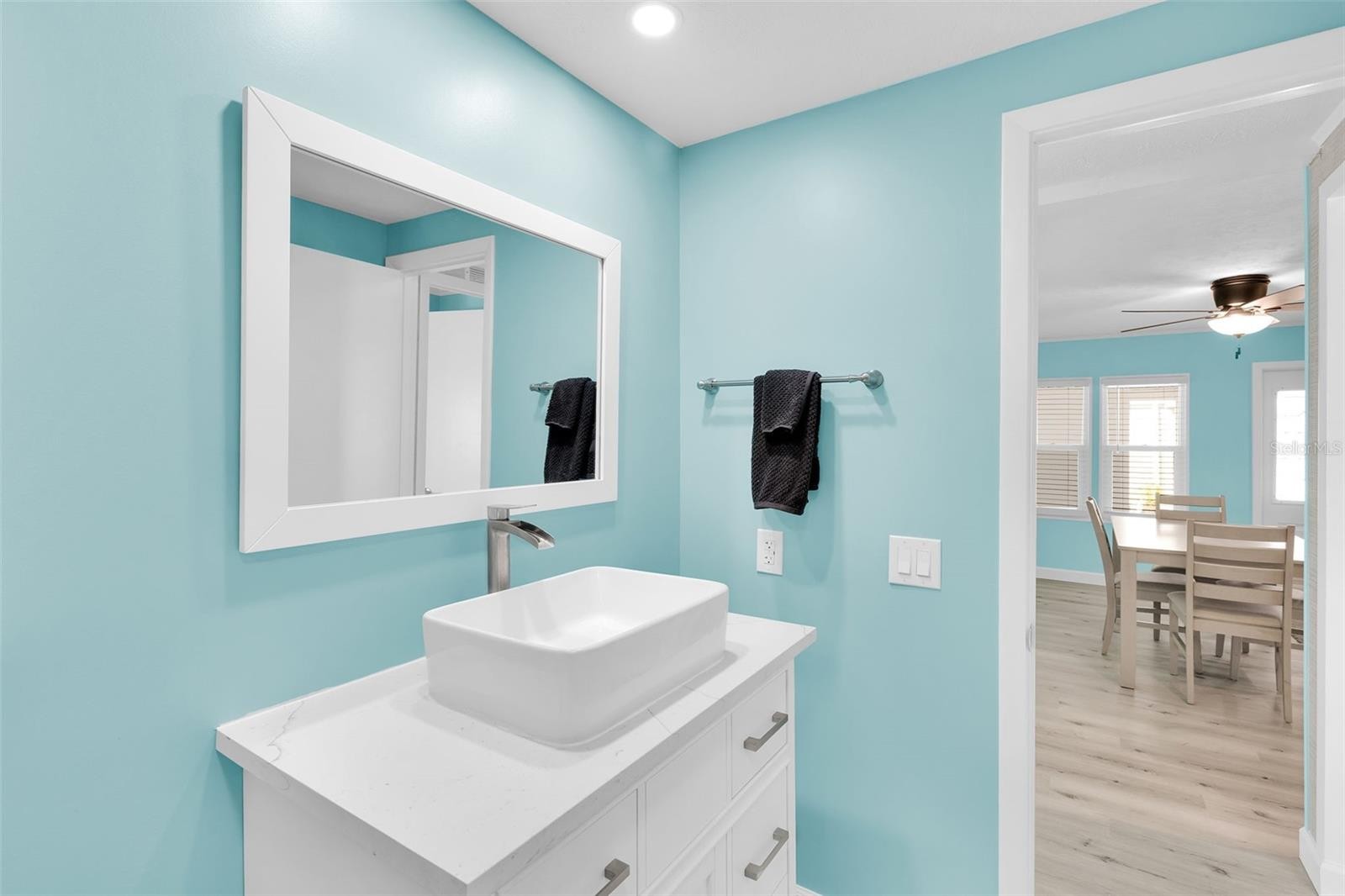 Welcome to this beautifully remodeled two-bedroom, two-bath home located across from our Rec Hall and its amenities. Enter a dining area that can easily convert into a den. Adjacent is a remodeled kitchen with newer cabinets, two pantries, granite countertops, and stainless steel appliances. Entertain guests in the dining room featuring a wall-to-wall server with a granite countertop and ample storage. The open floor plan flows into the living room, which has a sliding door to a screened lanai overlooking the Rec Hall grounds and amenities. The comfortable guest bedroom has a built-in double closet and direct access to the remodeled tiled guest bathroom with a newer vanity, vessel sink, commode, and tub/shower. The primary bedroom boasts a huge walk-through closet and an additional double closet. It also features barn doors to a dressing area, tiled floors, and a washer/dryer hookup. The tiled primary bath includes a new walk-in shower, a newer commode, and corner linen shelves. The home has many upgrades, including a new carport, new vinyl siding over 1/2” plywood and house wrap, luxury vinyl flooring over new plywood subfloors, new light fixtures and ceiling fans throughout, A/C, and a humidistat. Come and enjoy the Florida lifestyle in this lovely remodeled La Casa home. La Casa provides our residents and guests the ultimate lifestyle on Florida's Gulf Coast, and is located between Sarasota and Fort Myers with boat access to the Myakka River. La Casa is a quiet 55+ community of 974 home sites nestled among a variety of native trees. Spacious common grounds surround our eight lakes. Welcome To the Good Life! RECREATION, 2 Clubhouses, 2 Heated Pools and so much more!