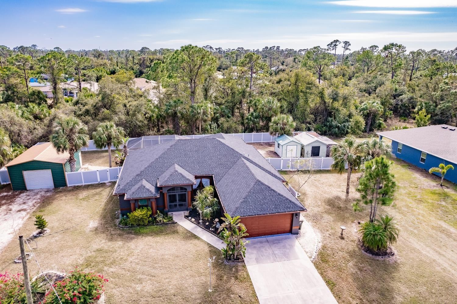 Amazing home with NO HOA’s, NO flood insurance; this property is high and out of flood zone. Let’s make this house your new home today. Seller says to bring your number for seller to review. Sun and fun in this amazing large pool home with lots of storage, 2 car attached garages, and detached RV garage. Come check it out today. This exceptional property offers a rare opportunity to own a versatile home with plenty of space, privacy, and a prime location—all with no HOA fees. Whether you're searching for a peaceful retirement retreat or a spacious family home, this property has it all. Key Features: Location: Prime North Port, FL—close to beaches, boating, golf courses, and more. Lot Size: Two expansive lots providing ample parking, room for hobbies, and additional privacy. Home Size: 2,203/2,887 sq. ft. of living space—ideal for families, guests, and a variety of activities. Home Highlights: Bedrooms: 3 bedrooms + den/office—perfect for remote work or accommodating guests. Bathrooms: 2 updated bathrooms for modern comfort. Garages: Attached two-car garage + detached medium-sized RV or tandem 1-car garage—large enough for a large pickup truck. Pool & Spa: Enjoy a refreshing pool with a spa, accessible through sliding glass doors. Outdoor Living: Fully fenced backyard—ideal for entertaining, relaxing, or enjoying the Florida sunshine. Interior: Vaulted ceilings, stylish flooring, and separate living, dining, and family rooms. Storage: Generous storage options throughout, including garages, sheds, and a laundry room. Additional Features: RV/Boat Parking: Plenty of room to park your RV, boat, or golf cart. Workshop Potential: Detached garage offers conversion potential for a workshop or DIY projects. Sheds: Four large sheds provide additional storage or workspace. No Flood Zone: Located in a high and dry area—peace of mind for homeowners. Location Perks: Attractions Nearby: Close to the Myakka River, Peace River, Charlotte Harbor, and the Gulf of Mexico. Enjoy easy access to boat ramps, parks, and scenic views. Convenience: Minutes from shopping, dining, medical services, golf, and fishing. Retirement Destination: Charlotte Harbor is a top-rated location for anyone looking for a peaceful and sunny lifestyle. This is an incredible opportunity to own a spacious, updated home in one of Southwest Florida’s most desirable areas. With room for outdoor activities and hobbies, plus easy access to everything Florida has. This home is perfect for embracing the relaxed Florida lifestyle. Call today to schedule a showing and make this dream home yours!