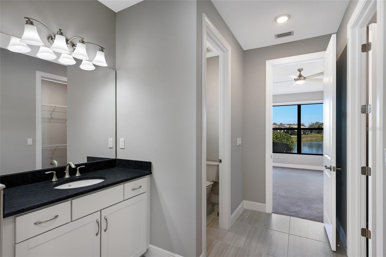 Cresswind a 55+ Gated Community in Lakewood Ranch! This gently lived-in 2 bedroom, 2-bath plus a spacious den with double doors that can function as a third bedroom, and a 2- car garage offers 1,671 square feet of bright, open living space and a stunning water view. Featuring elegant tile flooring, granite countertops throughout and well-appointed finishes. The primary suite offers, dual sinks with granite a tiled shower, 2 walk in closets, and plantations shutters. Garage has a 220 volt for electric car charging. This home blends modern and comfort with timeless style. Enjoy exceptional resort-style pool, resistance pool, spa/hot tub/whirlpool spa, walking trails, and landscaped walkways for strolls. Pet-friendly dog park, social opportunities, between scheduled events, clubs, group activities, and informal gatherings. Other amenities include tennis, pickleball, a vibrant clubhouse, fitness center. Easy access to shopping, dining, Sarasota and Tampa airports, Bradenton and Sarasota beaches. Move-in ready and beautifully maintained, this is the perfect retreat for those seeking an active and refined Gulf Coast lifestyle.