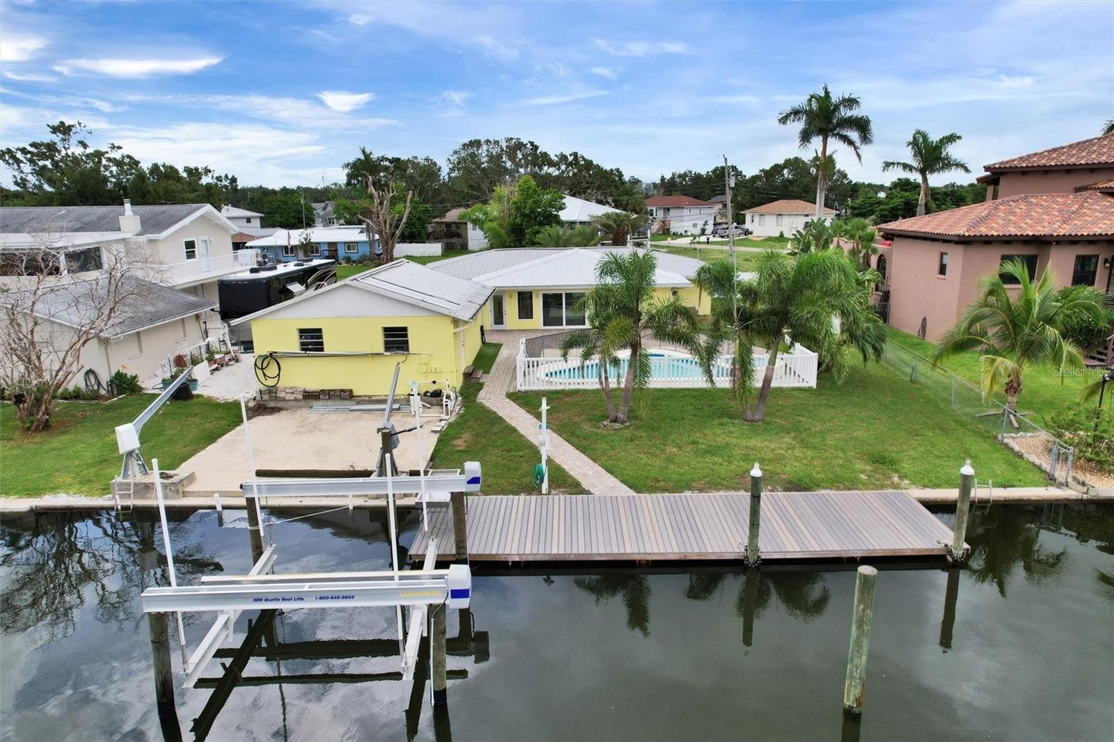 One or more photo(s) has been virtually staged. Discover the lifestyle you've been dreaming of with this fully remodeled 3-bedroom, 2-bath waterfront oasis. Located on a wide, sailboat-worthy canal with unrestricted deep-water access to Tampa Bay and the Gulf, this 1,954 sq. ft. home is built for both comfort and adventure. From the moment you walk in, you’ll be captivated by the open layout, a wall of windows flooding the great room and kitchen with natural light, and panoramic views of your private slice of paradise. The kitchen, fully updated in 2024, boasts brand-new appliances, a large cooking island with seating, ample cabinet space, and a walk-in pantry so big (6’x5’) it deserves its own zip code. But this home isn't just beautiful, it's incredibly functional. Storage enthusiasts will appreciate the oversized owner’s suite closet (6’x13’), inside laundry room, utility room, and a separate office space. Outdoor lovers will find everything they need in the backyard: a resurfaced in-ground pool and spa (2024), a 90’ seawall, a 10’x40’ composite dock with electric and water, and a 16,000XL boat lift for extra-long vessels. Jet ski fan? There are two davits and a concrete pad to keep your toys ready to launch. Need space for an RV or boat trailer? You’ve got that, too. Located in an unincorporated area with no CDD fees, no HOA, and minimal county rules, you’ll enjoy the freedom to live as you please. Optional community membership offers access to a private boat ramp and clubhouse. Commuters and beachgoers alike will love the quick access to I-75, I-275, US-19, and US-41, making travel to St. Pete, Tampa, Bradenton, Sarasota, or Anna Maria Island a breeze. Whether you’re chasing sunsets or setting sail for open waters, this exceptional waterfront paradise has it all!