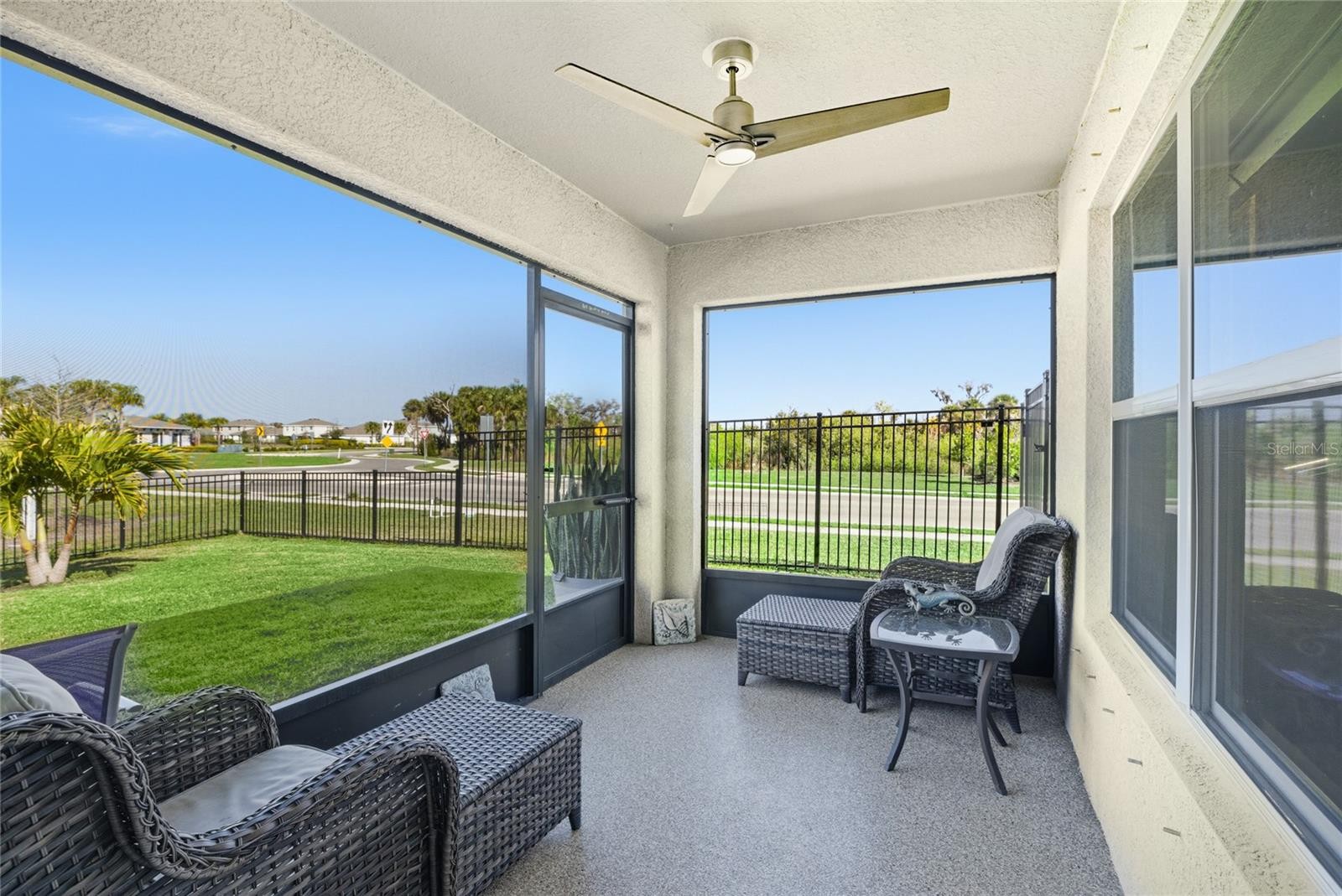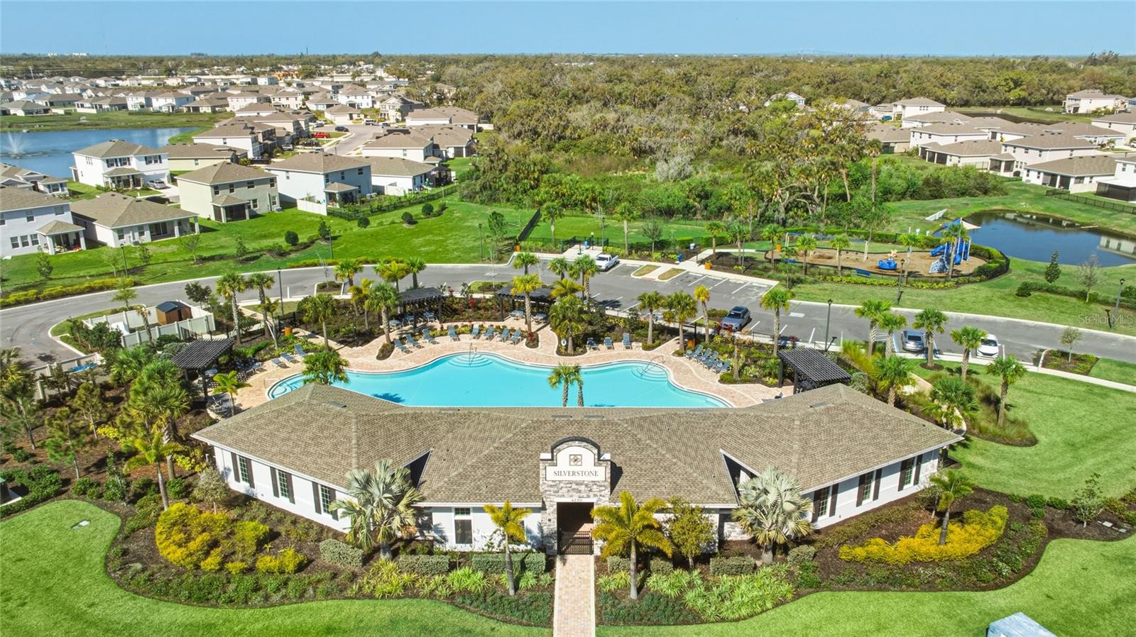 Positioned on a spacious corner lot in the desirable Silverstone community, this DR Horton Aria model offers comfortable open-concept living paired with peaceful pond views and a thoughtfully designed layout. With a fully fenced backyard and scenic water views just beyond, the home provides a relaxing outdoor setting while still being conveniently located near everything you need. Inside, a welcoming entry foyer leads into the heart of the home where the open kitchen, dining, and living areas flow seamlessly together. The kitchen features granite countertops, stainless steel appliances, abundant cabinetry, and a large center island with seating, creating the perfect space for everyday living and entertaining. Large windows and sliding glass doors fill the home with natural light while highlighting the backyard and pond views. The popular split-bedroom floor plan provides added privacy, with the primary suite tucked toward the rear of the home overlooking the water. The spacious primary bedroom connects to an ensuite bath with dual vanities and a glass-enclosed walk-in shower. Additional bedrooms are located toward the front of the home and offer flexible space for guests, family, or a home office. Step outside to the screened lanai where you can relax and enjoy the peaceful pond view and fully fenced backyard. The corner lot adds extra outdoor space and enhances the sense of openness. Recent improvements include fresh interior paint, LVP flooring in the bedrooms, a UV whole-home water filtration system with sediment filter, and a Vivint security system. The home also includes hurricane shutters, an epoxy-finished garage floor, and irrigation using reclaimed water which is included in the HOA. Silverstone residents enjoy access to community amenities including a resort-style pool, cabana, park, and dog park. The location offers convenient access to shopping, dining, medical facilities, I-75, and the Gulf Coast’s beautiful beaches, making this home both comfortable and centrally located. **THIS PROPERTY QUALIFIES FOR A 1% LENDER INCENTIVE IF USING PREFERRED LENDER. INQUIRE FOR MORE DETAILS.**