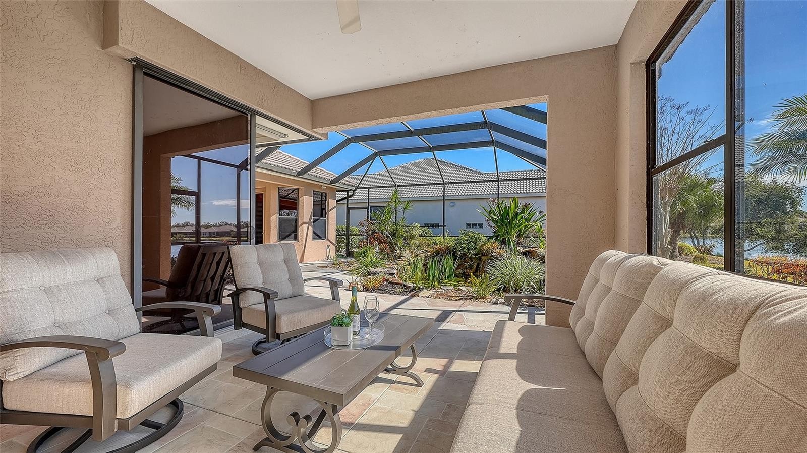 This exquisite three-bedroom, three-bath + den, Lee Wetherington built home exemplifies intelligent design and beauty in the community of Willowbend. This Ashley floor plan is thoughtfully oriented to the south, allowing for abundant natural light and stunning lakefront views. The residence features inviting curb appeal with a paver-accented driveway and walkway, leading to an impressive custom double-door entry. Inside, high-end upgrades and recent enhancements contribute to the home's timeless character. The sophisticated interior showcases clean lines, intricate tray ceilings and tile flooring throughout the main living areas. Crown molding and impressive lighting fixtures add elegance to the space. The gourmet kitchen is a chef's dream, featuring solid wood cabinetry, Corian countertops, new stainless appliances in Jan. 2026 with gas cooking. Even the laundry room is aesthetically pleasing. The split floor plan affords two guest bedrooms conveniently behind a pocket door, sharing a bath, providing privacy to family and guests alike. The den/study includes a built-in office with a sizeable desk overlooking the lake. The family room boasts a wall of sliding glass doors with adjacent corner pocket slider that opens wide, seamlessly transitioning to the tranquil outdoor living space. The extended lanai features two covered areas, ideal for relaxation, while the custom pond with waterfall add to the ambience and enjoyment of the tropical surroundings. Water views from most rooms in the home! A well appointed, dinette, offers picturesque views of the waterfall and lake through a large aquarium window as well. The luxurious owner’s suite includes dual walk-in closets, dual sinks, a walk-in shower and a tub for ultimate comfort. The home is equipped with high-speed internet and streaming television, with yard maintenance and access to community amenities such as a pool, spa, fitness center, pickleball court and playground all included in the low HOA fees. Conveniently located to beautiful gulf beaches, Oscar Scherer State Park, Legacy Trail, Pine View School and waterfront dining, this residence offers an unparalleled lifestyle.