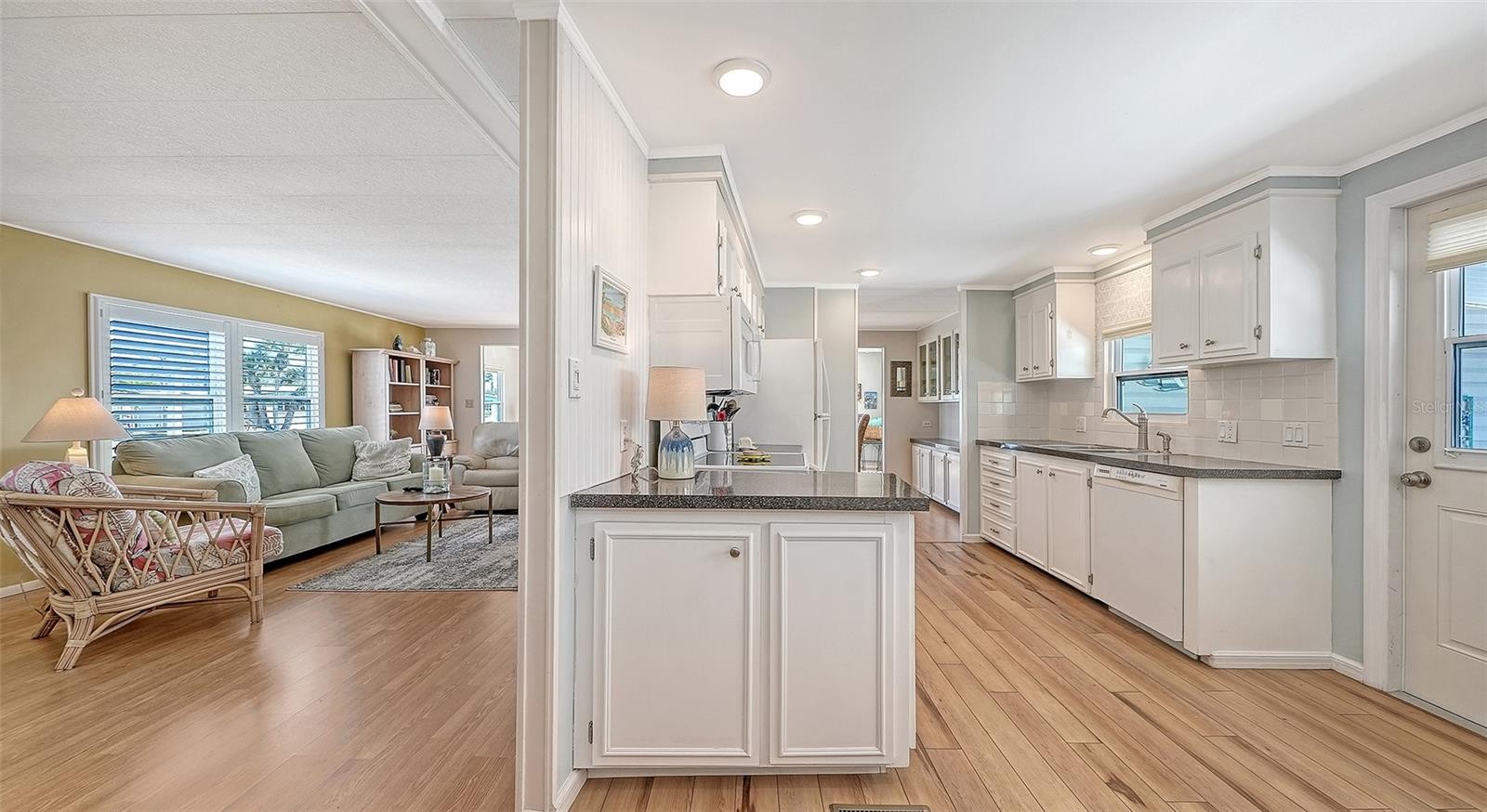 Welcome to Venice Isle, a highly sought-after 55+ mobile home community located in the heart of Venice. This waterfront double-wide home offers peaceful lake views and is just minutes from the area’s beautiful Gulf beaches as well as the shopping, dining, and entertainment of historic downtown Venice. Being sold turnkey furnished, this home is truly move-in ready and ideal for seasonal or full-time living — and best of all, you own the land. Inside, you’ll find two generously sized bedrooms and two full bathrooms, along with an abundance of closet space throughout the home. The large kitchen features ample cabinetry and plenty of workspace, making it both functional and inviting. One of the standout features is the HUGE second living room/Florida room under air, complete with a wall of windows overlooking the lake, creating the perfect space to relax, entertain, or simply enjoy the peaceful waterfront setting year-round. The oversized storage shed located in the carport houses the laundry area and provides excellent additional storage for tools, beach gear, and more. There is also room to park up to four cars, a rare and valuable feature within the community. The AC was replaced in 2021 and has just been serviced, and the roof over was completed in 2023, offering added peace of mind for the next owner. Venice Isle offers an active, resort-style lifestyle with two community pools, a clubhouse, fitness center, sauna, spa, tennis courts, a community shuttle for residents, and golf cart-friendly streets. The low HOA fee of just $229 per month includes basic cable, internet, lawn care, and access to all amenities mentioned above, making this an exceptional value in one of Venice’s most desirable 55+ communities.