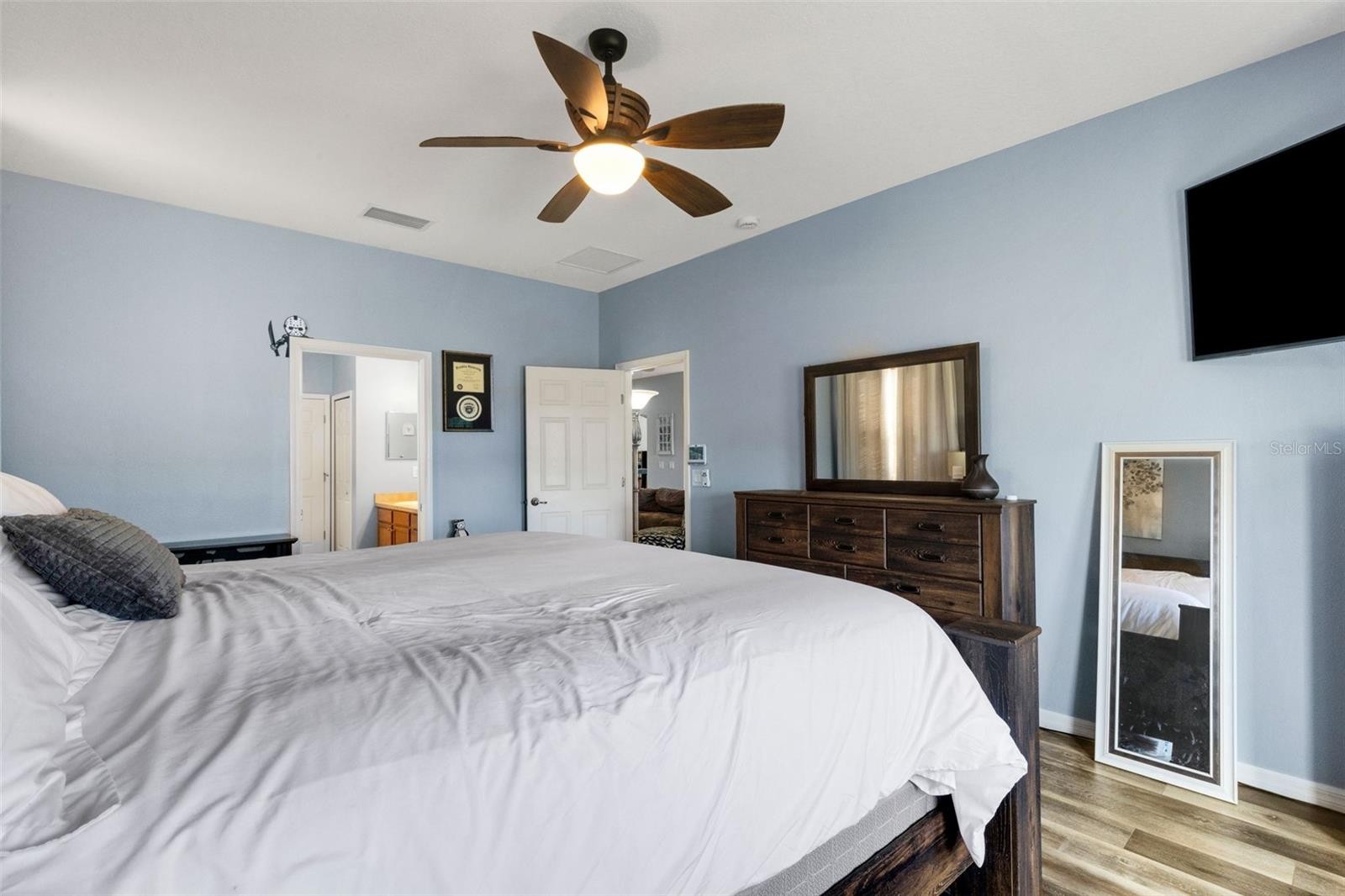 ** Lakeside Preserve - 2-Story Concrete Block - New Roof 2023 - No CDD Fees - Primary Suite on first floor - Expanded Screened lanai with heated hot tub spa - Pond and conservation views. Priced at less than $200/square foot! Outdoor living takes center stage at this well built Caladesi model - K. Hovnanian / Windward Homes in Lakeside Preserve, where a private backyard setting and thoughtfully designed interior come together. The expanded screened lanai features brick pavers and a 6-seat heated spa overlooking the pond and conservation area, creating a peaceful backrop for relaxing evenings or casual gatherings year-round. Fences are allowed, so if you have 4-legged family members, just apply with the ACC commitee once closed. Inside the open-concept main living area flows seamlessly to the lanai, making indoor and outdoor spaces feel connected. The kitchen anchors the home with 42 inch cabinetry, and Labradorite granite countertops, a breakfast bar island, eat-in breakfast nook, and generous workspace, all open to the living room for easy entertaining and conversations while preparing meals. The den and dining room have wood flooring, upgraded 18" diagonal tile run throughout the rest of the main living area. The first-floor primary suite offers privacy from the rest of the home, while three additional bedrooms and a large loft upstairs provide flexible spaces that adapt to changing needs. A first floor oversized laundry room with extra storage space and an oversized two-car garage add everyday convenience. Recent updates include a new roof in 2023, a UV light installed in the HVAC system to support indoor air quality and a water softener. Owners are also offering an American Home Shield warranty! With no CDD fees and low quarterly HOA fees, Lakeside Preserve offers community amenties of a playground, park, gazebo, and pickleball court. Convenient access to US 301 and I-75 places shopping, dining and recreatrion within easy reach and short commute. Schedule your private showing to experience the lifestyle that this home offers.