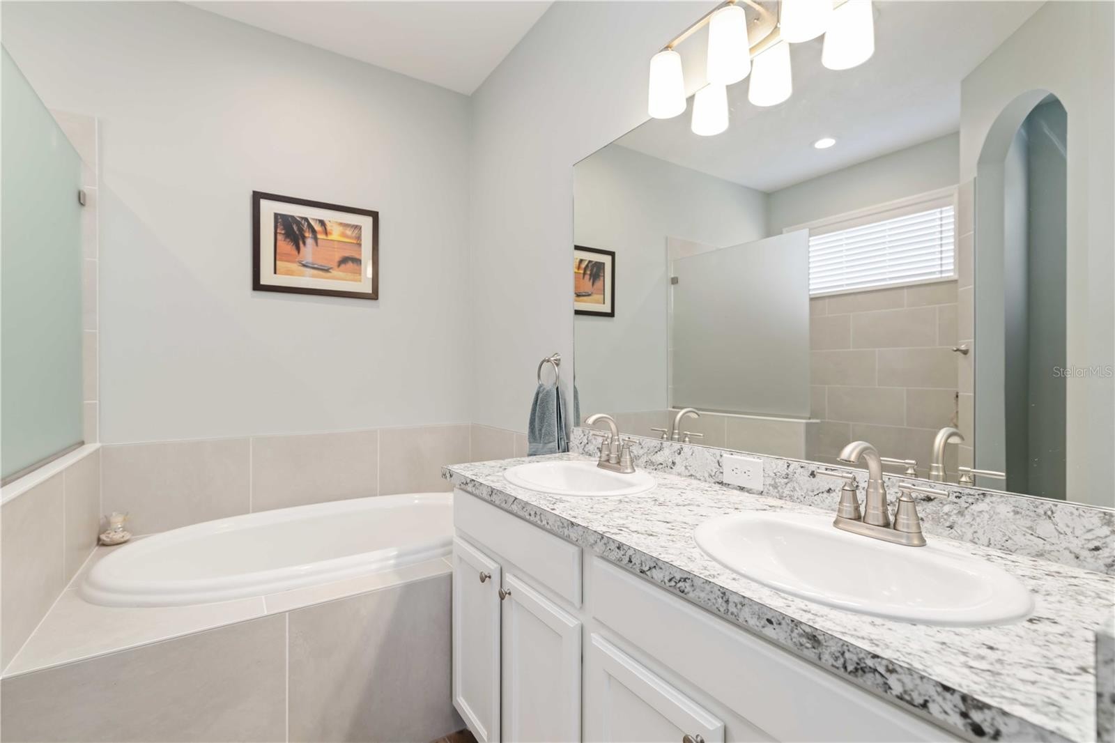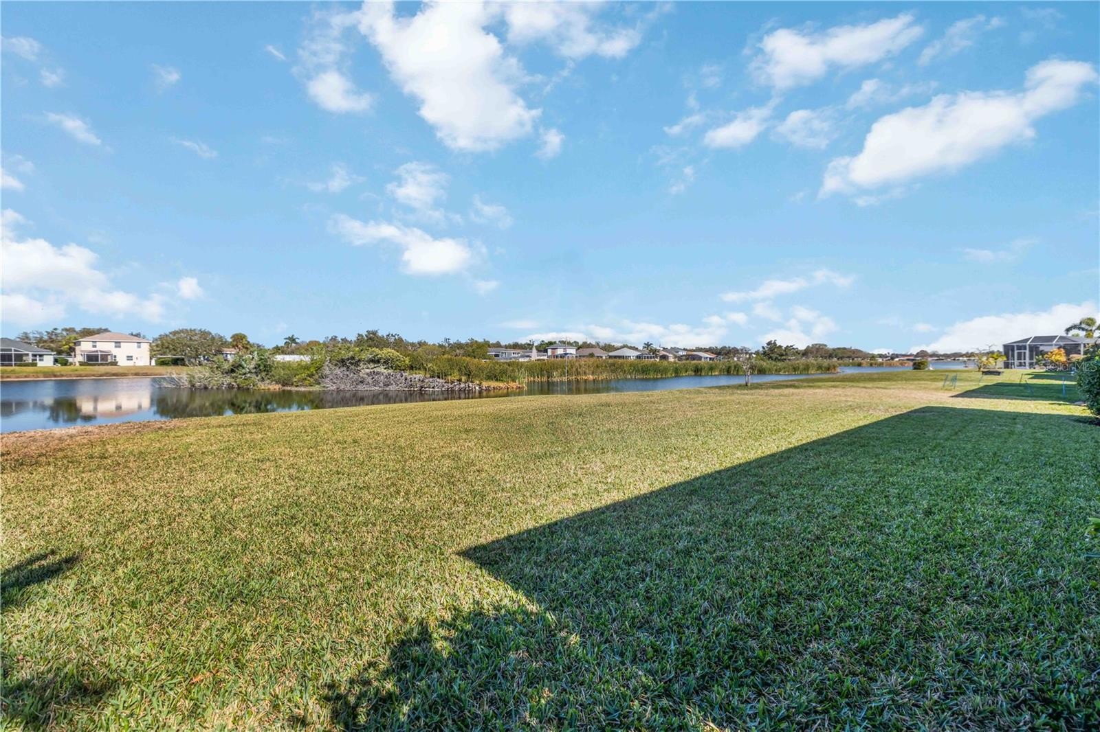 Welcome home to Waterford! This meticulously updated 3 bedroom, 2 bath home faces a wooded preserve and backs up to a lake in a quiet, established neighborhood with LOW HOA and NO CDD. As you enter the home you will notice the beautiful wood look porcelain tile floor that runs seamlessly throughout the open concept layout. A custom built drop zone can be personalized for your family and keep the front of the home looking tidy. The tray ceilings enhance the home's character and show off the natural light that illuminates the home. The kitchen has neutral granite countertops, white cabinets with drawer pullouts for organized storage and an island perfect for eating or entertaining. Step outside on to the screened in lanai and enjoy the peaceful lake views and dozens of bird species who nest on the island in the middle of the 66 acre lake. The spacious master suite also boasts the serene lake views and has two walk-in closets, a linen closet, and a newly renovated bathroom with a walk-in shower and garden tub. The two other bedrooms are carpeted and share another modern bathroom with the same stylish finishes. Installed security cameras will stay with the home as an added convenience. ROOF replaced in 2021, AC and Hot Water Heater replaced in 2018. Waterford offers a prime location close to I75, 275, and Moccasin Wallow which is an up and coming area with plenty of new shops, restaurants, and other conveniences. Just a short drive away are the Ellenton Prime Outlets with more shopping and restaurants, and a short drive down 41 takes you into Bradenton and the Anna Maria Island beaches. This home is priced at a remarkable value and is move in ready- all it needs is you!