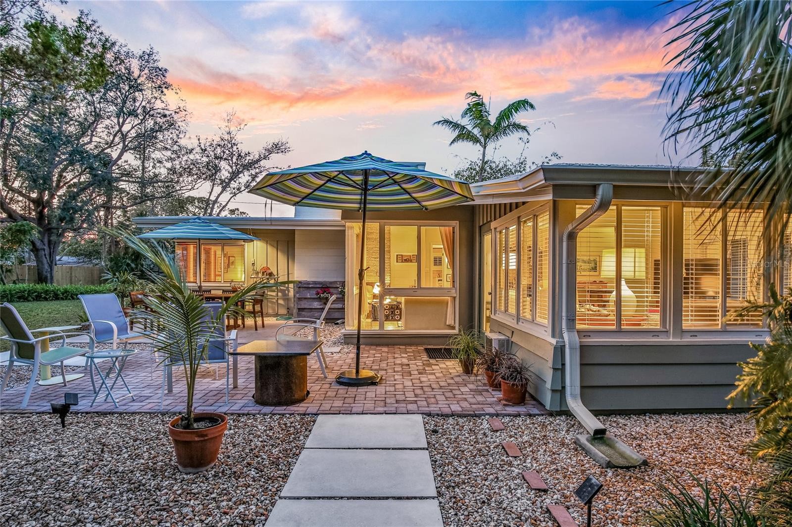 Unique, architect designed, Mid-Century gem in the Indian Beach-Sapphire Shores-Museum district. Distinctive features of this light filled home include clerestory and corner aquarium windows, floating fireplace and exquisite Terrazzo floors. Outdoor spaces encourage the enjoyment of natural surroundings. Large lot offers beautiful landscaping and incredible privacy plus zoning allows for an additional guest house or studio, and space for a pool as well. Property elevation keeps it outside of flood zone. Friendly, historic neighborhood is known for walking, biking, socializing, beautiful parks and access to Sarasota Bay waterfront - Ringling Museum, colleges, downtown Sarasota, with entertainment, arts, dining, and Gulf beaches all easily accessible and nearby. Come visit and experience this meticulously maintained property in person to fully appreciate all that it has to offer.