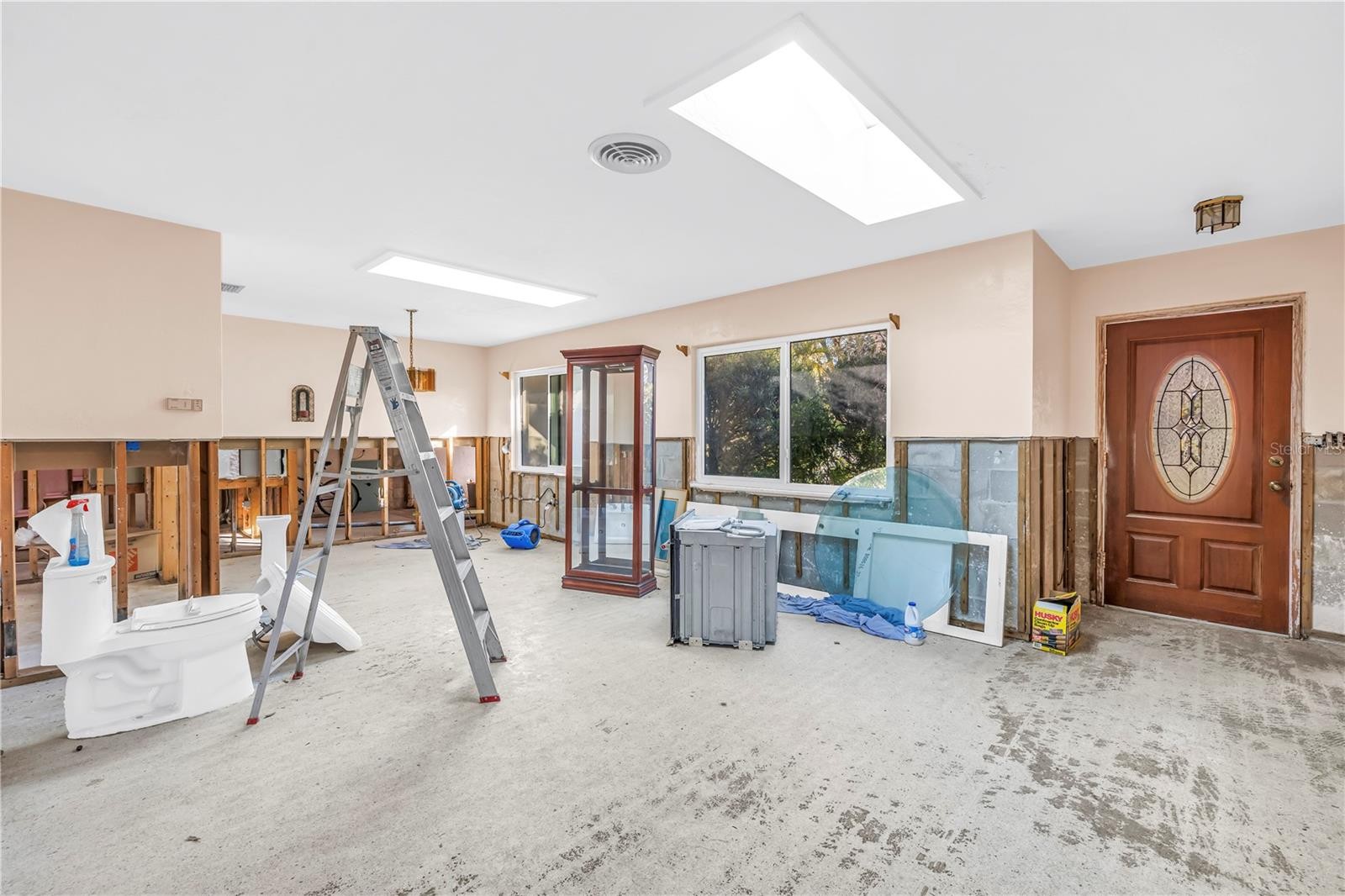 Bring your vision to this Siesta Key property located directly across from The Out-of-Door Academy! The home experienced hurricane flooding, with drywall removed approximately four feet up in much of the interior and flooring removed in several areas. Property is being sold as-is. With abundant natural light, vaulted ceilings, and an existing layout ready for redesign, this home offers a blank canvas for renovation. The private lot features mature trees, deck space, and a peaceful setting in a highly sought-after location close to Siesta Key beaches and everyday conveniences. An excellent opportunity for buyers seeking to renovate in a premier school district and established neighborhood.