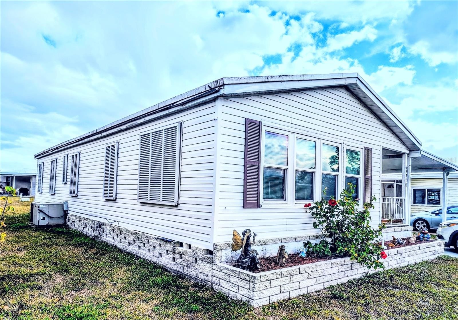 This turn-key, furnished coach is a gem!! Just bring your suitcase. Lots of upgrades and maintenance including impact windows, newer roof, plywood subfloors with new flooring, siding, Vapor barrier, termite treatment, electricity and plumbing. Recent sunroom addition and 10x16 storage shed. Survey available (see docs). Holiday Park is a premier land-owned, DEEDED community offering an exceptional lifestyle with a low monthly maintenance fee of $195 ($2,340.00/year), conveniently included in your tax bill. Residents enjoy access to two well-appointed clubhouses, two inviting swimming pools, and a comprehensive fitness center, ensuring ample opportunities for relaxation and recreation. The community is designed for active living, featuring tennis, pickleball, and bocce ball courts, along with a variety of indoor and outdoor games such as billiards, shuffleboard, and horseshoes. With ping pong tables, a card room, and dart boards, residents can engage in numerous social activities, all set within a beautifully landscaped park-like environment.