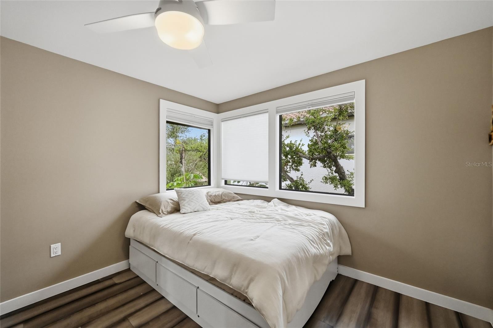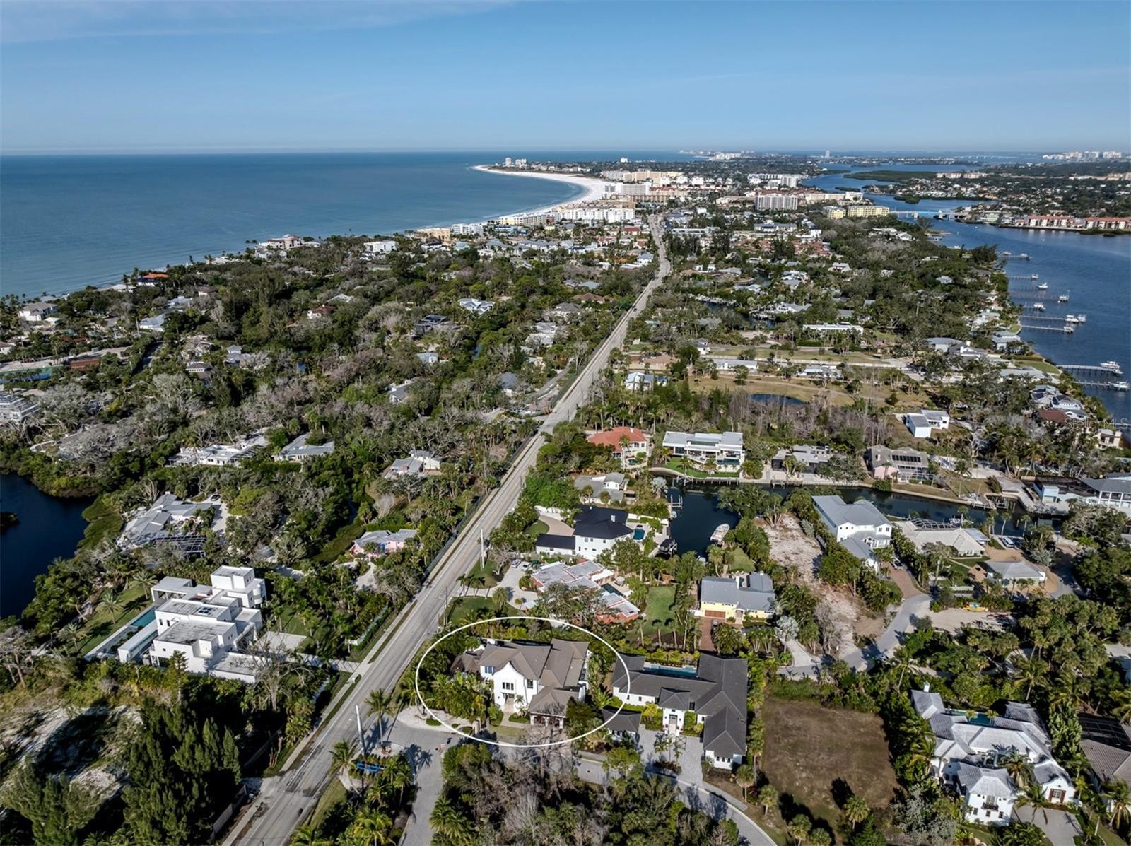 No Hurricane or Flood Damage. A coastal modern oasis in Siesta Cove, Siesta Key’s premier neighborhood, highlights 80 feet of waterfront with convenient boat access to Gulf and Bay, with newer seawall, boat dockage, and an extraordinary pool that invites you to enjoy Siesta Key’s relaxed lifestyle. Breathtaking Sarasota Bay vistas along the many peaceful panoramic patio terraces provide endless views of nature. On the main floor, a generous kitchen with gas cooktop island opens into the zen fireplace family room and spacious dining room with soaring ceilings and teeming with nature-filled impact windows. Quartz countertops, sleek wood cabinets, and stainless steel appliances for chefs join the jaw-dropping wall of extensive kitchen windows. Additionally, a powder room and spacious guest bedroom complete with en suite bathroom are located on the main level. Enjoy the top level primary suite, with loft office, secondary laundry room, third large bedroom and en suite bathroom. The lower level features a family room, fourth bedroom, additional laundry room, and a 2 car garage. This modern coastal retreat boasts energy efficient solar panels and is just a short bike ride away from world class Siesta Beach and the Village. Paradise awaits.