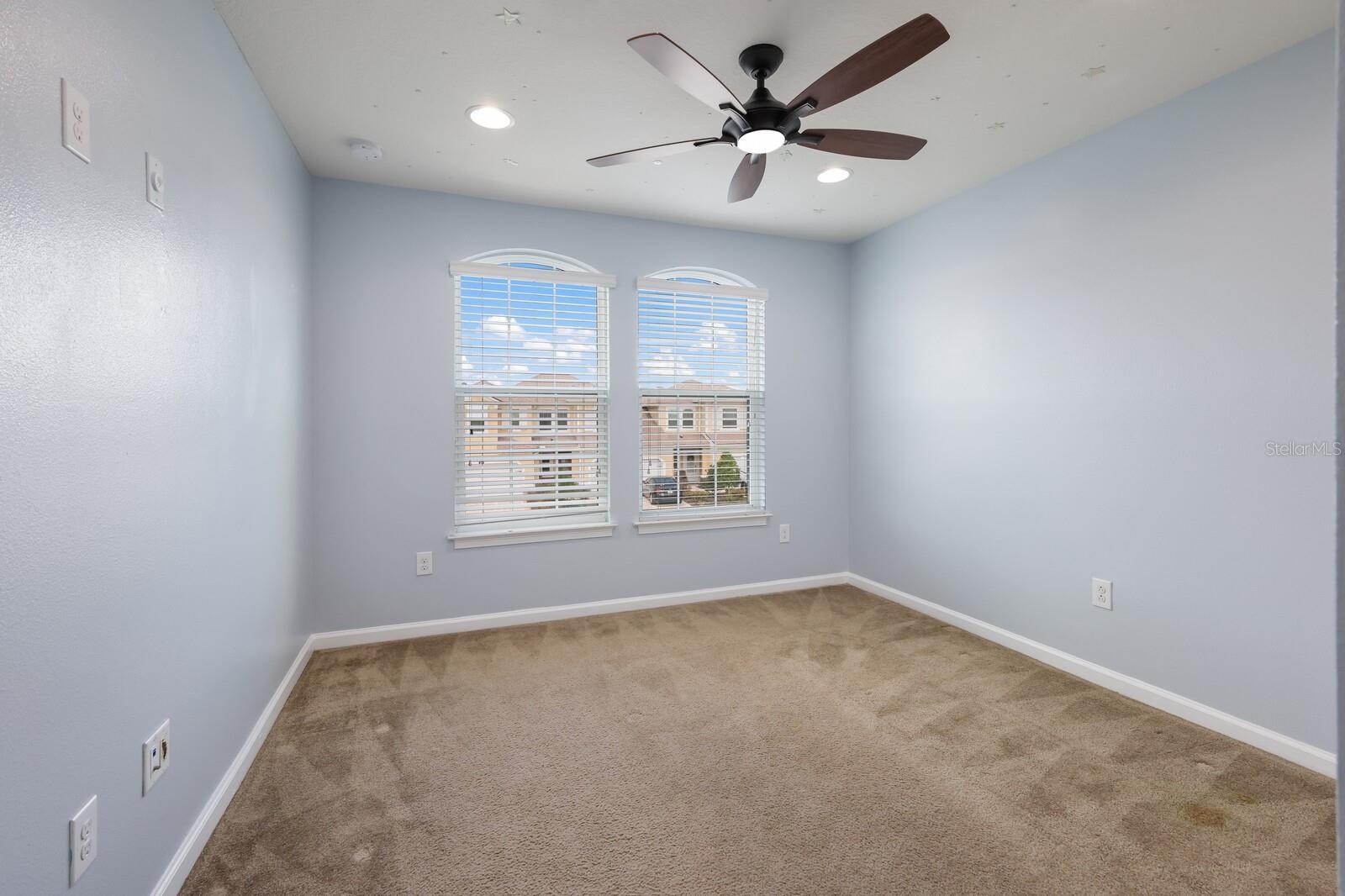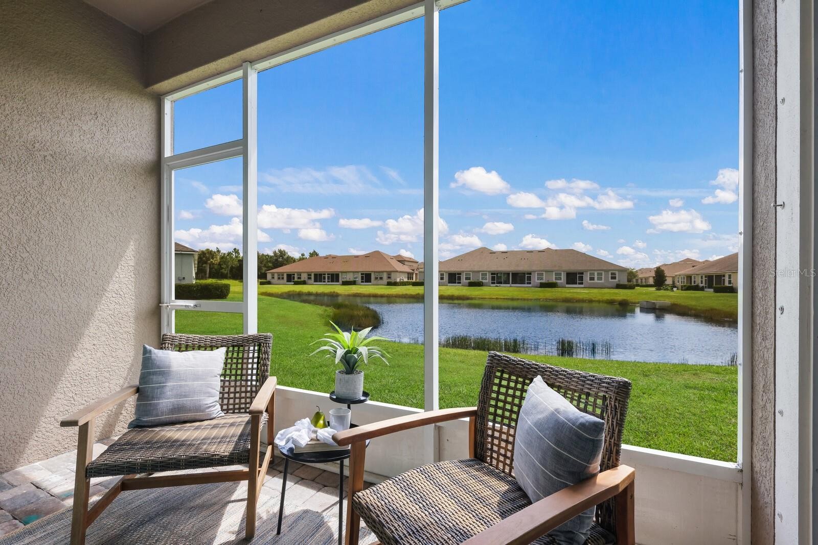Situated on an intimate street in Harmony at Lakewood Ranch, this stunning lakefront townhome has practically every upgrade available and then some. Built in 2018, the open 1,932 square foot plan features a light and bright great room plan adorned with wood floors & high ceilings plus an open loft area upstairs with unique extra bonus room area ideal for an office or just excess living space. The split 3-bedroom and 2.5 bath Sandbar model offers a main level owner's suite with wood floors, tray ceiling, extra recessed lighting, customized walk-in closet, and glass sliders to the screened lanai. The owner's bath features frameless glass shower enclosure, accent shower tile flooring, dual sink vanity, separate water closet and an oversized tub. Up the gorgeous wood stairway leads to the additional two guest bedrooms just off the second full bath, loft with speakers, and bonus room area. The gourmet kitchen below is open to the dining area and features a large island with quartz counters, white cabinetry, abundance of drawers, pull-out trash receptacle, walk-in pantry, built-in microwave and wall oven, separate cooktop and stainless steel appliances. A main level powder room, central vacuum, water filter system, a laundry room with storage cabinets, and a 2 car garage further sweeten this gem of a property. The community of Harmony at Lakewood Ranch has much to offer its residents with maintenance already included as part of the HOA fee, plus a resort-styled pool, fitness facility, clubhouse, playground, and access to the picturesque Lakewood Ranch trails.