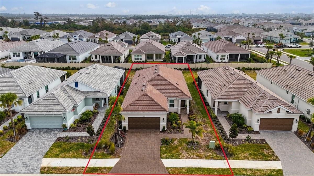 One or more photo(s) has been virtually staged. Welcome to this wonderful home located in the highly desirable community of the Esplanade at Artisan Lakes, in north Manatee County. Built in 2024, the Matera Model (3 bedrooms and 2.5 bathrooms) features a generous open floor plan in the living area. As you walk through the front door, you will see a beautifully designed kitchen at the heart of this home with quartz countertops, a gorgeous backsplash and a walk-in pantry. The floors are ceramic tile throughout the home giving it a modern clean design. There is a whole house water filtration system, a whole-house power generator and gutters around the home. The sliding glass doors open to the enlarged screened-in Lanai which is perfect for entertaining! The Owner's suite offers a unique feature: a convenient access to the laundry room through the walk-in closet. The en-suite bathroom has dual vanities and a spacious walk-in shower. The two additional bedrooms are in the front of the home adjacent to a full bath with a tub/shower. The guest bathroom is near the entryway, giving these two bedrooms their own bathroom. There are ceiling fans in each room, including the Lanai. The two car garage has an epoxy floor with room for storage. One of the nicest feature of this home is the location! There is a tree-lined green space across the street, making this home private, peaceful and pretty!