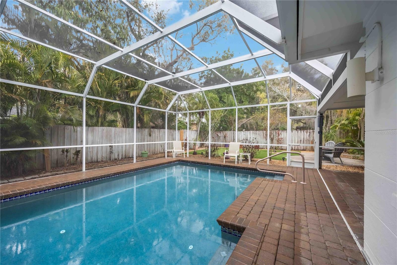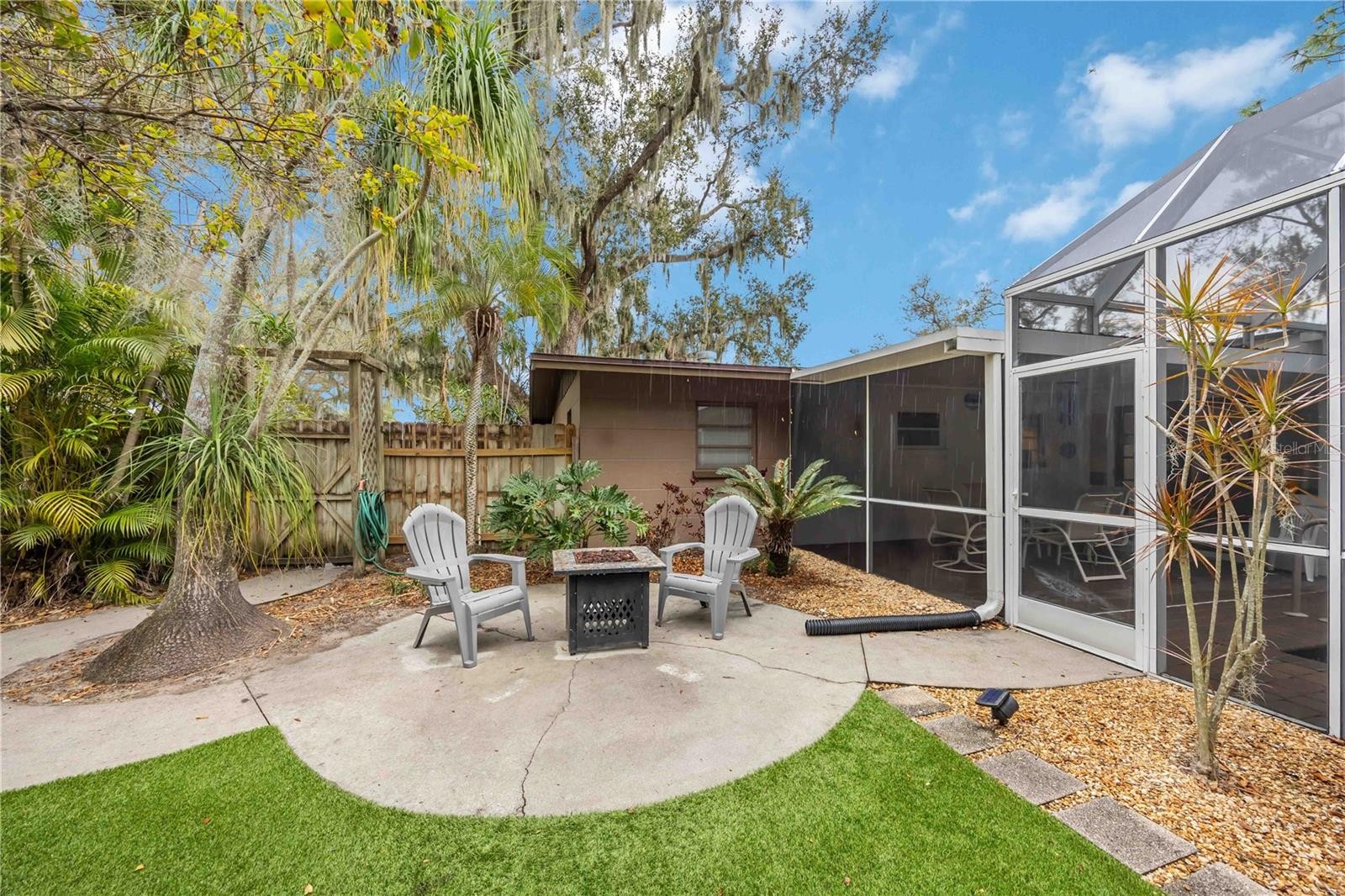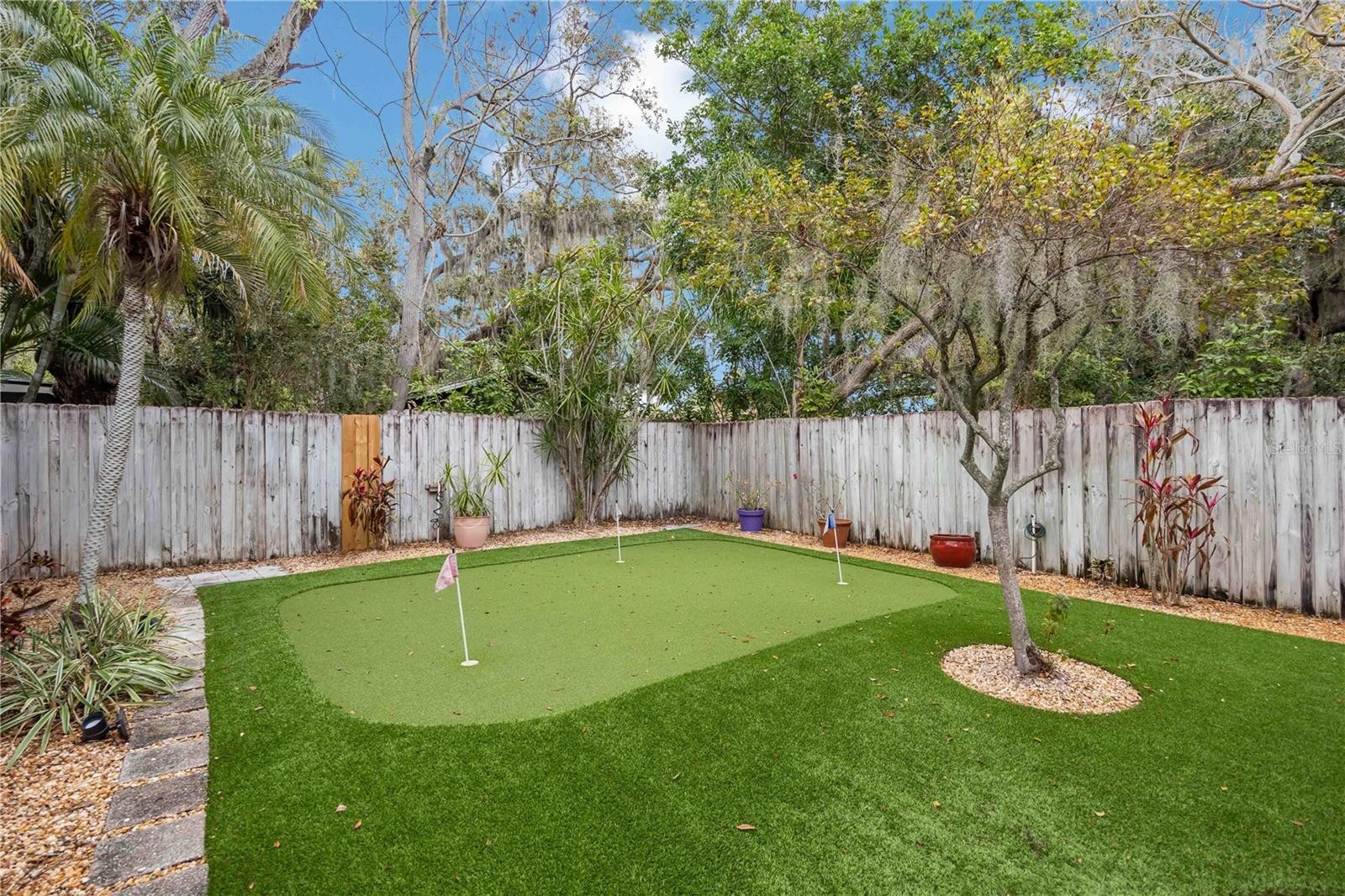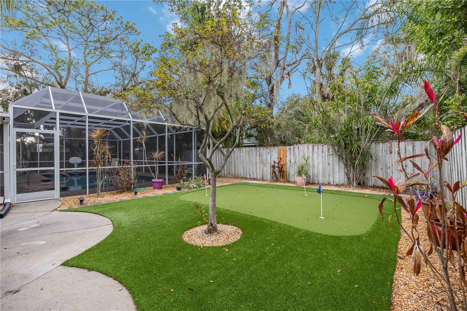 Under contract-accepting backup offers. The star of this property is undoubtedly the private backyard sanctuary. Imagine afternoons by the beautiful, oversized swimming pool, a focal point designed for relaxation and Florida sunshine. The poolside experience flows seamlessly into a custom putting green for golf enthusiasts and a cozy fire pit area, creating the perfect setting for evening gatherings under the stars. Inside, this beautifully reimagined 1961 residence offers 1,298 square feet of modern living with impeccable mid-century character. The home features elegant wood-look porcelain tile floors throughout and a flexible Florida Room that serves perfectly as a bright home office or sunlit lounge. The chef-inspired kitchen is fully updated with granite countertops, under-cabinet lighting, and premium Bosch appliances. Peace of mind is built-in with a new AC & a new heat pump, and hurricane-impact protection, including the living room window and the doors from the carport and utility room. Turned Key Furnished! Located in a prime location with no CDD fees, you are just minutes away from the premier shopping and dining at University UTC Mall and surrounding retail hubs. This is the rare opportunity to own a meticulously updated classic where the backyard is your own private resort.