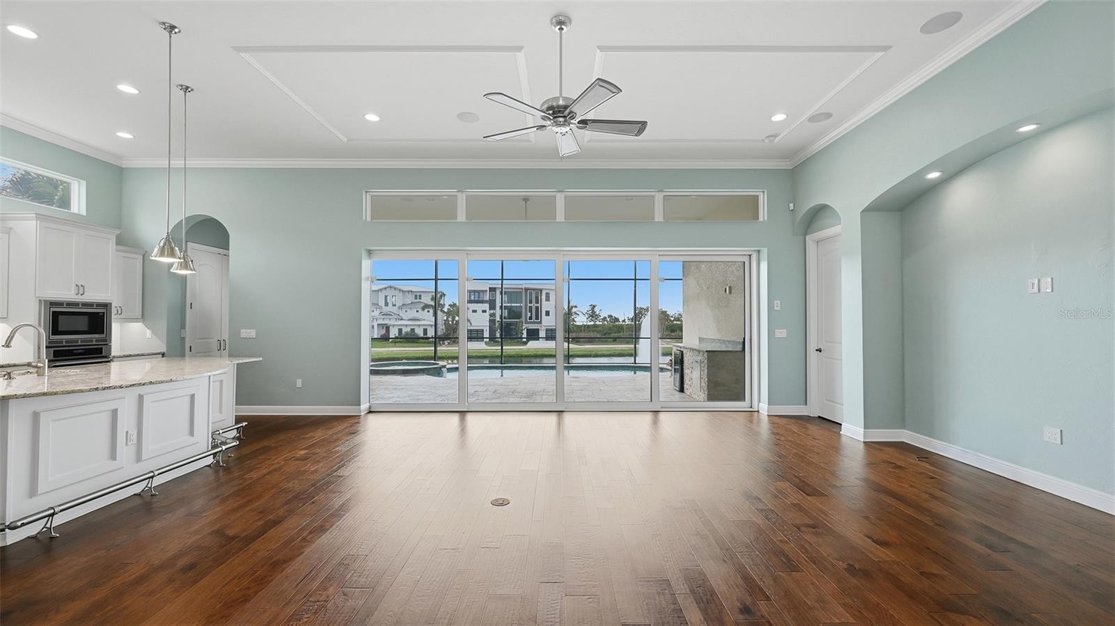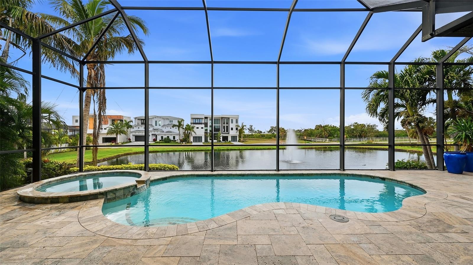 Step into this stunning custom residence in the highly sought after Legends Bay community, where quality construction and thoughtful design come together beautifully. Built by Gibraltar, this home enjoys showcases refined craftsmanship at every turn. Expansive 12-foot ceilings, elegant tray accents, impact pocketing sliders, and transom windows fill the main living spaces with soft, natural light. Overlooking a peaceful lake, the home offers 3 bedrooms plus a den and a seamless blend of indoor comfort and outdoor enjoyment. Wide plank hardwood flooring, detailed millwork, crown molding, and designer LED fixtures elevate the home’s timeless style. The chef’s kitchen is both functional and impressive, featuring premium appliances, natural stone countertops, and an oversized island ideal for gatherings. A floor to ceiling walk in pantry adds exceptional storage. The owner’s suite is a private retreat with serene water views, a spa inspired bath with a soaking tub and walk in shower, and an expansive custom closet. The den provides flexible space for an office, media room, OR quiet lounge. Outdoors, enjoy a heated pool and spa with smart controls, a covered lanai, and a convenient pool bath—perfect for year round Florida living. The home also includes impact-rated windows and doors and is elevated well above sea level for added peace of mind. Additional upgrades include oversized garage storage cabinets, automated ceiling mounted storage racks, and an expanded paver driveway accommodating a third vehicle. Residents of Legends Bay enjoy a lakeside community pool, clubhouse, walking trail, and fishing pier. The HOA includes lawn care and cable/internet. With IMG Golf & Country Club (golf cart friendly), IMG Academy, and the beaches of Anna Maria Island and Longboat Key just minutes away, this home offers an exceptional lifestyle in an unbeatable location.