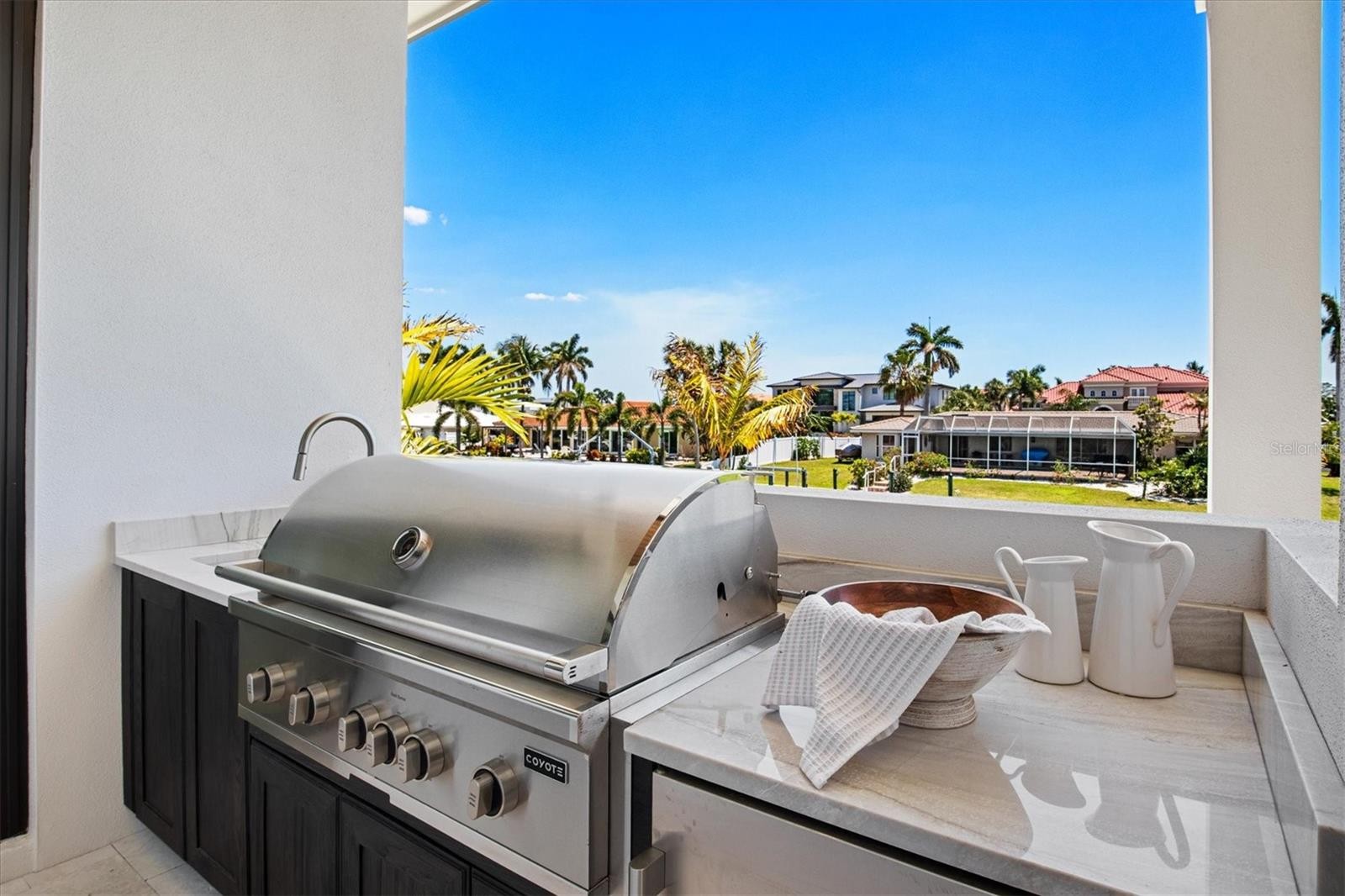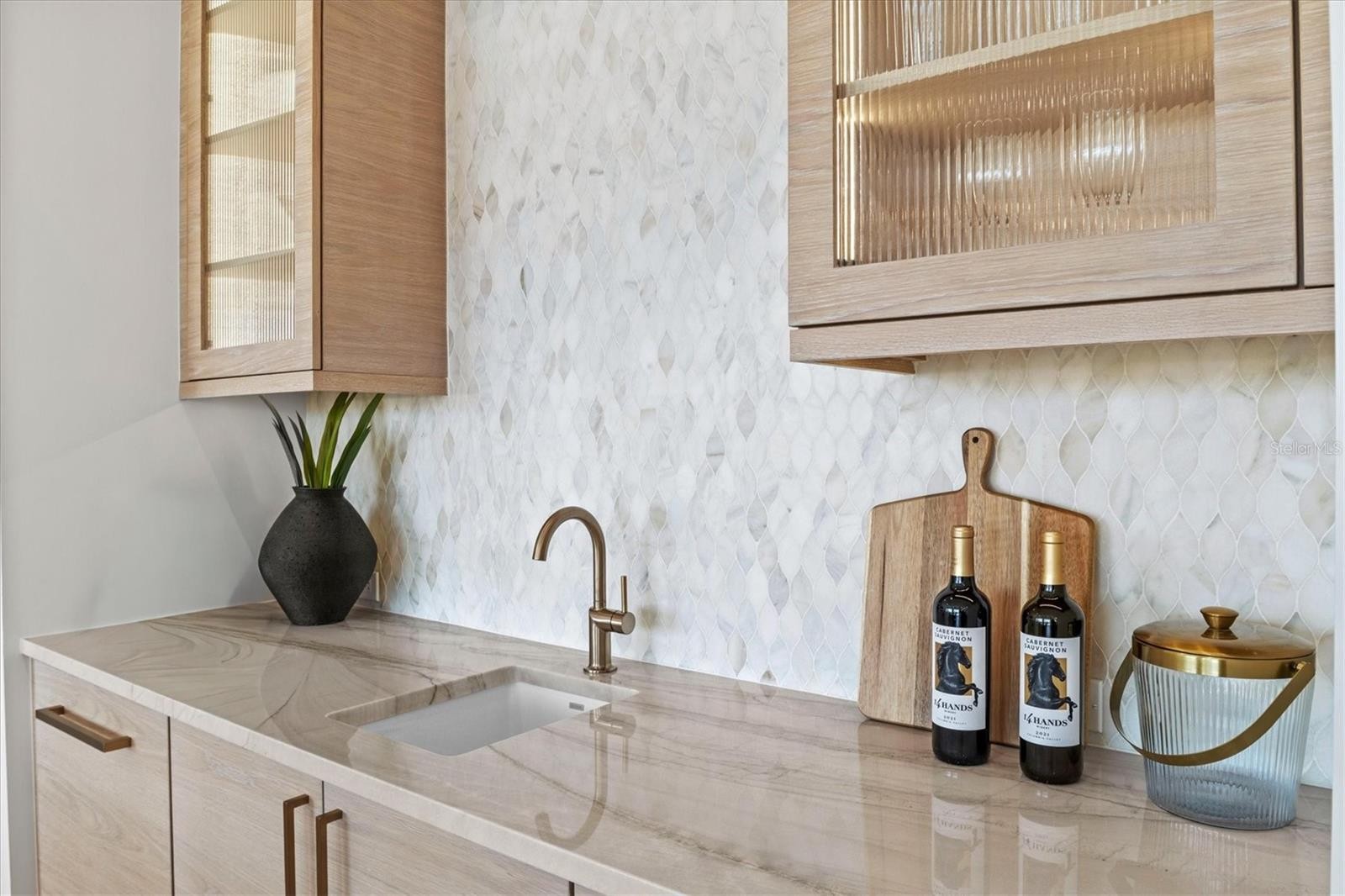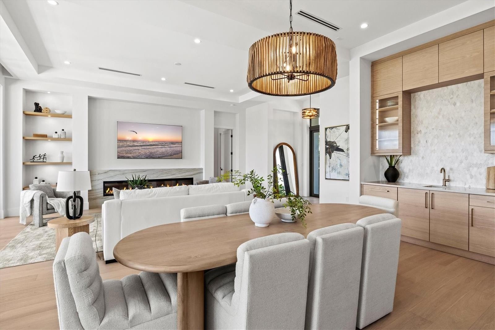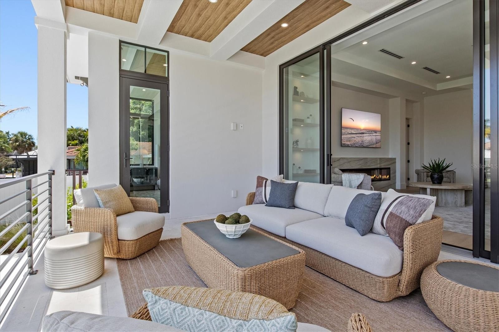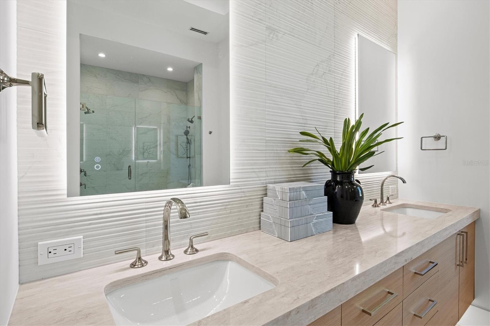 One or more photo(s) has been virtually staged. Only ONE BUYER will be the FIRST OWNER! Crafted by an award winning design team, this brand-new coastal contemporary waterfront residence awaits you in the exclusive Country Club Shores community on South Longboat Key. Designed for high performance and easy maintenance, this rock-solid, all block two-story residence with a private elevator provides peace of mind while capturing the essence of easy island living. A fluid open-concept layout is ideal for seamless indoor-outdoor waterfront entertaining. Soaring ceilings with impressive transom glass over casement windows and 10-foot tall sliding glass doors illuminate the interiors with natural light. At the heart of the home, a thoughtfully created gourmet kitchen and wet bar are a showpiece, featuring tailor made modern shaker doors and full panel rift-cut white oak cabinetry. Striking elements include the waterfall island and a dramatic ceiling-height hood, both wrapped in exotic natural Quartzite. A full suite of Wolf & Sub-Zero appliances includes twin 30" refrigerator & freezer towers, an 18" wine tower, under counter beverage centers, wall ovens and a contemporary gas cooktop. The first-floor primary suite is a serene retreat featuring a warm wood-slatted ceiling, expansive glass and a gorgeous bathroom with a freestanding soaking tub, dual vanities and textured porcelain tile accents. An inviting staircase leads to an elevated private home office with a half bathroom. The second floor features a game room with a wet bar and three en-suite guest bedrooms, offering comfort and flexibility complemented by a 30 foot covered balcony overlooking the tranquil water views. Energy-efficient features include variable speed 17 SEER HVAC systems, spray foam insulation and hurricane impact-resistant ES windows and doors. Control4 Smart Home technology provides many conveniences. A host of pre-wired systems—including sound, security, shades and EV charging—can be customized to the buyer's selections. Outside, a brand-new, 100-foot-long, extra-wide seawall protects a resort-style paradise! A four piece French patterned Crema Nova marble decking surrounds the 40-foot linear pool with in-water bench seating, a large sun shelf and a 12 foot wide spa. An elevated lanai with detailed ceilings features an outdoor kitchen, complete with Naturkast marine grade cabinetry, under counter refrigerator and a 42 inch built-in grill offering the perfect retreat for alfresco dining and poolside lounging. All this is just minutes from the extraordinary shopping and dining of St. Armands Circle, the cultural richness of downtown Sarasota, and the world-renowned Gulf beaches of Longboat Key. Seller is offering generous allowances towards custom closets and boat dock design providing an opportunity for the buyer to personalize these features to meet their sytle and preferences!