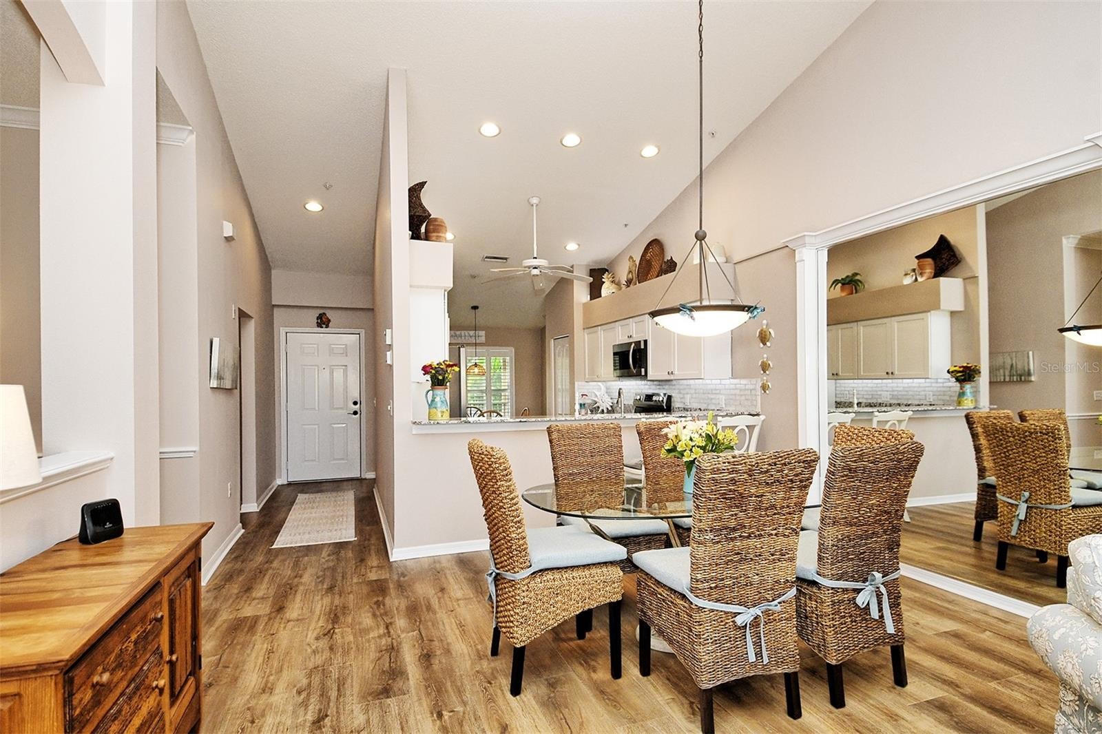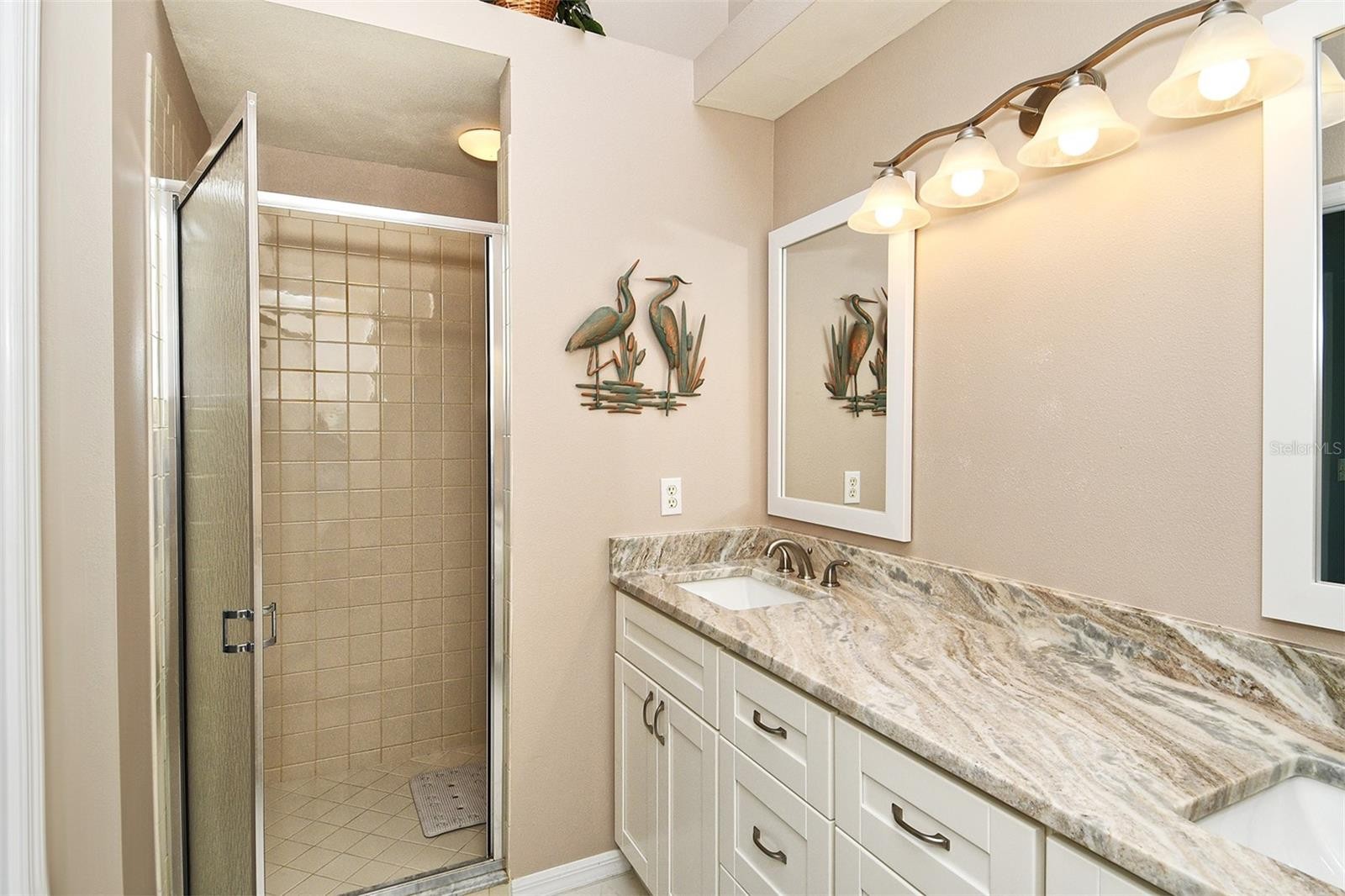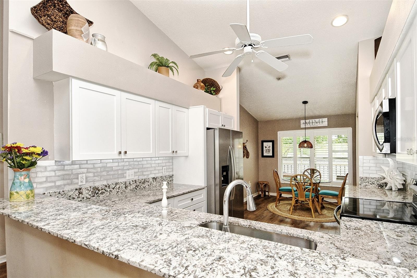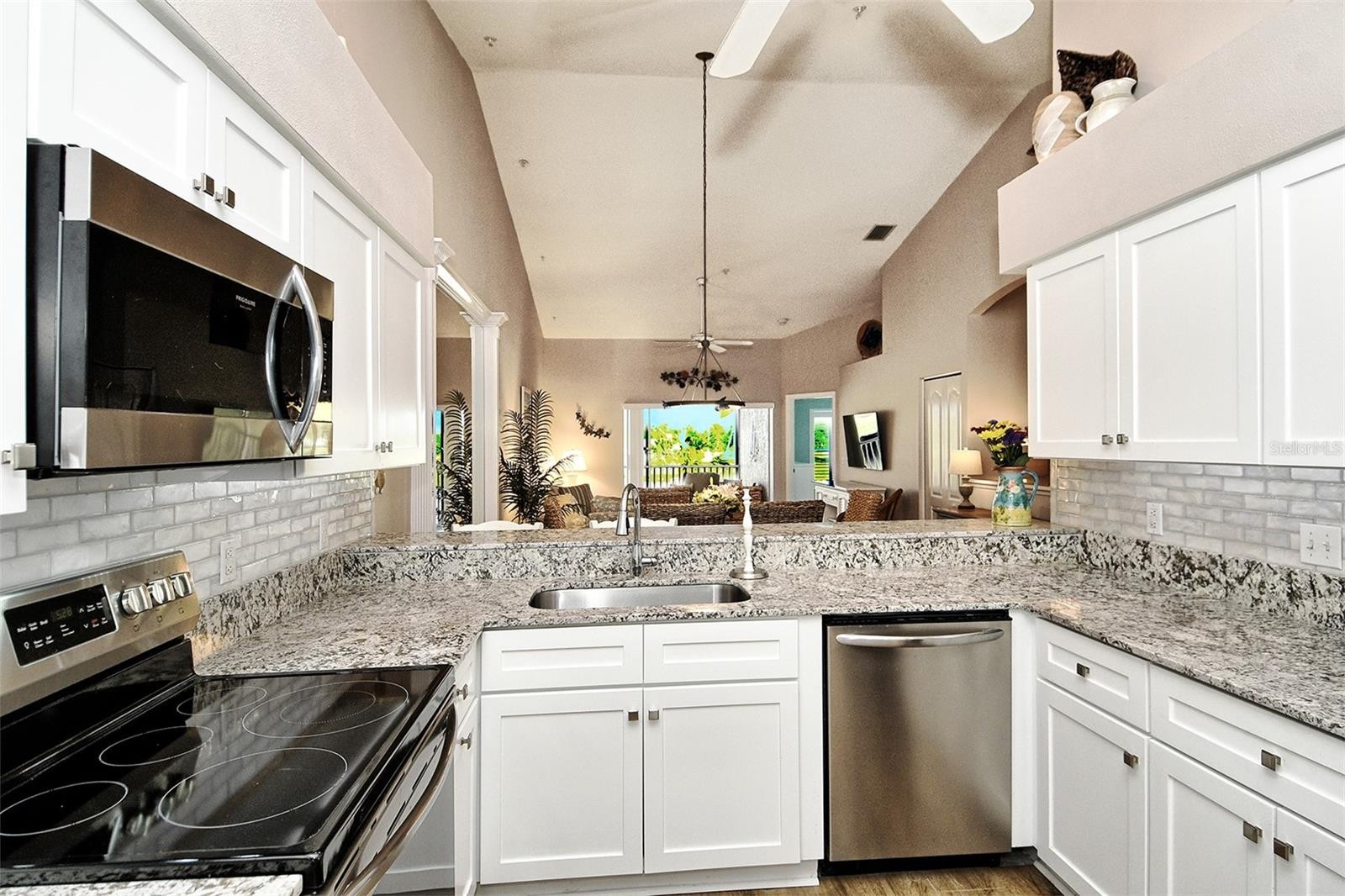 Come take a look at this gorgeous, very updated and Turn-Key Furnished "Barrington" Veranda unit in Heritage Oaks Golf & County Club. Featuring some of the best unobstructed easterly views of water and the 13th hole of the golf course, this property stands out among the rest. Upon walking up to the property, you'll fall in love with the pristine and tropical landscaping that surrounds this wonderful home. As you enter the front door, take in the abundance of natural light and soaring vaulted ceilings that make the home feel bright and open. The gorgeous kitchen features lovely shaker style cabinets with granite countertops, modern stainless steel appliances, and a wonderful subway tile backsplash. The floors throughout the common areas have been replaced with wide-plank luxury vinyl plank flooring that creates a seamless and low maintenance property. The home has 2 bedrooms, 2 full bathrooms that have been recently updated, a den/study, 2 wonderful screened lanai spaces, and a detached 1-car garage. Easily move in to this property and stay the night and golf on day 1! The A/C was replaced in 2022 and a new water heater was just installed in 2025 giving the new owner years of maintenance-free living. The property also features impact windows installed in 2025 giving true peace of mind during storm season. Gorgeous plantation shutter window treatments also compliment the array of beautiful updates done to this home. Additional features include a convenient laundry space, a wonderful den/study that's a perfect as a home office or third bedroom, and some lovely built-in details throughout the home. Heritage Oaks is known for its pristine 18- hole golf course, har-tru tennis courts, fitness center, 24-hour security, an impressive recently renovated clubhouse with 2 restaurants including the sensational 19th Hole Lounge, 5 heated swimming pools, and a calendar of events packed with activities. Don't miss your chance to tour this wonderful home today!