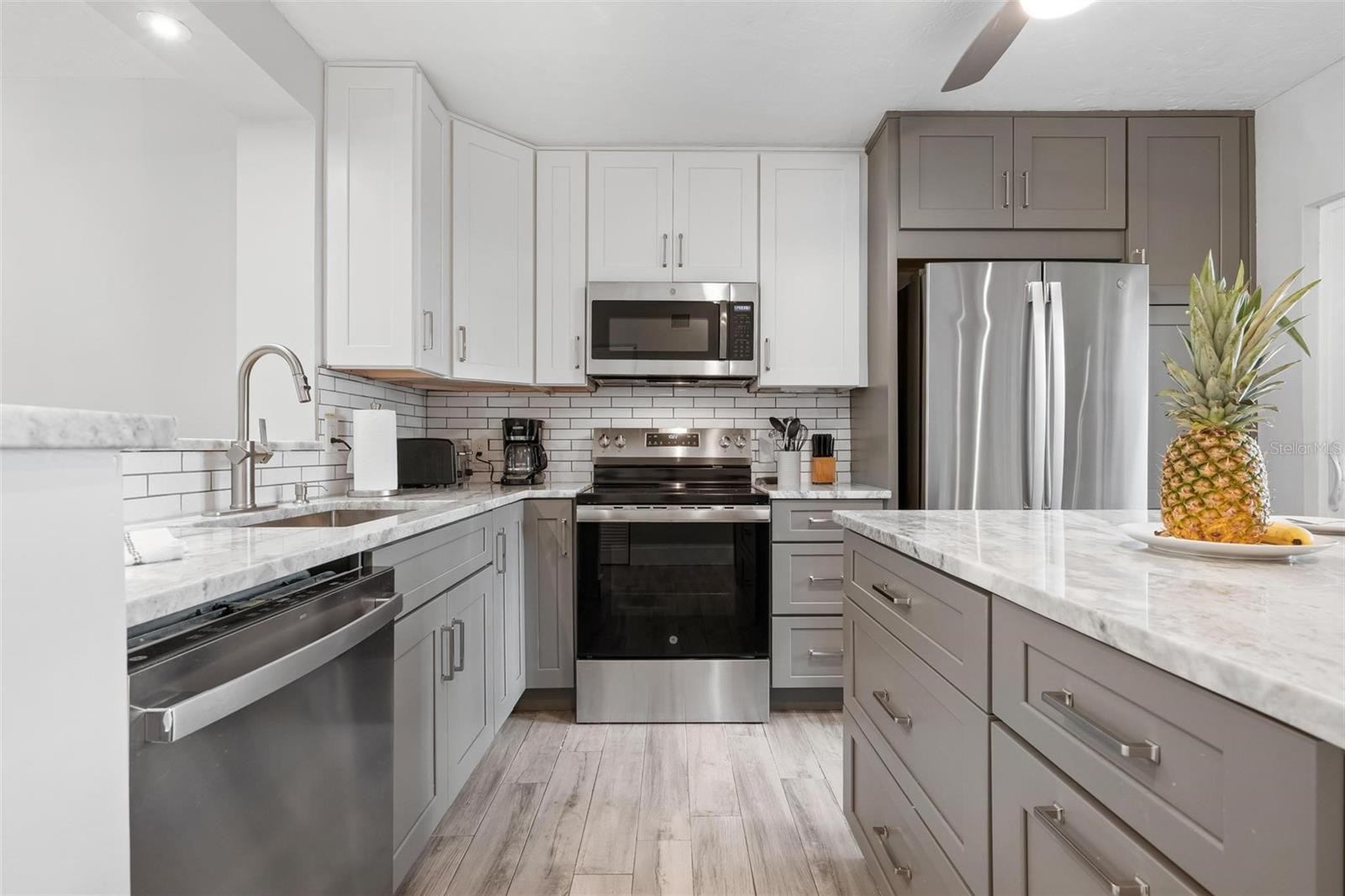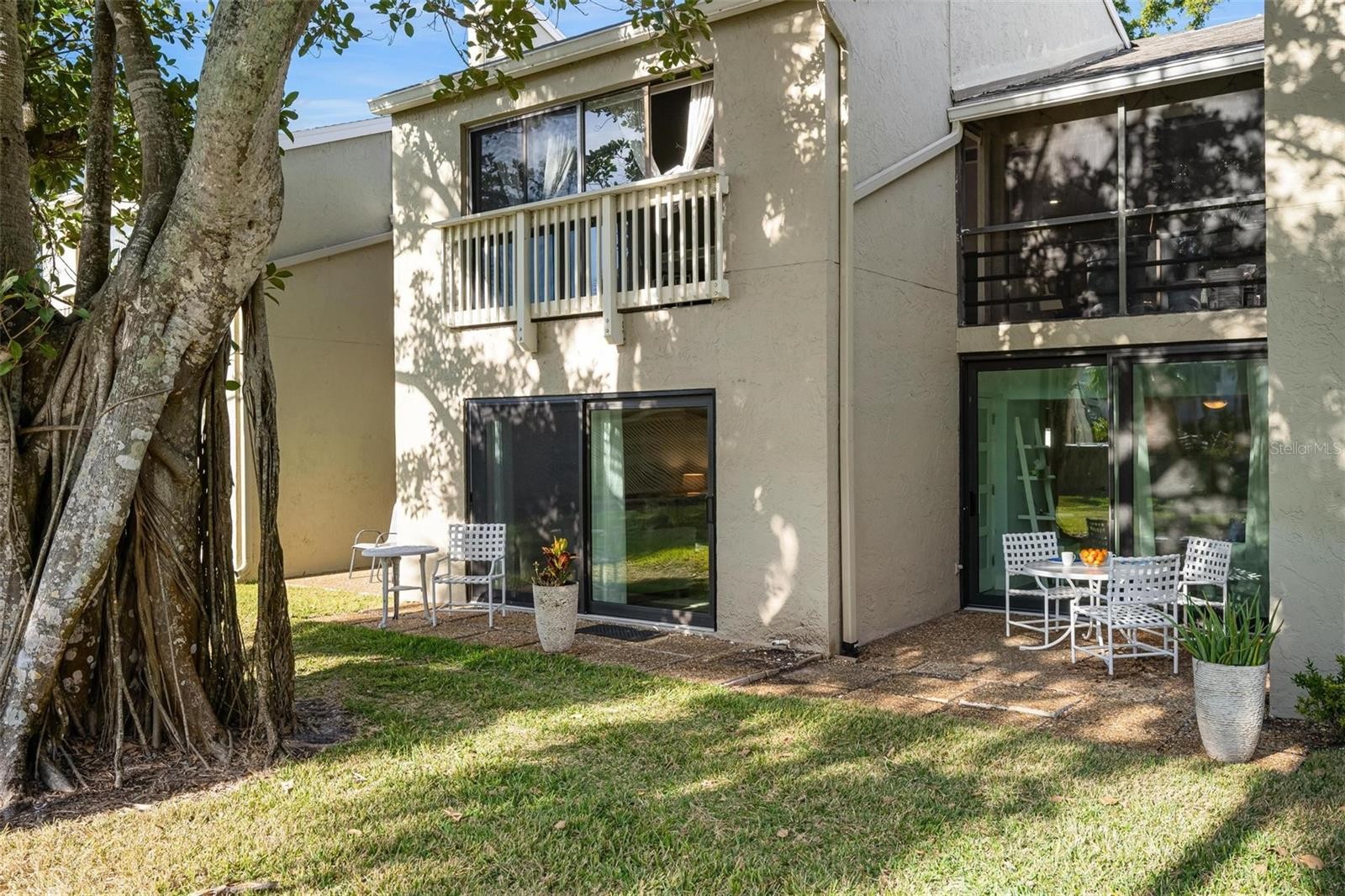 This beautifully maintained, ground-floor 2-bedroom, 2-bathroom condo in the desirable Banyan Bay Club offers an exceptional opportunity to own a spacious, modern / updated, move-in-ready home perfectly positioned in a charming, pet-friendly gulf-to-bay community. This unit combines convenience, amenities, and a relaxed coastal lifestyle—all at an outstanding location. This Banyan Bay condominium has an open floor plan with plank style ceramic tile throughout, recently updated featuring new cabinets, vanities, quartzite/quartz countertops and new stainless steel appliances; new Central Air system, and new hot water heater, in-unit full-size washer & dryer, modern tile design in bath, extra sleeping nook for added flexibility, tastefully furnished (can be sold furnished), private patio nestled under a majestic banyan tree-ideal for morning coffee or evening cocktails, large glass hurricane sliders & windows offering a garden view, fiber optic internet included for each unit. SQUARE FOOTAGE IN SLEEPING NOOK IS ADDED TO MAKE THE INTERIOR SQ FTG 1163. The resort-Style Community Amenities (steps from your door): heated community swimming pool, newly resurfaced tennis and pickleball court, fully equipped fitness center, clubhouse with social hall and full kitchen, new day dock, fishing pier, kayak/paddleboard launch, & storage, private gulf beach access with complimentary lounge chairs on the sand, assigned covered carport parking plus ample guest parking, exterior storage for beach gear, on-site manager and carefree exterior maintenance handled by the association, bicycle storage and mature tropical landscaping with giant banyan trees. Unbeatable Location-why Mid-Key is Best! Everything you need is within walking distance; numerous restaurants & cafes, boutiques, beautiful Durante Park with shaded trails and playground, 3 minute walk to your private Gulf beach, 1-minute walk to the community pool, gym, clubhouse, and courts,. This 44-unit condominium offers a social atmosphere, plenty of activities, up to 2 pets allowed (no weight or size limit). Whether you are seeking a full-time residence, vacation getaway, second home or investment property (valued returning renter’s incomes can offset HOA fees), this immaculate condo is ready for you to move in and start enjoying the island lifestyle today. Don't miss this combination of location, amenities and value on Longboat Key!