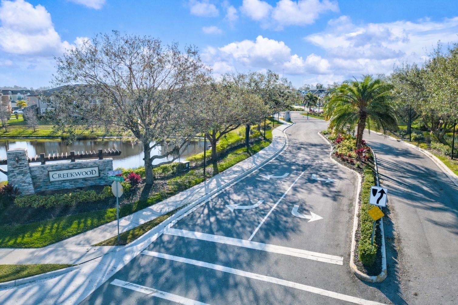 Your dream home is here! Built in 2016, this spacious Creekwood Townhome offers 2,181 square feet of living space, making it the largest floor plan in the community. Featuring 3 bedrooms, 2.5 baths, a large loft, and a 2-car garage, this end-unit townhome is move-in ready and maintenance-free! Step inside to discover a light and bright open floor plan with upgrades galore. The kitchen is a chef’s dream, complete with 42-inch cabinets topped with crown molding, granite countertops, stainless steel appliances, a large island with breakfast bar, reverse osmosis, and a walk-in pantry. It flows seamlessly into the dining and living areas, which are bathed in natural light from multiple windows and the sliding glass doors. These open onto an extended screened and covered lanai that offers serene views of the pond—perfect for relaxing or entertaining. Also on the first floor, you’ll find a dedicated laundry room with built-in cabinets, plus a stylish half bath with a chic faux-brick accent wall. The owners have spared no expense adding a new water heater, whole home water softener, reverse osmosis drinking water, AC UV Light, and home security system Head upstairs to the versatile loft area, ideal for a home office, playroom, den, or game room—the possibilities are endless! The master suite is a true retreat, with pond views, a spacious recently remodeled walk-in closet, and an en-suite bath featuring dual sinks, a quartz countertop, a built-in vanity, and a large walk-in shower. At the front of the home are two additional bedrooms—the only rooms with carpet replaced in 2021—and a second full bath with a shower/tub combo, dual sinks, and quartz counters. And of course, it’s all about location! Conveniently close to I-75, this home offers easy access to Sarasota, Tampa, world-famous beaches, Lakewood Ranch area events, shopping, dining, and UTC. Don’t miss this fantastic opportunity to live in a sought-after community with everything you need at your fingertips!