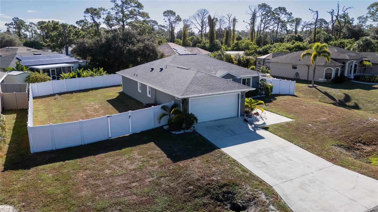 Welcome to this beautiful well-maintained 3-bedroom, 2-bath home located in a quiet neighborhood in growing North Port. This split-bedroom open floor plan offers vaulted ceilings, tile and laminate flooring, and a spacious living area perfect for entertaining. The kitchen features custom cabinetry, a breakfast bar, and views of the fenced in serene backyard. The primary suite includes a walk-in closet and en-suite bath. The home was updated in 2023 with a new roof, vinyl fence, paver patio, new flooring, whole house reverse osmosis water system, and many more updates. The home also has ring cameras at the front and rear of the home. Enjoy Florida living on a generous 0.23-acre lot with plenty of room for a pool or garden. No HOA or CDD. Conveniently located near I-75, shopping, dining, and Gulf Coast beaches. Move-in ready and full of potential—schedule your showing today!