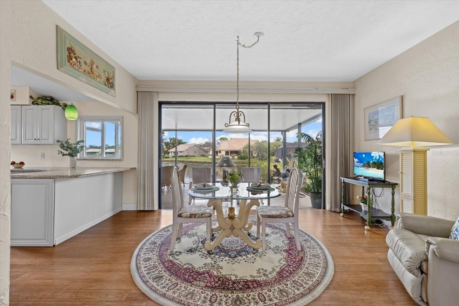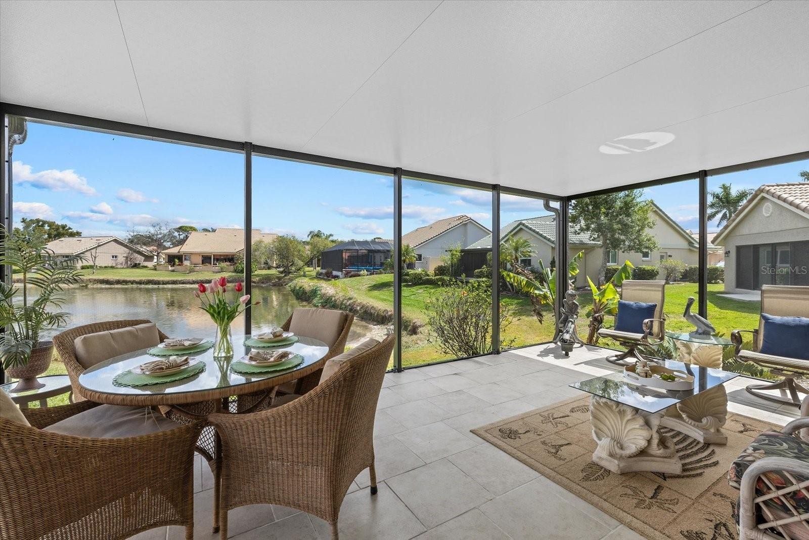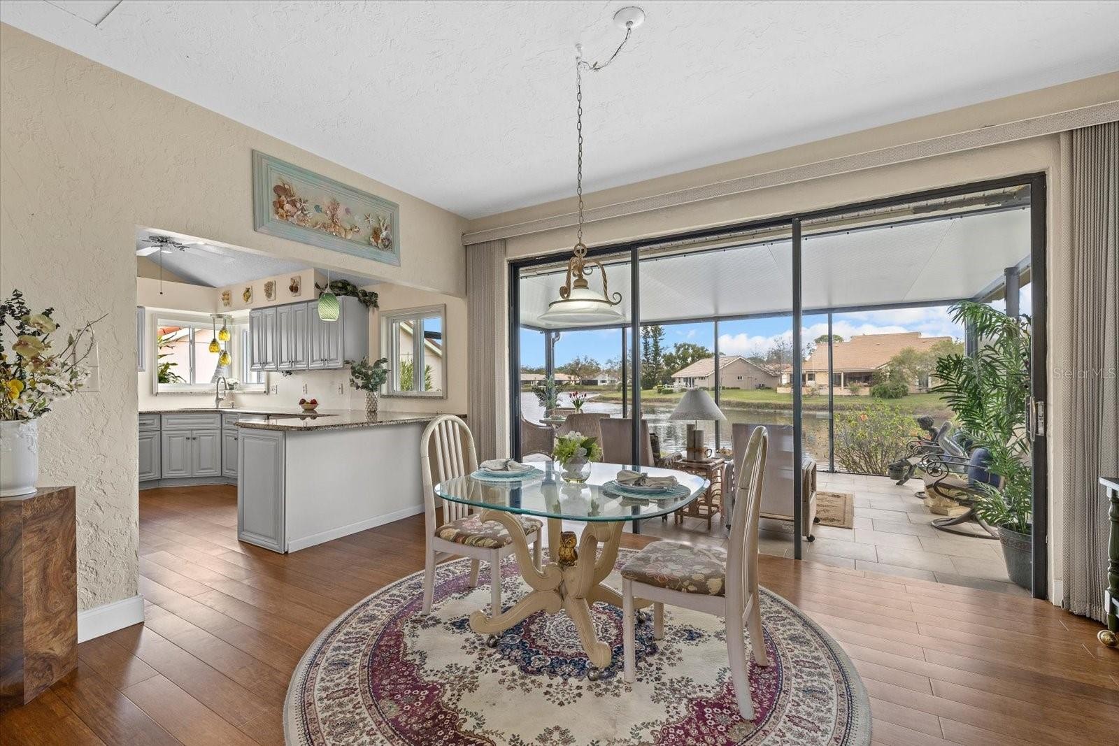 WATER VIEWS! HURRICANE PROTECTION! PRICED BELOW APPRAISED VALUE! 53 Inlets Blvd in Nokomis is a welcoming home where comfort meets thoughtful updates in the sought after Inlets community, located West of the Trail. This beautifully maintained 3 bedroom, 2 bathroom home with a 2 car garage offers a bright and inviting layout designed to highlight its tranquil water views. Recent updates include: Electrical Panel (2026), New Screened-In Lanai (2025), HVAC (2023), Repiped (2015). Step inside through the dedicated foyer with coat closet, which opens into spacious living and dining areas with soaring vaulted ceilings that create an airy, open feel. Engineered hardwood flooring flows throughout most of the home, adding warmth and continuity, with tile in both bathrooms. The updated kitchen features granite countertops, a breakfast bar, and picturesque water views, making it the perfect space to cook, gather, or simply enjoy your morning coffee while overlooking the water. The dining and living areas feel especially expansive thanks to the vaulted ceilings and natural light. The primary suite serves as a relaxing retreat, also with water views and an updated ensuite bathroom featuring a dual vanity with marble countertops, makeup vanity, linen closet, private water closet, and a tiled walk-in shower. The suite also includes a spacious walk-in closet. The guest bathroom offers a tub and shower combination with single vanity and convenient linen closet access. One of many standout features of this home is the nearly 300 square foot screened-in lanai, where sweeping water views create the perfect backdrop for relaxing evenings or peaceful mornings watching the ducks glide across the water. Important updates provide peace of mind, including a new electrical panel in 2026, screened lanai replaced in 2025, AC replaced in 2023, and the home was repiped in 2015. An interior laundry room adds everyday convenience. ‘The Inlets’ is a gated golf cart-friendly community located ‘West of the Trail’, close to waterfront dining, shopping, the Legacy Trail, downtown Venice, Nokomis beach is just one mile from the back gate as well as a short drive to downtown Sarasota! The dues include Direct TV, internet, irrigation, lawn maintenance, landscaping, RV/Boat storage when available, use of the community amenities and much more! This amenity rich community includes a heated pool, hot tub, fitness room, library, tennis courts, shuffleboard courts, pickleball courts, and a full schedule of community social and recreational activities!