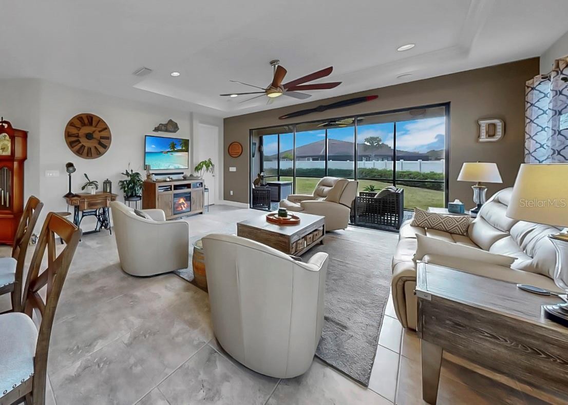 You won’t want to miss this beautifully upgraded Sandpiper Villa in Esplanade at Artisan Lakes, where thoughtful design, elegant finishes, and effortless Florida living come together seamlessly. Priced to sell, this 2-bedroom plus flex room villa offers a desirable split floor plan that provides both privacy and functionality. The versatile flex room is ideal for a home office, den, or a comfortable third sleeping space for visiting guests—making the home perfect for a seasonal getaway or a full-time residence. Custom built-ins in both bedrooms add style and smart storage, while tray ceilings with crown molding and 8’ doors throughout enhance the open, airy feel. A leaded-glass front door creates a warm and welcoming first impression. At the heart of the home, the open kitchen flows naturally into the living area—perfect for everyday living and entertaining alike. A separate dining space offers a more formal setting, while the expansive quartz countertop invites casual meals, conversation, and gatherings. The kitchen is beautifully appointed with stainless steel appliances, a gas cooktop, an upgraded large sink, and thoughtful finishes throughout. Smart lighting and dimmer switches allow you to easily set the mood, whether hosting guests or enjoying a quiet evening at home. Both bedrooms feature private en-suite bathrooms, offering comfort and convenience for owners and guests. The primary suite is a relaxing retreat with a walk-in shower featuring upgraded tile and a frameless glass enclosure. The second bedroom, tucked privately at the back of the home, includes its own en-suite with a large soaking tub—ideal for unwinding. A conveniently located half bath is perfect for visitors, and the adjacent laundry room offers built-in cabinetry and a sink for added functionality. Seamless indoor-outdoor living awaits as triple sliding glass doors open from the living area to the lanai, where you can relax or entertain while enjoying a larger-than-average villa lot with a private, landscaped backyard. A paver walkway with hard-wired lighting extends along the side of the home to the lanai, adding both elegance and easy access—perfect for embracing the Florida lifestyle. Additional highlights include a garage with epoxy flooring and built-in shelving, a tankless water heater, and gutters for added peace of mind. This maintenance-free villa allows you to truly enjoy resort-style living, with the HOA covering cable, internet, roof, and exterior painting—so you can spend more time enjoying your home and less time on upkeep. Esplanade at Artisan Lakes offers resort-style amenities, including two clubhouses with beautifully designed social and activity spaces. Residents enjoy two resort-style pools, a resistance pool, two spas, a state-of-the-art fitness center, movement studio, and outdoor recreation such as tennis, pickleball, bocce ball, and cornhole. Additional highlights include a fire pit, multiple lounging areas, both small and large dog parks, and a playground. A full-time lifestyle manager curates events, clubs, and activities, creating a vibrant community atmosphere. Conveniently located near I-75 and I-275, this home provides easy access to Tampa, St. Petersburg, Bradenton, Sarasota, airports, dining, shopping, golf, and the award-winning Gulf Coast beaches. Beautifully maintained, thoughtfully upgraded, and located in one of the area’s most desirable maintenance-free communities—this home is truly a must-see! *Attached video and 3D tour*