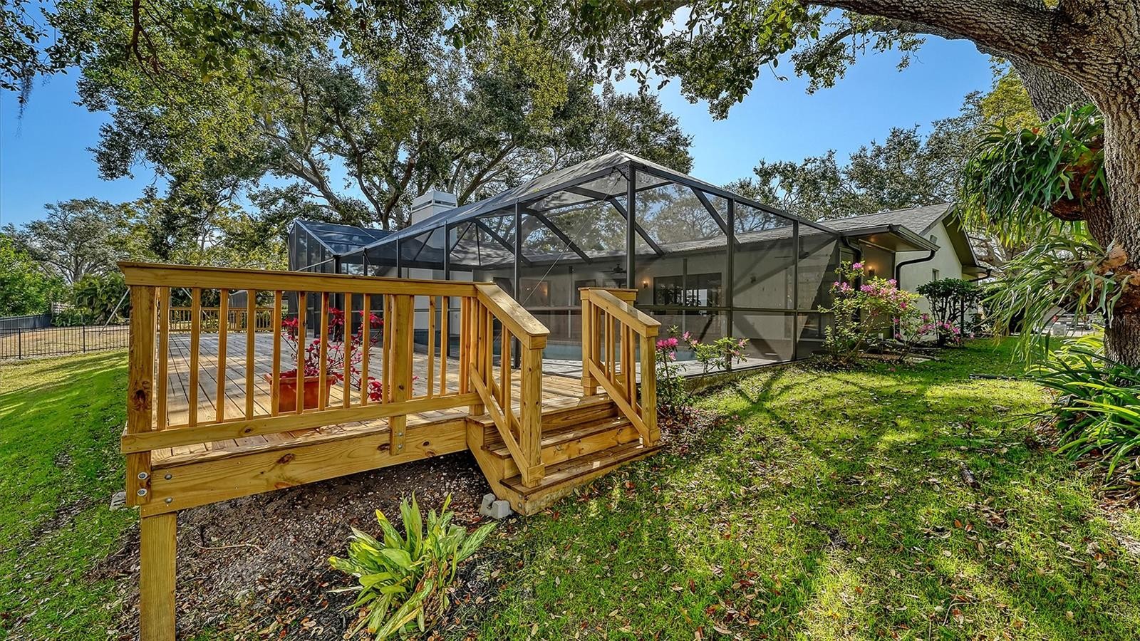Captivating lake views greet you from the moment you walk through the double door entrance. Enjoy the abundant activity of wading birds, ospreys, turtles and possibly the occasional otters from the magnificent newer deck or the expansive lanai with caged pool and hot tub. Even the living room, family room, kitchen and master bedroom provide peaceful vistas of ancient oaks reflected over quiet waters. Set on a low trafficked circle, this spacious 2528 sq. ft. 3-bedroom, 2 bath home comes with a living room, family room (with fireplace), a den, two dining areas and a generous sized three-car garage. The master suite offers two large walk-in closets, a separate tub and shower, dual sinks and a secluded den that provides a peaceful retreat. Beautifully finished wood floors adorn the family room, kitchen, both dining areas and laundry room. Enjoy the gas-heated pool and hot tub year-round! Lovingly maintained with new roof, gutters and the massive new wood deck in 2025. Pool cage rescreened too. A/C 3 to years old. Home replumbed in 2010. Located on a quiet, tree-canopied circle, just a few miles from Doctor's Hospital, Home Depot, Wal-Mart, Publix plus other shopping and dining spots. A-rated schools nearby. I-75 access, just a couple minutes away, leads to downtown, the Sarasota International Airport, and to Tampa or Naples. Only 6 miles from Siesta Key's world-famous beaches and fun night life. In flood zone X allowing peace of mind. A beautiful, versatile home, with low HOA fees and no CDD fees. Enjoyable as-is or ready for you to customize to your style and tastes.