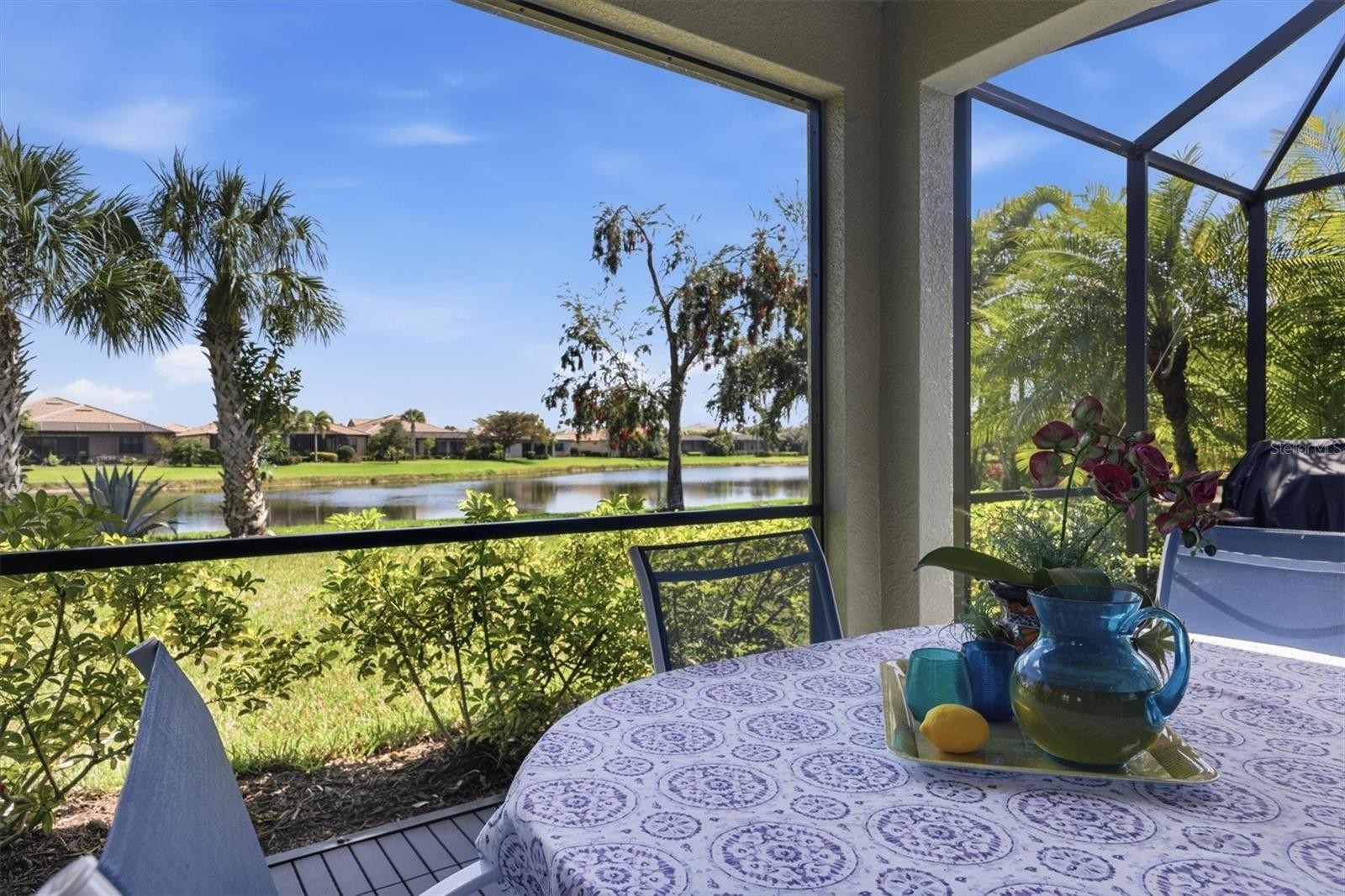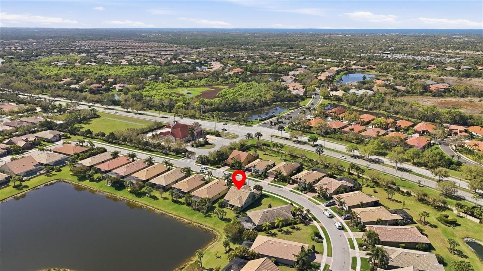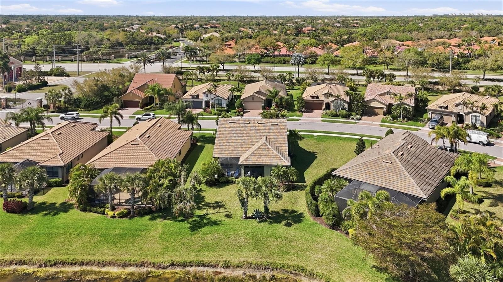Rarely available two-story Abbeyville model in Sandhill Preserve! This spacious home is 2,380 Sq Ft and offers 3 bedrooms, 3 full baths, a den, loft, sunroom, great room, and extended lanai, providing exceptional space for both everyday living and entertaining. Impact windows and doors throughout offer peace of mind while helping keep the home quiet and energy efficient. Situated on an oversized waterfront lot, the setting feels like your own private tropical retreat. Enter through the beautiful stained-glass front doors, where a guest bedroom and full bath are tucked privately to the left—ideal for visiting family and friends. Just down the hall is a versatile den, previously used as an art studio, that could easily function as a home office or additional guest space. The home opens into an impressive main living area where the kitchen, great room, dining area, and sunroom flow seamlessly together—perfect for entertaining. The kitchen features white cabinetry, stone countertops, stainless steel appliances, and a large center island that anchors the space. Sliding glass doors extend the living area outdoors to the screened lanai, creating the indoor-outdoor lifestyle Florida is known for. It’s the perfect spot for morning coffee while watching sandhill cranes stroll by or evening cocktails as the sun sets over the water. The spacious primary suite includes a luxurious ensuite bath with an extra-large walk-in shower with bench seating, dual sink vanity, and custom walk-in closet. The laundry room is conveniently located near the primary bedroom for added functionality. Upstairs provides a private guest retreat featuring a loft, bedroom, full bathroom, and multiple storage closets, giving visitors their own comfortable space. Completing the home is a spacious two-car garage with additional room for bikes and storage. Residents of Sandhill Preserve enjoy maintenance-free living and resort-style amenities, including a pool and spa, fitness center, indoor event space, outdoor bar and grill, firepit, and tennis and pickleball courts. Ideally located in Palmer Ranch, the community is just minutes from the Legacy Trail, shopping, dining, and the world-famous beaches of Siesta Key and Nokomis. Nowhere but here, Sandhill Preserve.