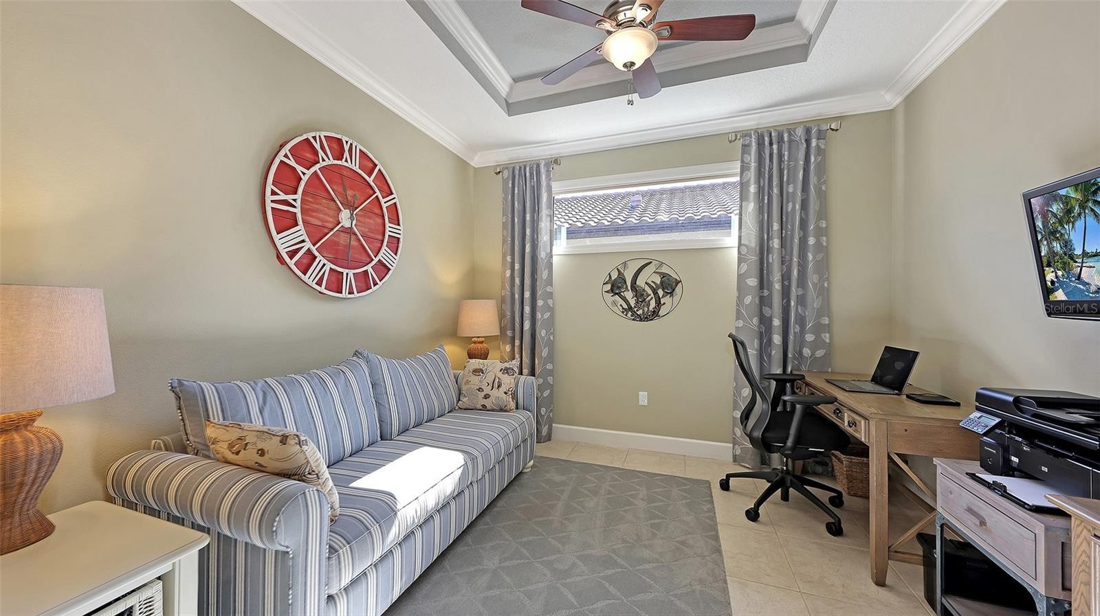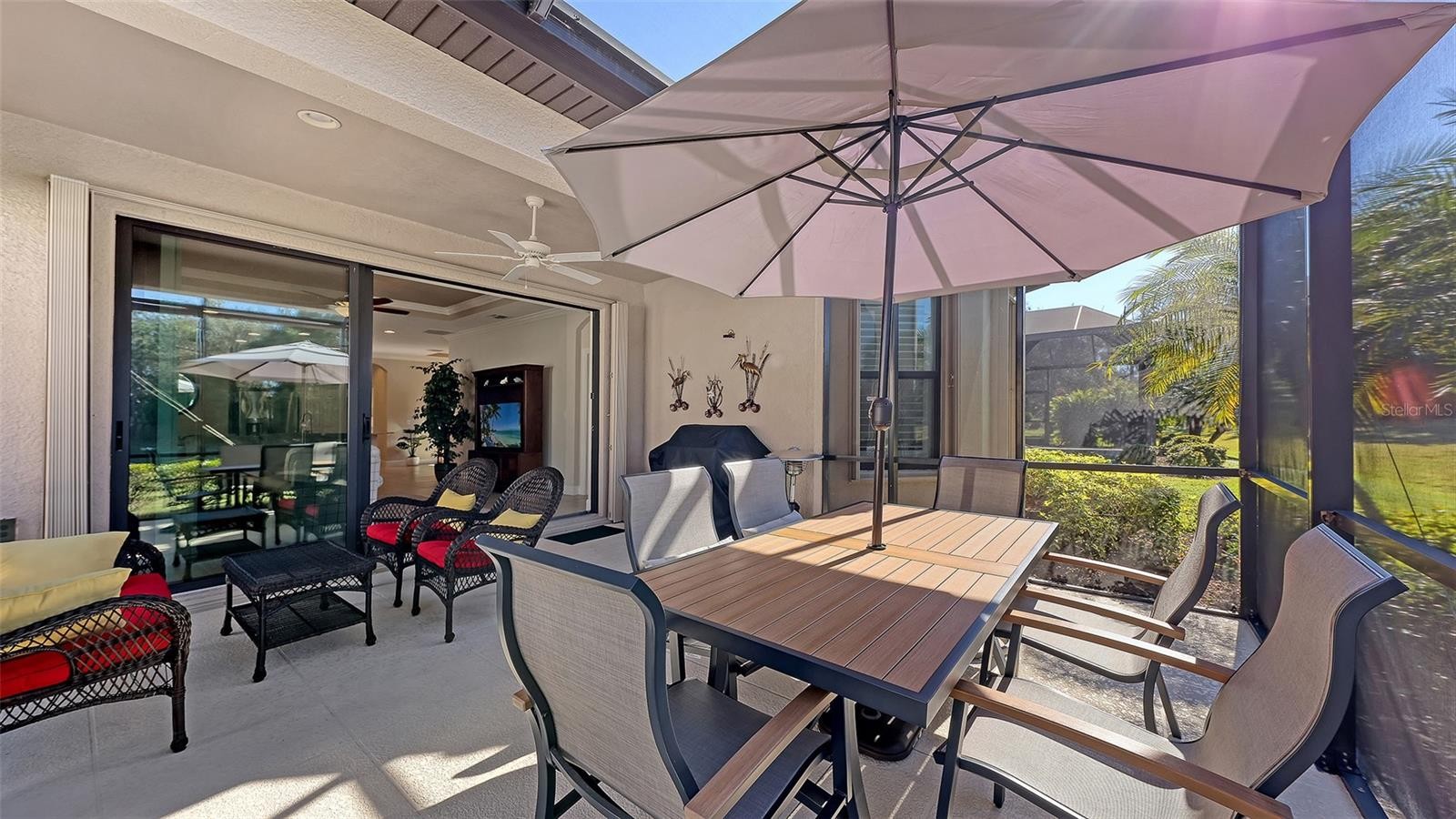 Welcome to Resort-Style Living at its best in the sought-after community of Esplanade at Lakewood Ranch! This beautiful 2-bedroom, 2-bathroom Roma floor plan with a dedicated office/flex room is ideally located on a quiet cul-de-sac and just a short walk to the amenity center. Step inside to a spacious open floor plan that seamlessly integrates the living, dining and kitchen areas. This home features thoughtful interior detail including tray ceilings, crown molding, plantation shutters and upgraded quartzite countertops in the kitchen and guest bathroom. At the heart of the home, the chef’s kitchen shines with 42" cabinets, upgraded appliances and a remodeled counter height bar for casual dining and entertaining. Unwind in the serene owner’s suite, with dual sink vanity, walk-in shower with updated shower door and a large walk-in closet. The guest bedroom provides privacy with a pocket door which has direct access to the guest bathroom. A laundry room with new sink and upper cabinets adds extra storage convenience. Outdoor living is exceptionally inviting with this private, extended lanai with peaceful water views and coastal breezes. It is the perfect setting for intimate dining or entertaining family and friends. Several updates include a new AC system, hot water tank, and hurricane shutters. This active community offers a wealth of amenities, including an 18-hole championship golf course, two resort-style pools, hot tubs, a resistance pool, pickleball, tennis, two fitness centers, exercise classes, two dog parks, a spa and a Tiki bar. An on-site lifestyle director organizes social events, clubs, and activities. The state-of-the-art Culinary Center provides multiple dining options. All this is just minutes away from Lakewood Ranch’s world-class shopping, dining and beautiful beaches. Most furniture is negotiable and the CDD IS PAID IN FULL! Schedule your private showing today and start living the Florida lifestyle you’ve been dreaming of!