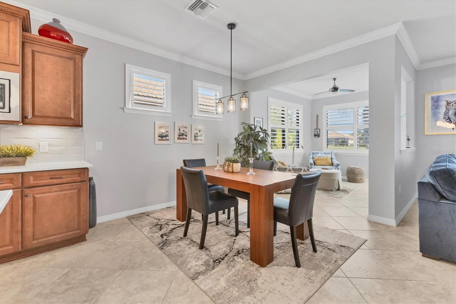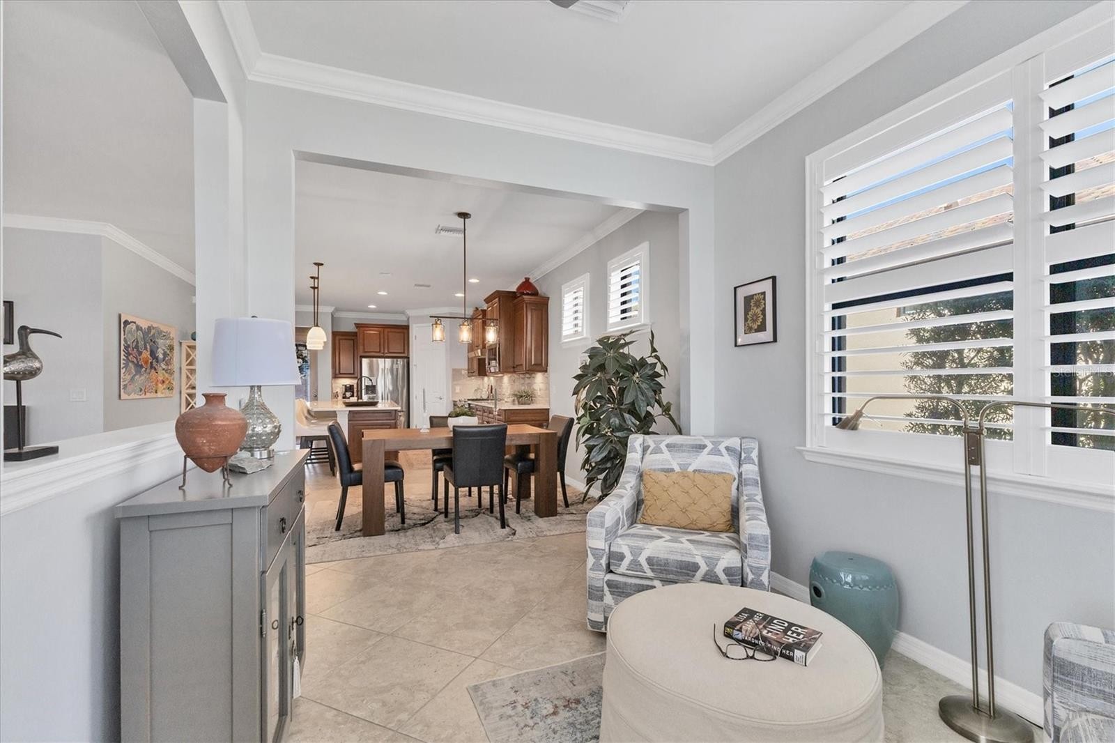 Welcome to Sandhill Preserve, a sought-after guard-gated community in Palmer Ranch where low-maintenance living meets resort-style amenities. This beautifully maintained Divosta-built residence on a lake view lot, offering an inviting sense of arrival with its brick paver driveway and covered entry. Inside, the open layout features diagonally laid tile throughout the main living areas, crown molding, plantation shutters, and tray ceilings that elevate the space. The open-concept kitchen is designed for both comfort and entertaining, featuring a large center island with bar seating, quartz countertops, a gas cooktop, a decorative backsplash, custom cabinetry with pull-outs, and a corner pantry. The great room flows seamlessly to an enclosed sunroom, creating a natural extension of the living space and leading out to a screen-enclosed paver brick patio overlooking the lake, to enjoy the sun and lake views. The primary suite is privately tucked away and offers a spacious walk-in closet, a well-appointed bath with dual vanities and a walk-in shower. A split floor plan keeps guests comfortable, while the front office, featuring French doors, functions beautifully as a den or optional third bedroom. Additional highlights include an extended garage with storage cabinets, epoxy flooring, new HVAC system, hurricane-rated impact windows, and thoughtful upgrades throughout. Sandhill Preserve residents enjoy a clubhouse, fitness center, resort-style pool and spa, tennis/pickleball courts, walking paths, and a prime Sarasota location close to shopping, dining, and beaches. This home feels welcoming the moment you step inside, and offers exceptional quality and value. Schedule your private showing today.
