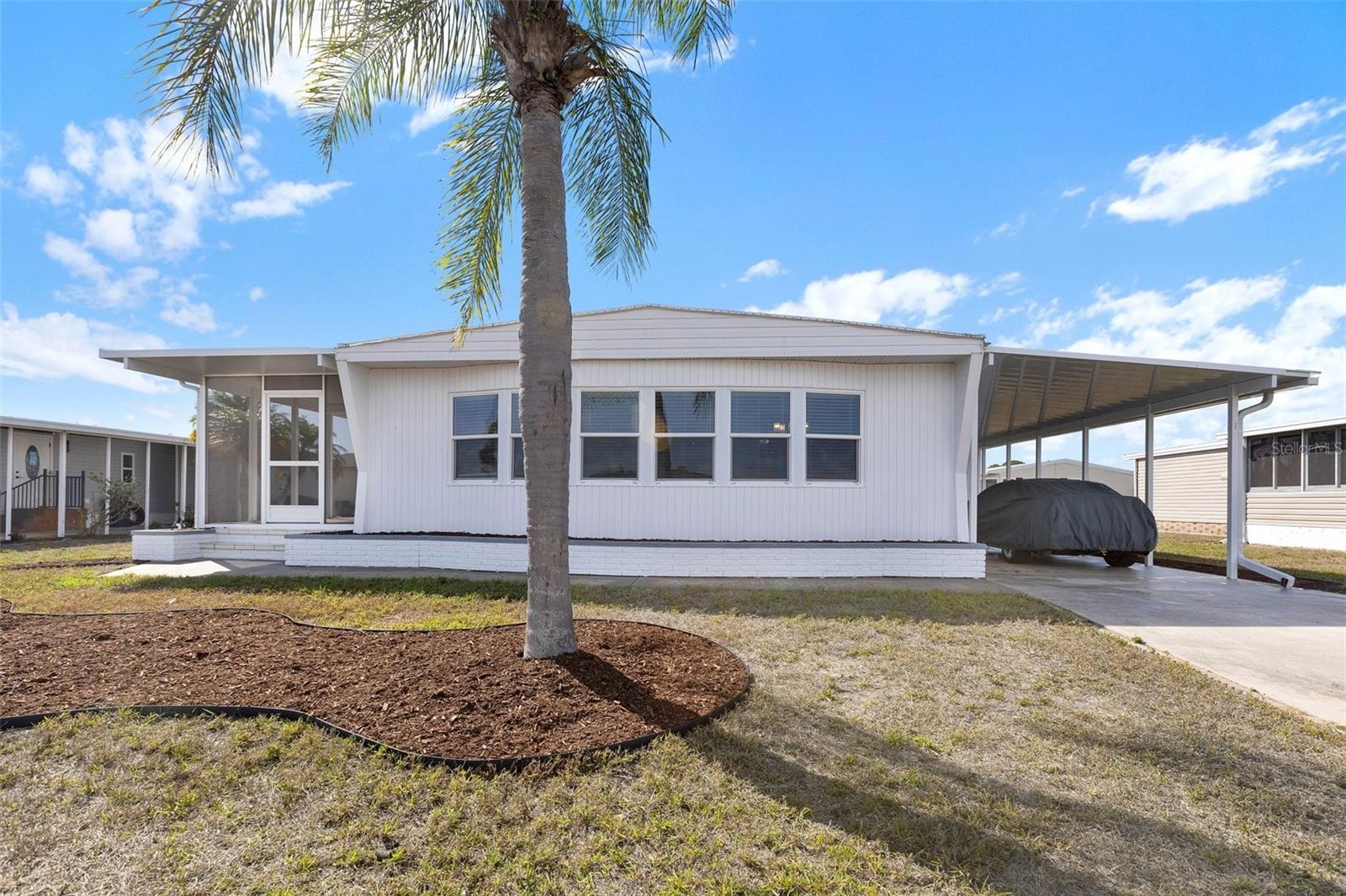 One or more photo(s) has been virtually staged. PRICE JUST REDUCED on this 2024 Clayton home, elevated and just under 900 square feet available in the 55+ WATERFRONT COMMUNITY of Harbor Cove! This new, NEVER-LIVED-IN residence in the pet section allows you to move into a brand-new space without waiting months for construction or setup. Built to current Florida building codes, the home provides peace of mind along with contemporary comfort. The 2-bedroom, 2-bath layout showcases an open-concept design with luxury vinyl flooring that runs throughout the home. The bright kitchen features generous white cabinetry, stainless steel appliances, a tile backsplash, and a large apron-style sink, all open to the living/dining area for an inviting, cohesive feel. The living room's sliding glass doors lead to the front porch—creating a great spot to enjoy the weather and bringing in abundant natural light. The primary suite includes a private bath with a shower, long vanity with dual sinks, and a walk-in closet. A split-bedroom layout places the guest room at the front of the home near the hall bath with a tub/shower combination. Enjoy the convenience of an interior laundry and a long driveway with ample parking leading to the shed and carport. Residents enjoy a 90-slip marina with budget-friendly annual slip rentals and an impressive list of amenities. The neighborhood features two swimming pools, a spa, pickleball/tennis courts, shuffleboard, bocce, fitness centers, craft rooms, and a 2-story marina-front clubhouse. Social activities are plentiful, from dances and potlucks to trivia nights, bingo, boating events, and patio gatherings. The Myakka riverfront setting offers direct boating access to the harbor and Gulf, excellent fishing, and regular sightings of local wildlife. Conveniently located near shopping, dining, beaches, outdoor concerts, golf, and medical facilities, the property also includes an exceptionally low annual lease of just $99. Opportunities like this are rare here, especially for a brand-new home. Schedule a private showing today!