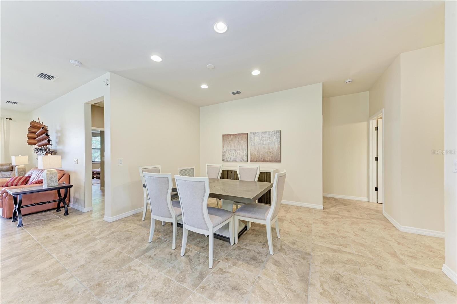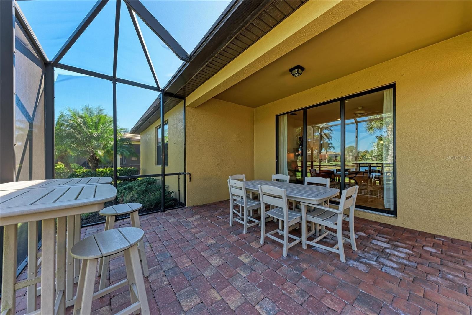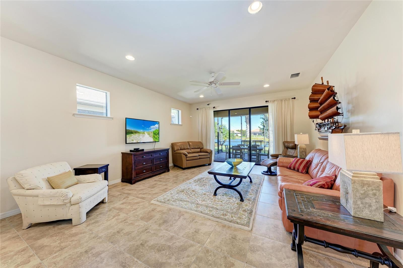 Move-in-ready home in Palmer Ranch, Sarasota, Florida, located within Sandhill Preserve—a highly desirable gated, maintenance-free community surrounded by lush greenery and scenic ponds. This beautifully maintained one-story residence offers a functional open floor plan with a split-bedroom layout, designed for comfortable everyday living and effortless entertaining. Just off the entry, a thoughtfully placed office/den provides a versatile space ideal for a home office or flex room. The open-concept living, dining, and kitchen areas connect seamlessly, enhanced by tile flooring throughout and large windows that fill the home with natural light while framing tranquil water views. The kitchen is well-appointed with modern appliances, ample granite counter space, a distinctive circular countertop perfect for gathering, and a butler’s pantry that adds valuable storage and prep space. The spacious primary suite serves as a relaxing retreat, featuring a coffered ceiling, large windows overlooking the water, generous walk-in closet, and extra storage. The en-suite bathroom includes dual sinks and an oversized walk-in shower with bench seating. An extended garage has been enclosed with its own door creating a dedicated workshop area or crafting space with exceptional storage. Outside, the screened lanai overlooks the peaceful water and is surrounded by lush tropical landscaping—an inviting space to unwind and enjoy outdoor living. Residents of this boutique gated community enjoy a low-maintenance lifestyle and a resort-style amenity center with a heated pool and spa, tennis courts, fitness center, fire pit, cabana, outdoor bar, catering kitchen, recreational facilities, and meeting rooms. An onsite activity director organizes social events, and scenic walking paths throughout the community provide beautiful lake and preserve views. With NO CDD fees and reasonable HOA fees, this home is ideally located near shopping, the Legacy Trail, and just minutes from world-famous Siesta Key Beach. Whether as a full-time residence or seasonal retreat, this well-cared-for home provides a relaxed, low-maintenance lifestyle—move right in and enjoy. Lawn care is included in the HOA fee!
