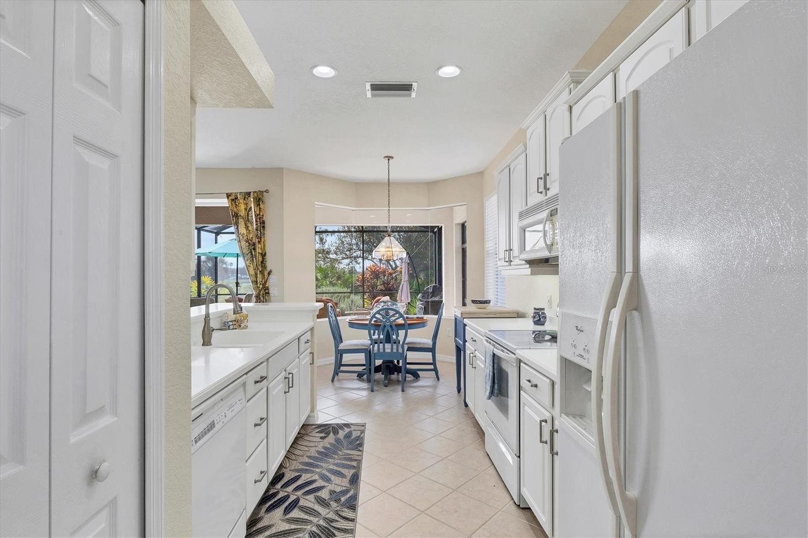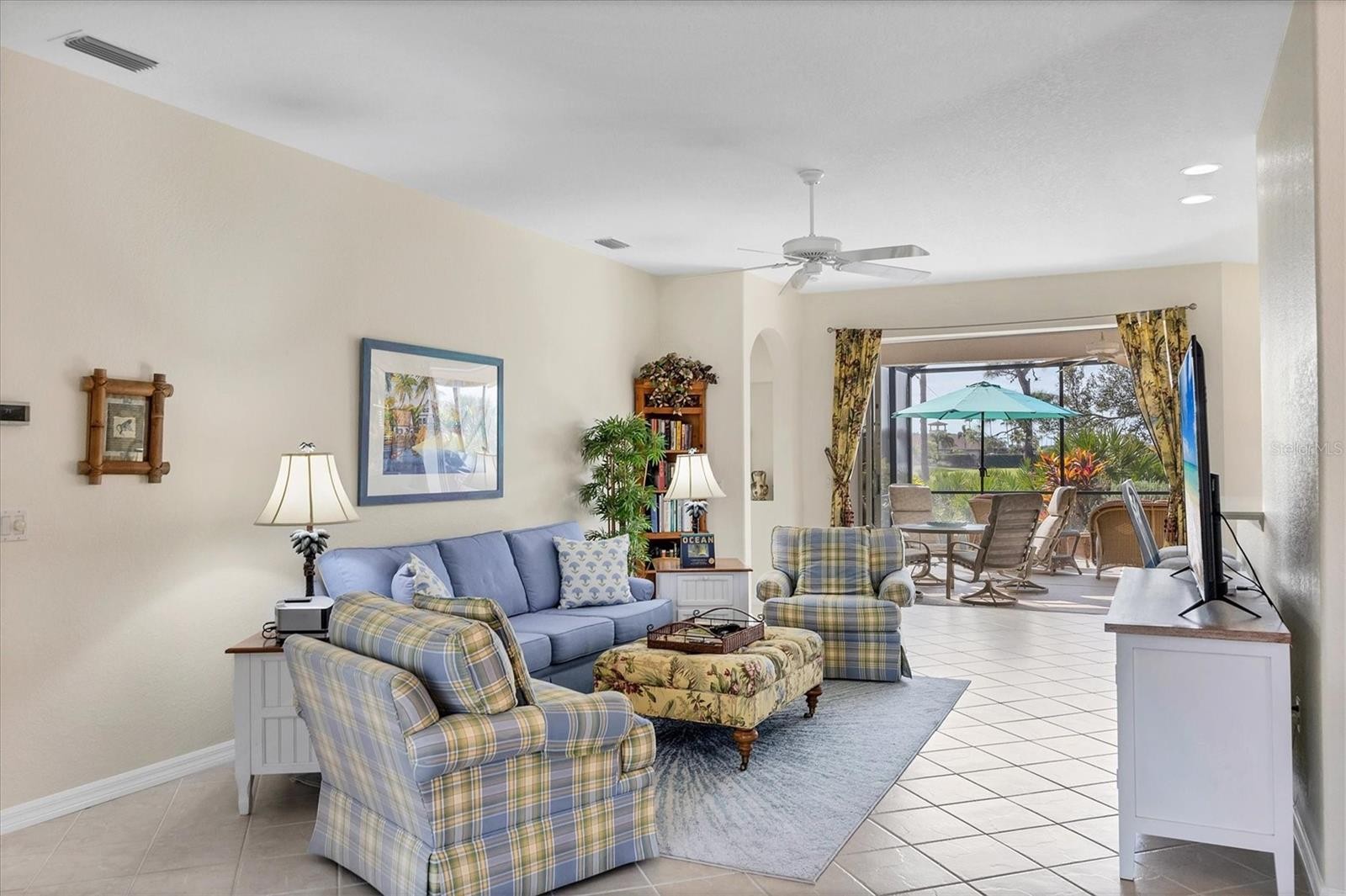 Rarely available IBIS STRAND PAIRED VILLA in Heron Creek Golf & Country Club 2 BED/2BATH+ DEN / 2 CAR GARAGE / TURNKEY FURNISHED! With just under 1,800 sq ft of living space— the thoughtfully designed floorplan was crafted to live more like a single-family home.. just envision wide open spaces with lots of elbow room. If you score this one, you may just feel like you hit a hole-in-one! A welcoming front entry (not the typical side entry) with leaded-glass double doors sets the tone for this beautifully maintained one-owner Whitehall villa, delightfully decorated in a casually elegant coastal cottage stylet his home is ready for IMMEDIATE OCCUPANCY. The open, airy floor plan delivers instant “wow” showcasing classic Old Florida views that boast lush tropical landscaping, sweeping sights of the #9 fairway of the Marsh Course, a majestic lake fountain, and the clubhouse beyond. Interior spaces include a spacious great room, formal dining area, and a cozy den/home office with French doors and triple bay windows at the front of the home—ideal as a third bedroom option if desired. The well-designed kitchen anchors the home, connecting seamlessly to the dining room, sun-filled breakfast nook, and great room so the chef is always part of the gathering, and offers abundant cabinetry with back-saving pull-out drawers, classic solid-surface counters, NATURAL GAS is piped to the home so if you prefer to cook with gas that can be a dream come true ! Cascading sliders open to an expansive lanai that blurs indoor and outdoor living and provides room to relax as-is or create your own oasis, envisioning space for a cocktail pool or spa. Guests enjoy a private suite with adjacent full bath, while the primary suite features dual closets including a deep walk-in and an ensuite bath with walk-in shower with glass block detail, dual sink vanity with makeup niche, and linen storage. Peace-of-mind updates include a newer tile roof (2023), gas water heater, and FULL PLUMBING RE_PIPE. She's been gently lived in, meticulously maintained, and filled with warmth, this beautiful villa invites you to move in, relax, and enjoy the legacy of good times and memories made here—now its your your turn to write the next chapter. Super location within the community just a short golf-cart or bike ride from Heron Creek’s 21,000 sq ft clubhouse, 27 holes of Arthur Hills-designed golf, tennis, fitness center, and resort-style pool. .Heron Creek offers exceptional amenities, a robust social activity calendar, & formal & casual dining option! Club Membership is required with 3 membership levels offered beginning at $276/month *NO CDD FEES * LOW HOA FEES include lawn care, trimmings, mulching, irrigation, FIBER OPTIC/ TV/ HIGH-SPEED INTERNET & Gated entry, conveniently located w/easy access to I-75 & US-41, Cocoa Plum Shopping, Myakkahatchee Creek trails, WELLEN PARK, Braves Stadium, COSTCO & will be just 3 miles to the new 507 Million SMH Hospital Coming to I-75 and Sumter Blvd!