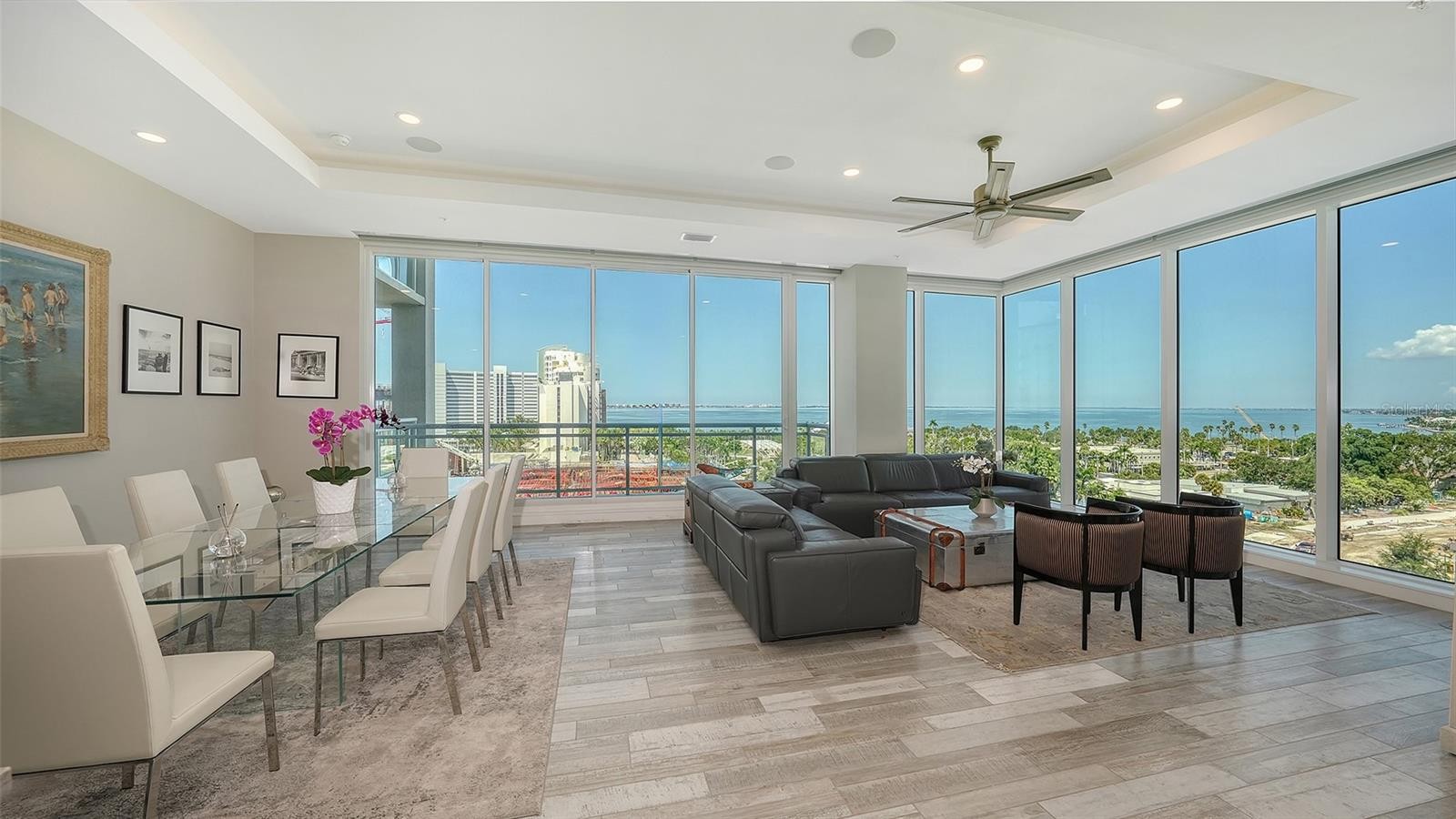 One or more photo(s) has been virtually staged. WHY WAIT FOR NEW CONSTRUCTION WHEN YOU CAN MOVE RIGHT IN TO THIS PHENOMENAL 3962 SF LUXURY CONDO, THE BEST DOWNTOWN SARASOTA VALUE, IN THE INCREDIBLY AMENITIZED BLVD, FEATURING PANORAMIC UNOBSTRUCTED WEST AND NORTH BAY VIEWS PLUS CITY SKYLINE VIEWS, AND BEAUTIFUL DESIGNER UPGRADES. Located in the desired 02 stack, this gorgeous condominium has over $350,000 in custom upgrades and enjoys spectacular sunrises and sunsets framed by floor-to-ceiling impact windows and a pocketing 12-foot sliding glass door providing a seamless connection between the indoor and outdoor spaces. Your private access elevator opens into an expansive open-concept living area and chef’s state-of-the-art kitchen customized with Caesarstone Quartz waterfall island and countertops and cutting-edge Porcelanosa backsplash, high-quality Thermador appliances including natural gas 6-burner range with griddle, dual ovens, custom wet bar with Elkay martini glass sink, Subzero wine fridge, Scotsman icemaker, and enlarged pantry. Custom cabinetry and designer lighting add sophistication throughout. Three oversized bedroom suites each have private terrace access, lux spa-like baths and large walk-in closets. The expansive primary bedroom with soaring coffered ceiling includes dual California closets, built-in custom wall unit with beverage center, walk-in soaking tub, floating vanities, and a glass and tile dual-head shower. A lovely powder room and spacious laundry room with Electrolux appliances round out the interior. Outfitted by Wicked Smart Homes, the condo features a state-of-the art smart automation system with Lutron lighting, motorized shades, and full Sonos surround sound system. Additional highlights include three glass-railed terraces, custom lighting, 8' solid-core doors with decorative glass inlays, and premium finishes throughout. This unit includes two premium secure parking spaces and a private climate-controlled storage locker. BLVD offers unmatched amenities: spectacular rooftop with infinity-edge pool/spa, fire bowls and covered grill area, concierge and on-site manager, state-of-the-art fitness center, wine cellar with private lockers, golf simulator, lounge with catering kitchen and pool table, pet lawn and dog grooming salon, conference room, and building-wide water softener. Elevator access to the private members-only club 1000 North opening soon completes the package. Live in the heart of the Rosemary District of Downtown Sarasota, just minutes from Siesta Key, St. Armands and all that Sarasota has to offer. Don’t miss this amazing opportunity