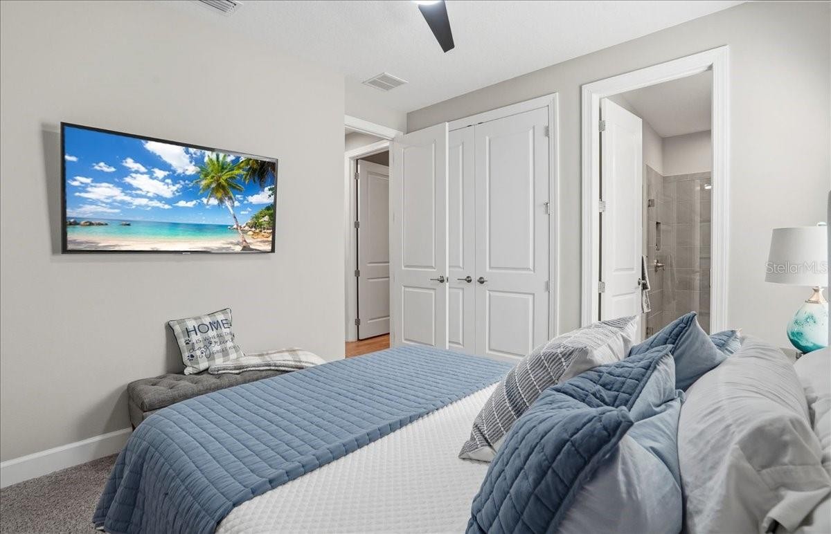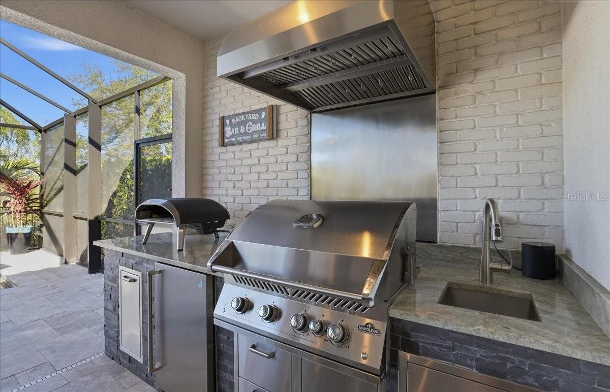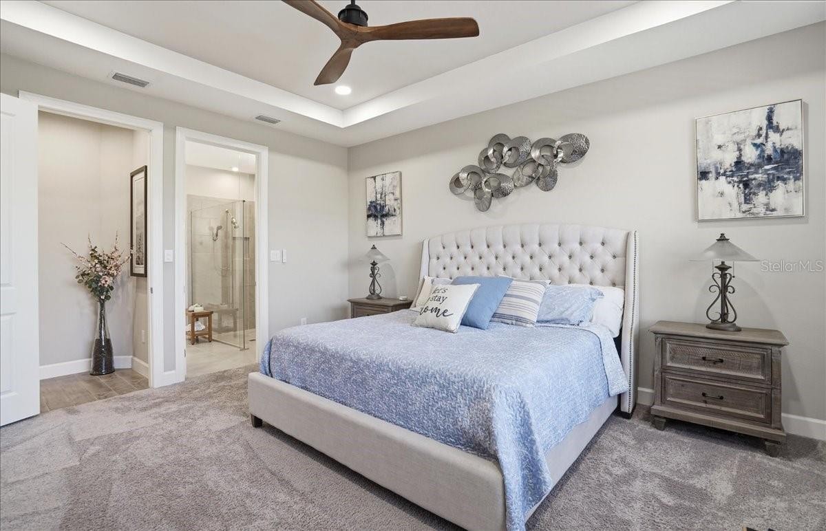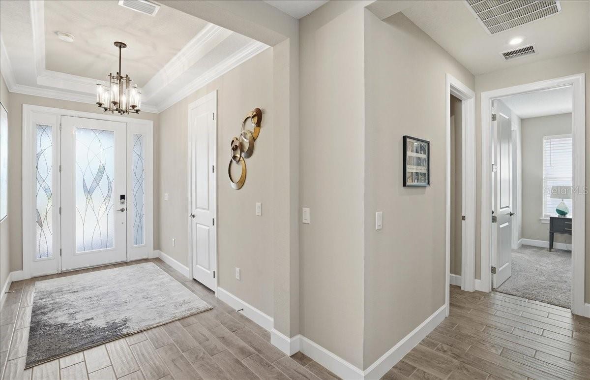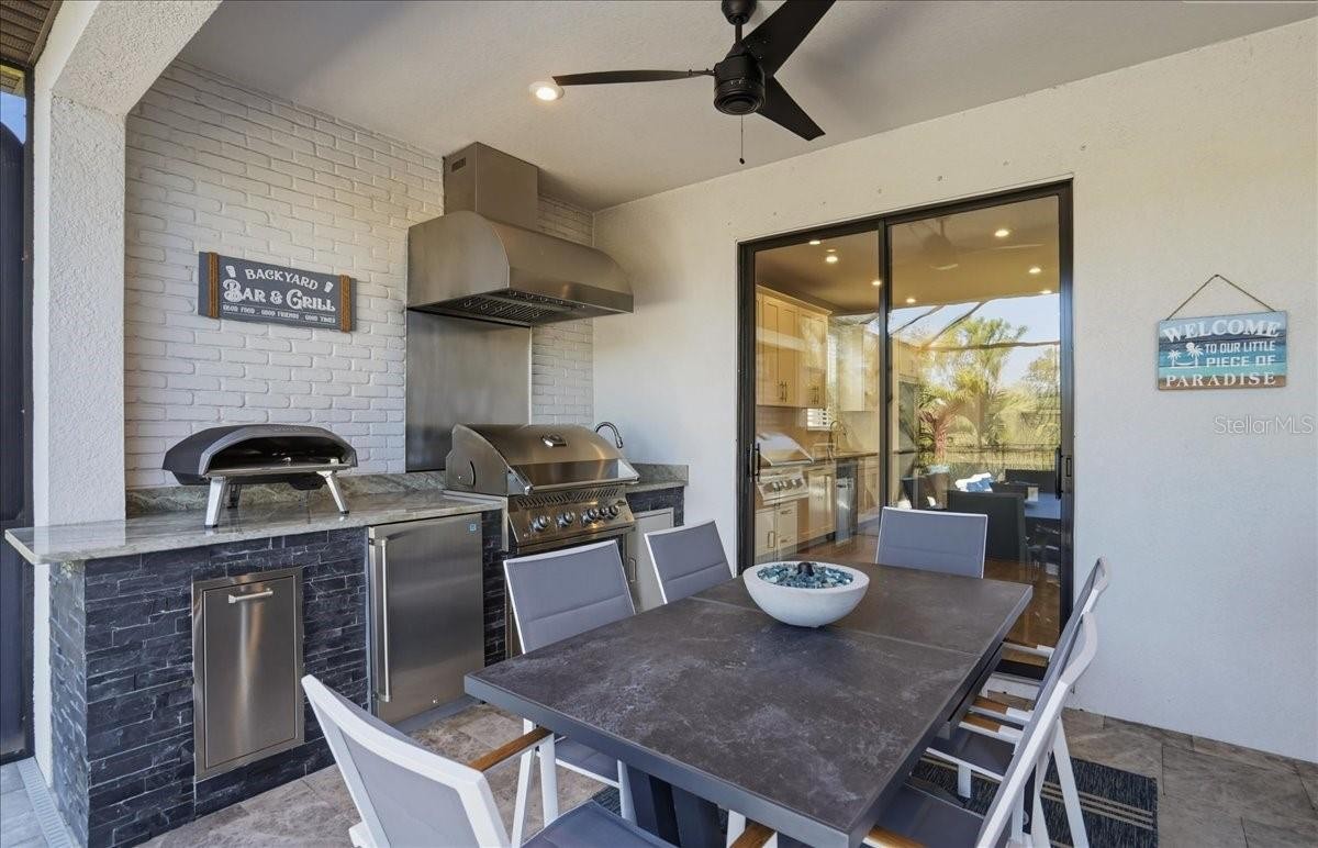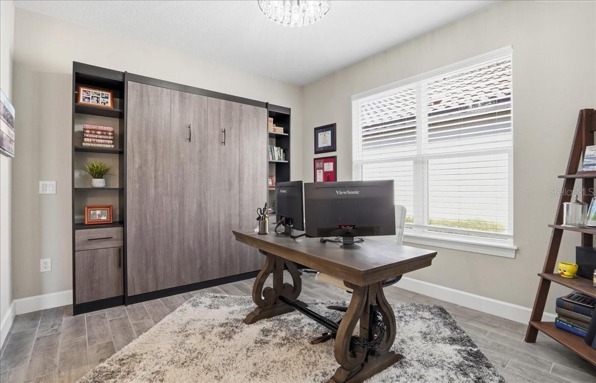 Welcome to this Taylor Morrison Lazio model (3/3 plus den) in the highly desirable Esplanade of Artisan Lakes, in north Manatee County. This spacious floor plan features 3 bedrooms, 3 bathrooms, and a den with an open-concept living area, that looks out to a large outdoor living area. The home has 10’ ceilings, 8’ doors and wood-grain tile throughout the main living areas. The expansive outdoor area features a TV viewing area, an outdoor kitchen and a pool and spa. A lush preserve beyond the lanai area complements the landscaping and creates a tranquil and private oasis. The beautiful saltwater pool and spa is heated and features twin waterfalls, a sunning shelf, changing color LED lighting, and a very durable Pebble Tec finish. The outdoor kitchen has been thoughtfully designed with a grill vented to the outside, a refrigerator, a prep sink and quartz countertops. This wonderful outdoor area has travertine pavers and is surrounded by No-see-um screening. At the heart of the home is the extended kitchen with beautiful quartz countertops and upgraded cabinetry. There is plenty of room for a kitchen table and/or you can dine at your kitchen island. There is a spacious walk-in pantry, some pull-out shelving in the cabinets and under mount lighting. The dining area features a custom built-in bar/beverage area with seating. There is a double-door wine frig, a wine rack and quartz countertops. With built-in speakers in the main living area this home really is a wonderful home for you and your guests to enjoy! The owner’s suite offers a peaceful retreat with an en-suite bathroom. The spacious walk-in closet has beautifully designed built-ins to help you stay organized! The bathroom has dual vanities, a gorgeous seamless glass walk-in shower and a private water closet. The split floor plan has two additional bedrooms located at the front of the home. Bedroom 2 is adjacent to a full bathroom that has a tub/shower. Bedroom 3 has a closet with built-ins and an en-suite bathroom with a walk-in shower. The den/office has pocket doors and a built-in queen-sized Murphy bed; perfect for your overnight guests. The laundry room has upper and lower cabinets with a sink and quartz countertops. The 2-car garage has an epoxy floor finish and the driveway has been widened to allow ample parking room for two vehicles and walking room for visitors. In addition, LED landscape lighting has been added to the front and back of the house. This home has been immaculately cared for and lovingly maintained. It is truly a move-in ready home inside and out! The Esplanade of Artisan Lakes is a gated resort community offering two pools, a resistance pool, and two hot tubs. There are two amenity centers, dog parks,, pickleball and tennis programs and classes, along with special interest groups and clubs. The wellness program includes strength and cardio equipment, fitness classes, personal training and water aerobics. Enjoy the spa services, social events, wine tastings, cooking experiences and arts and crafts. Yard maintenance, irrigation, cable and internet/wifi are also included with your HOA dues. The Esplanade is located between Hwy. 41 and I-75 from Moccasin Wallow Rd. This is a growing area with shopping, dining and a new hospital being built just a couple of miles away. Beautiful beaches at Siesta Key, Anna Maria Island and St. Petersburg can all be reached in under an hour.