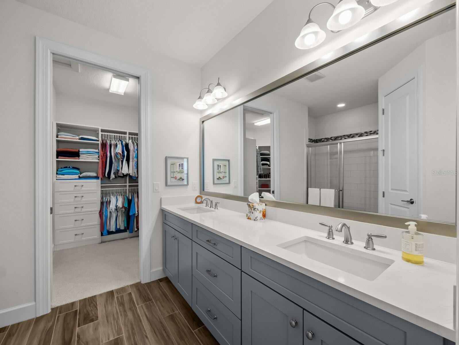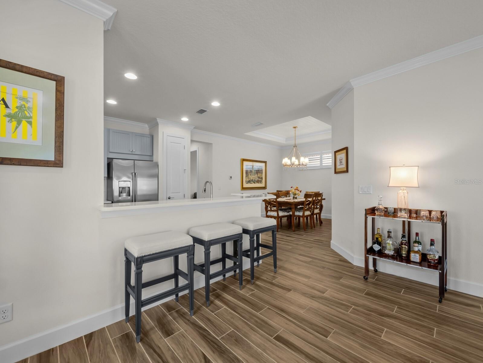 Cheers to the resort lifestyle you’ve been dreaming of in the highly desirable, gated Esplanade on Palmer Ranch! This stunning maintenance-free waterfront villa with a private pool offers luxury, comfort, and thoughtful upgrades, all within a vibrant, amenity-rich community with no CDD fees. This Nantucket inspired, light-filled 3-bedroom, 2-bath Arezzo model features a thoughtfully designed open floor plan with soaring ceilings, wood-look plank tile flooring, 8-foot doors, tray ceilings with crown molding and shiplap inlay, and elegant neutral tones throughout. The spacious living and dining areas flow seamlessly, creating the perfect space for entertaining or everyday living. A private office/den with pocket slider doors with glass inserts provides flexibility for working from home or pursuing hobbies. The delightful Chef's kitchen makes cooking a breeze with its Quartz countertops, stainless steel appliances, gas cooktop, farmhouse sink, soft-close cabinetry, and stylish backsplash—all overlooking serene lake and pool views. The split-bedroom layout ensures privacy, with the primary suite serving as a true retreat featuring breathtaking water views, a generous walk-in closet, and a spa-inspired ensuite bath with dual vanities, glass-enclosed walk-in shower, and designer finishes. Guest bedrooms are spacious, filled with natural light, and offer ample closet space, with one bath doubling as an ensuite. Step outside to your screened lanai, where a heated pool and a peaceful lakefront setting create the ultimate indoor-outdoor living experience. Additional builder upgrades include whole house impact windows and doors, extended 4' garage, garage attic stairs, 8' solid core doors, multiple pocket doors, and radiant barrier insulation. Recent owner updates include lighting fixtures, ceiling fans, plantation shutters, laundry room cabinets, laundry entry door with glass insert to maximize natural light, newer refrigerator, range, and carpet in bedrooms. Esplanade on Palmer Ranch offers a true resort-style lifestyle, complete with a Lifestyle Director, elegant amenity center, Bahama Bar and restaurant, catering kitchen, fitness center, wellness services, yoga and aerobics studios, resort pool and spa, fire pit, tennis, pickleball, bocce ball, dog parks, walking trails, playground, splash pad, food trucks, community events—and a private entrance to the Legacy Bike Trail. Golf carts are welcome, adding to the fun and social atmosphere. This lot was selected by the homeowner due to its amazing water view and its close proximity to both the amenity center and Legacy Trail. Ideally located near Siesta Key and Nokomis beaches, top-rated schools, shopping, dining, entertainment, Costco, and all that Sarasota and Venice have to offer—this home truly has it all. Don’t miss the opportunity to own this exceptional waterfront home where luxury, convenience, and resort living come together beautifully.