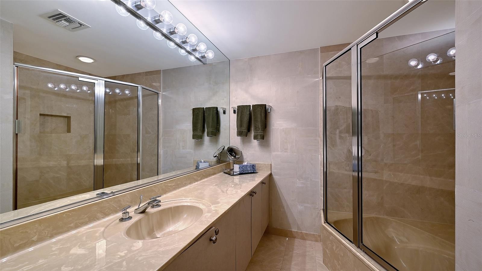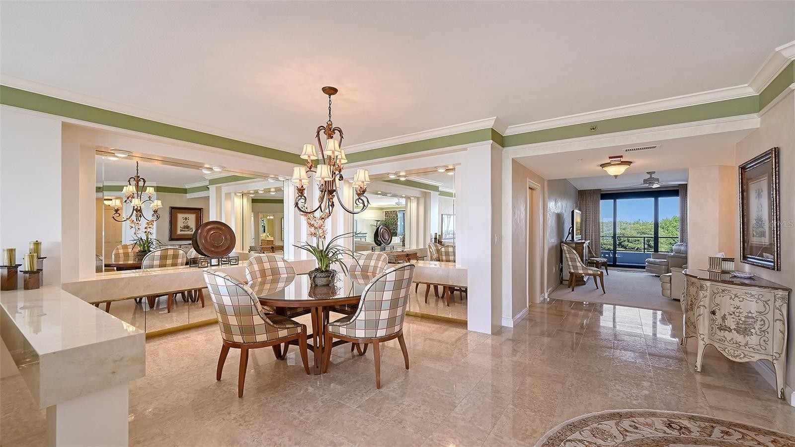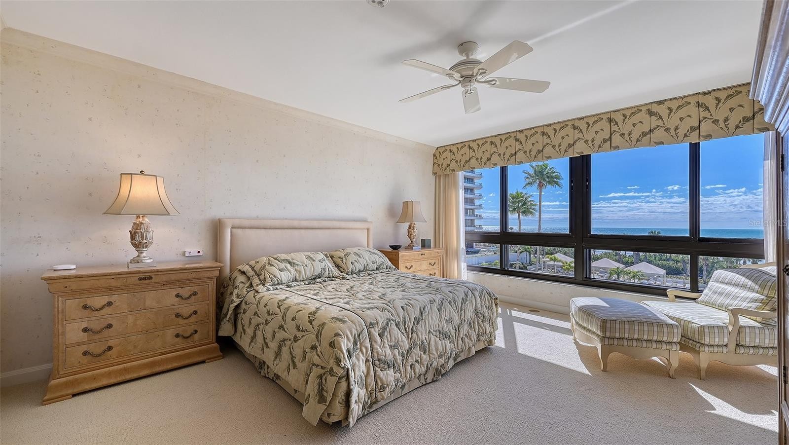 The Sanctuary behind the gates of the Longboat Key Club located on the beachfront is one of the most desirable addresses on Longboat Key, Florida. New to the market, this full on, direct Gulf view residence B305 in Building III at 545 Sanctuary Drive offers about 3,000 square feet with three bedrooms & 2 ½ bathrooms providing spacious and elegant beach front living. From the handsome double door entry, the gleaming marble floor dining area invites you into this luxurious condominium home. Then, you will be treated to a sparkling like diamonds daytime Gulf water views or in the evening, breathtaking sunsets in shades of purple & orange. These magnificent direct Gulf views can be enjoyed from the attractively furnished living room and the serene primary bedroom & of course from the 21-foot-long covered Gulf side terrace. This unique Carlyle floorplan also features a second, east facing private terrace which can be accessed through the guest bedroom as well as from the handsome kitchen as you enjoy morning sunrises with a cup of coffee. This beach retreat is in impeccable condition with high quality furnishings plus electric storm shutters on all sliding doors. This unit also has one under building garage space #150 plus a climate controlled storage cage. Decorated in neutral tones, this home offers coastal elegant style throughout. The cozy eat in kitchen has custom built light wood cabinetry, high end finishes, cream colored granite counter tops, tile backsplash & double ovens. The gracious, large primary bedroom suite is a tranquil retreat with Gulf water views, a large walk-in closet & a spa like En Suite bathroom with double sinks, a soaking tub & a walk-in shower. The Sanctuary offers an exclusive resort lifestyle. The beautiful beach front measures 1200 feet of pristine white sand. The resort style, heated Olympic sized swimming pool includes a 25 meter lap lane plus there is a separate outdoor whirlpool & fire pit area. Amenities include two lighted Har-Tru tennis courts & a state of the art fitness center with saunas located in the newly redecorated clubhouse which offers a fully equipped kitchen & entertainment room. On site management, 24 hour security & 18 acres of meticulously maintained grounds & beach enhance the sense of exclusivity & security.