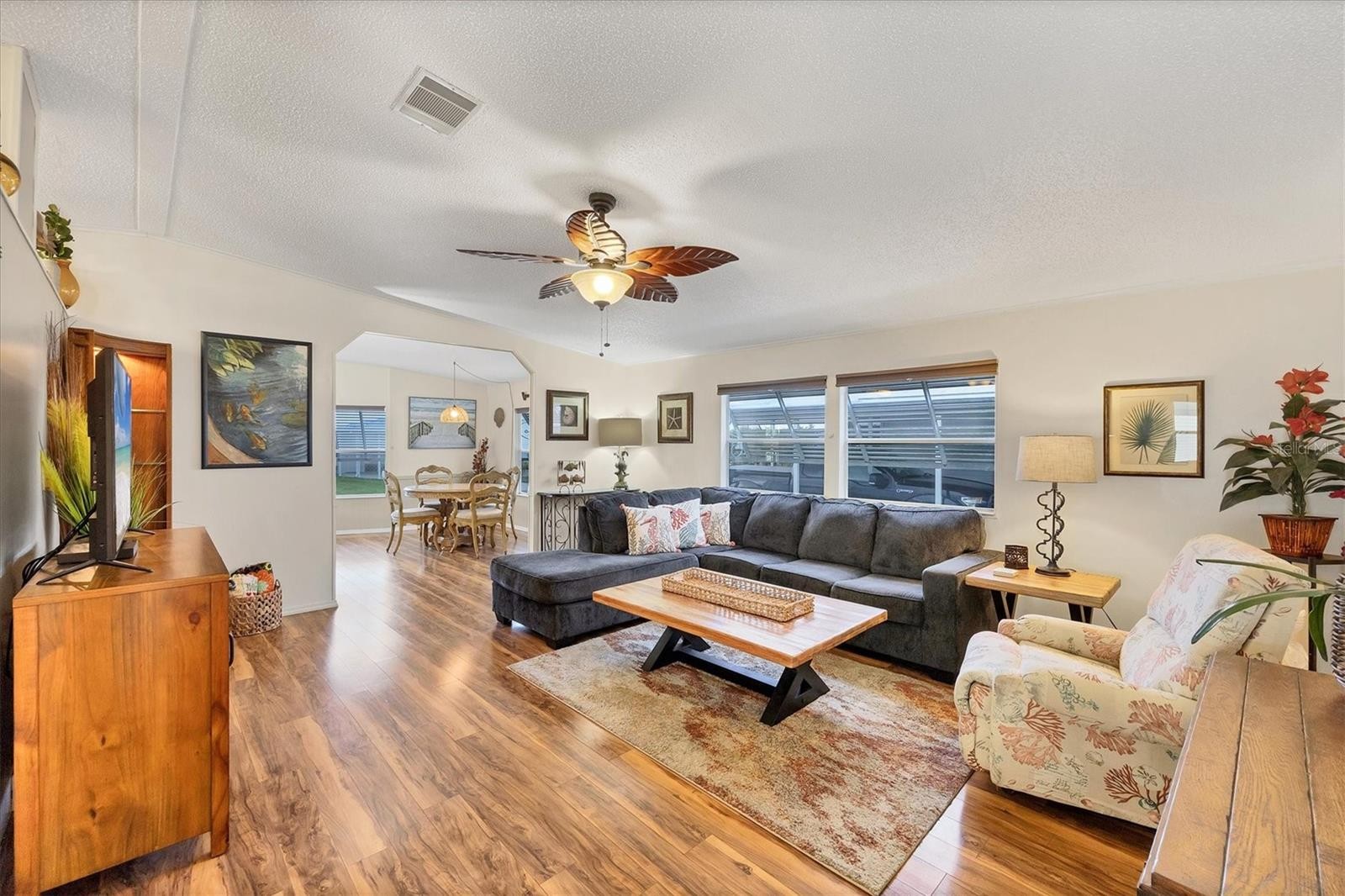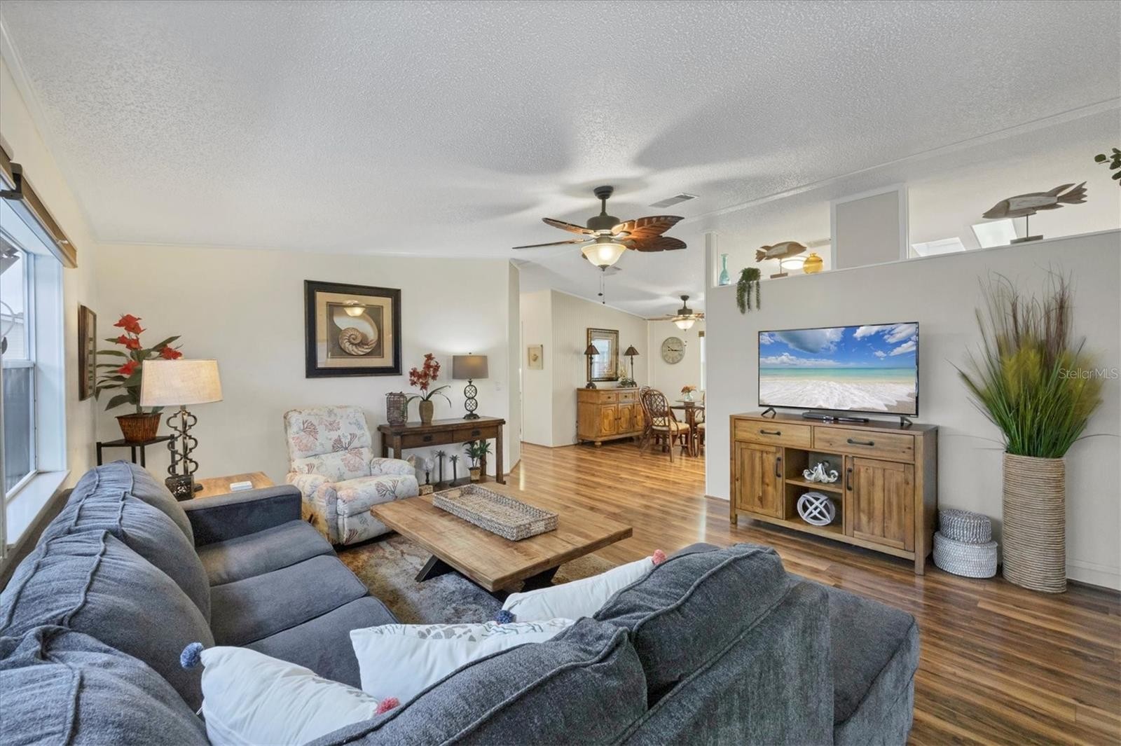 *Buyer financing fell through so you get a second chance at this incredible opportunity!* Welcome to 546 Amberjack Drive, a beautifully updated double-wide manufactured home in the vibrant 55+ gated community of Harbor Isles. From the moment you step inside, you’ll feel the warmth and charm of this open-concept interior, featuring an inviting living and dining area that flows seamlessly into a spacious family room — perfect for entertaining or relaxing. The bright, updated kitchen offers ample cabinetry, a cozy breakfast nook, and a functional layout that makes daily living a breeze. Toward the back of the home, the generous guest bedroom includes a large walk-in closet and is conveniently located next to a full guest bathroom. The interior laundry room also doubles as a versatile office or creative space. The primary suite is a true retreat — expansive and private, with another oversized walk-in closet, a second closet for extra storage, and a large ensuite bath. The entire home is filled with natural light thanks to the multiple skylights! Outside, you'll find a recently redone carport cover and spacious 12x12 shed attached - perfect for tools, hobbies, or extra storage. Harbor Isles is one of the area’s premier land-owned communities, offering resort-style amenities and a true sense of community. Residents enjoy a heated pool and spa, clubhouse, fitness center with sauna and locker rooms, tennis and pickleball courts, shuffleboard, bocce, and more. The active clubhouse features a full social calendar, hobby rooms, and an event center. Outdoor lovers will appreciate the pavilion by the water, marina with boat slips, kayak/canoe launch and storage, fishing pier, and scenic walking and biking paths. Harbor Isles is golf-cart friendly, pet-friendly, and perfectly located—just minutes to the new Downtown Wellen Park, world-famous Gulf beaches, ample shopping, top-rated medical facilities, restaurants, and the spring training stadiums for both the Braves and the Rays. Don’t miss this incredible opportunity to live the Florida lifestyle you’ve been dreaming of — with comfort, community, and convenience all in one place. All furniture is negotiable.