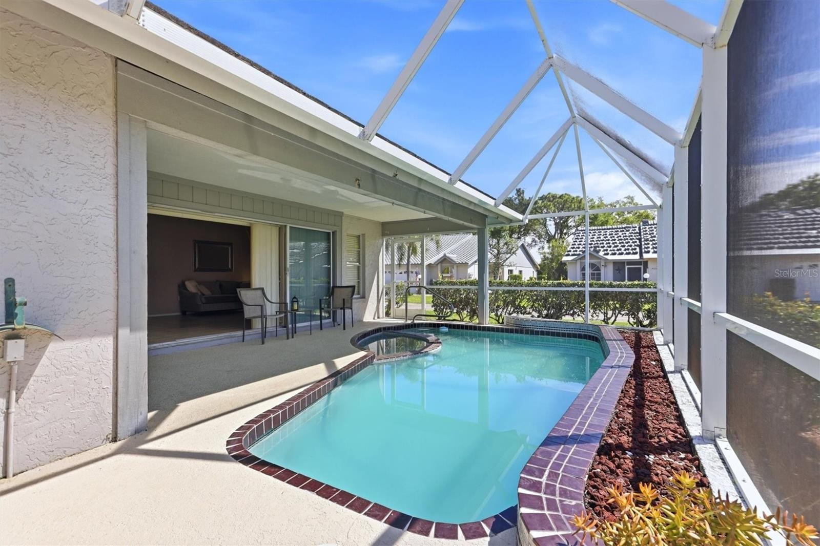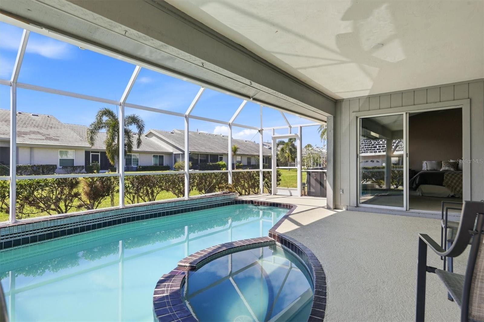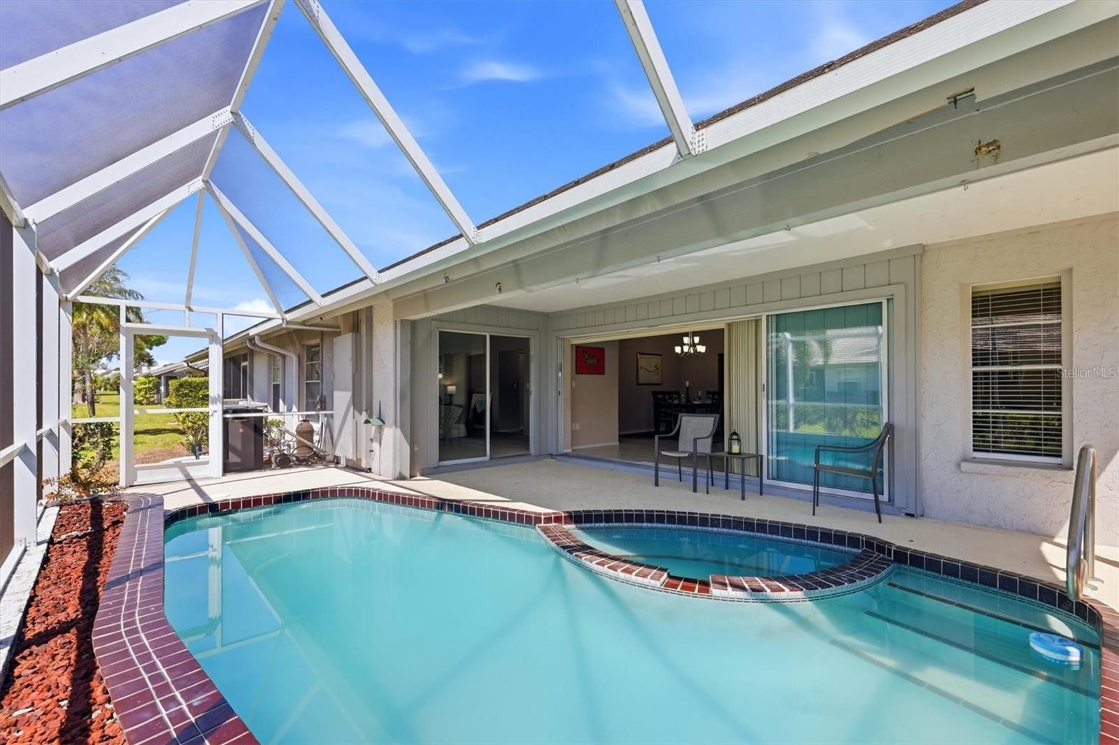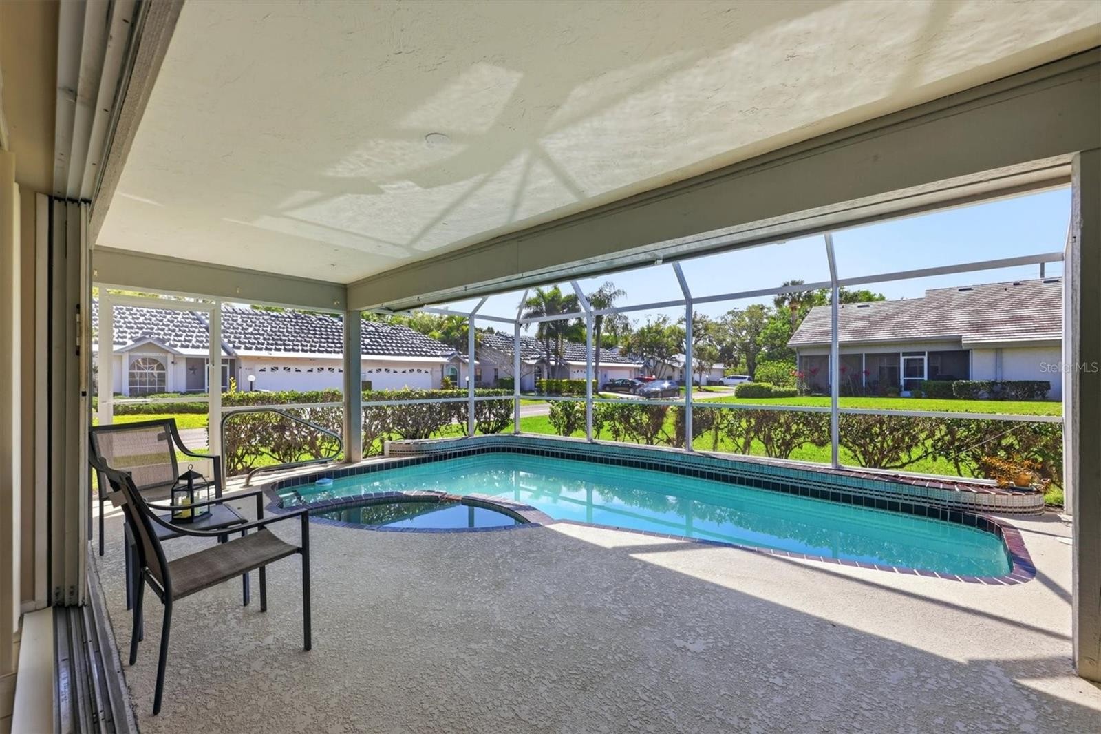 You are Living in Paradise (Sarasota) and you have just found your diamond in the rough. You went to the mall this morning, but this afternoon you're a little tired, but you like to swim, but you don't want to go all the way to the beach. How about this option? Just walk 10' onto your lanai and there it is, your own pool. Get your water workout without leaving home. This great home in Crestwood Villas is a beautiful place to call home, or you can call it your Winter Getaway Spot. The ideal owner of this home wants to put their personal touches into their investment. This is a spacious condo villa with almost 1400 Sft with a central Great Room that is 22 x 14. The primary bedroom is 16 x 14, plus 2 6x4 walk in closets, plus a 12 x 11 en-suite bathroom, that is BIG. The Guest Bedroom is 14 x 11.5, and it is a split plan. The kitchen has eat-in space, an outside window, and stainless appliances. This kitchen is also ideal for the perfect kitchen designer. Crestwood Villas is ideally located on the south side of Sarasota, and 15 to 20 minutes from the downtown scene, the beaches on the barrier islands, and the UTC Mall. Sarasota County is full of parks, baseball, softball, and soccer fields. It has world class medical facilities, plus arts, and social events year round. Take a look at your diamond in the rough and imagine what you can do to make it shine.