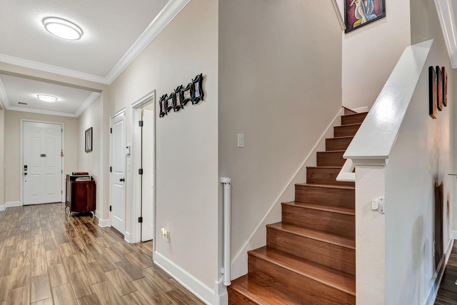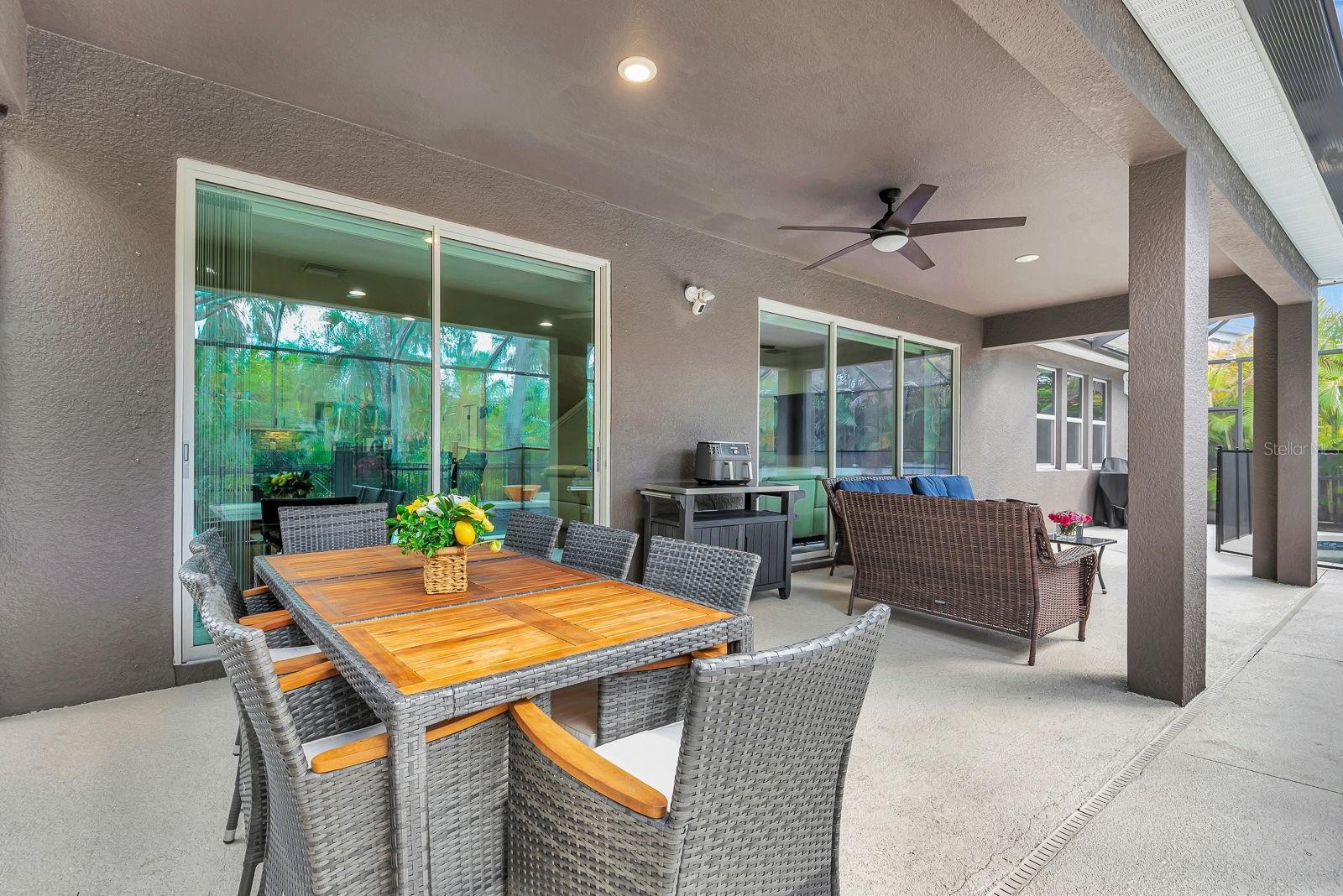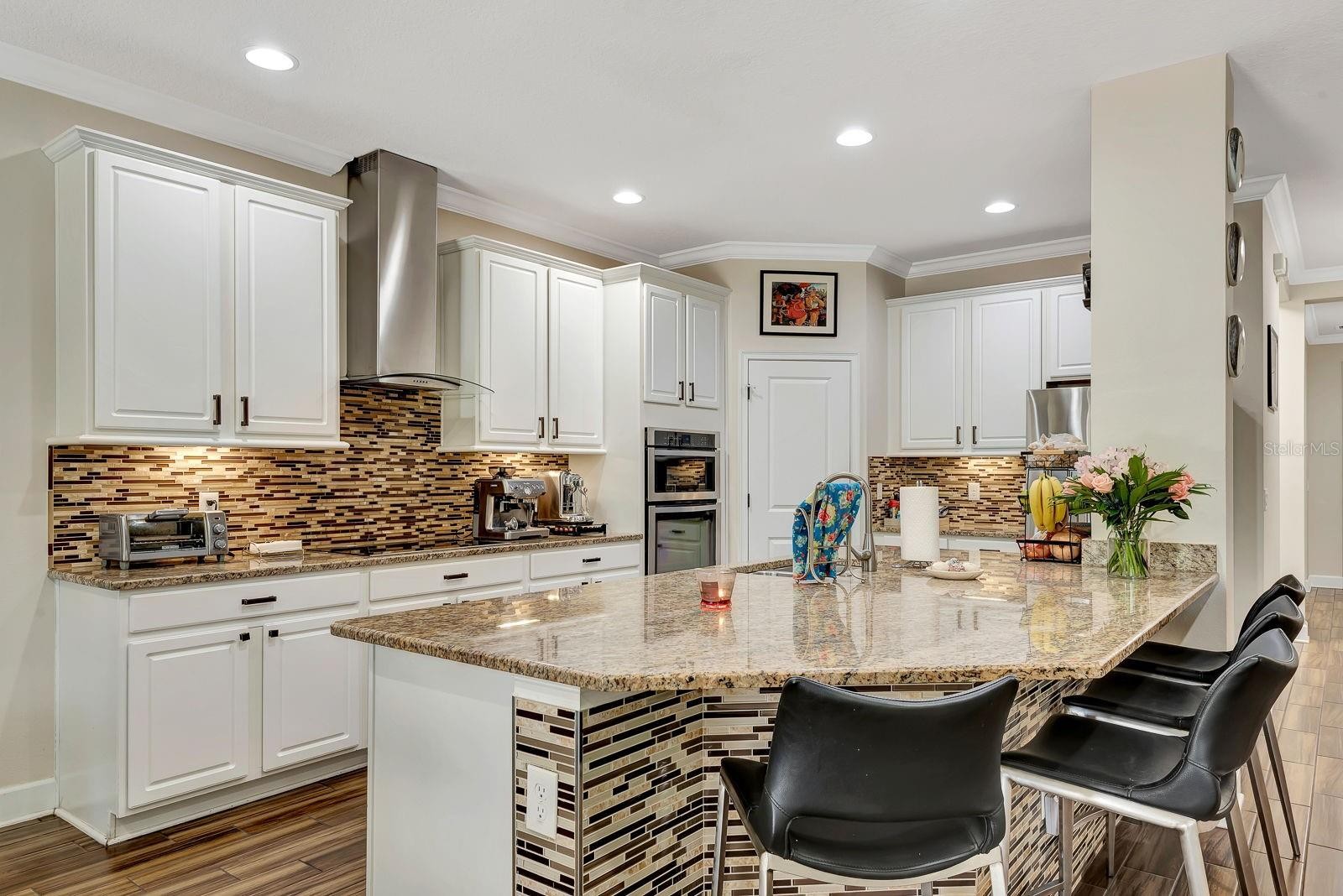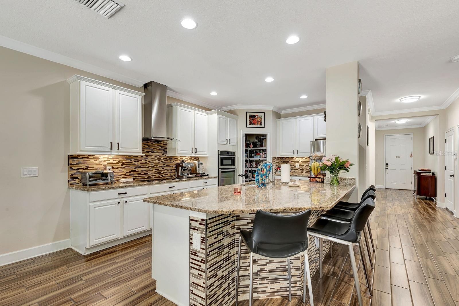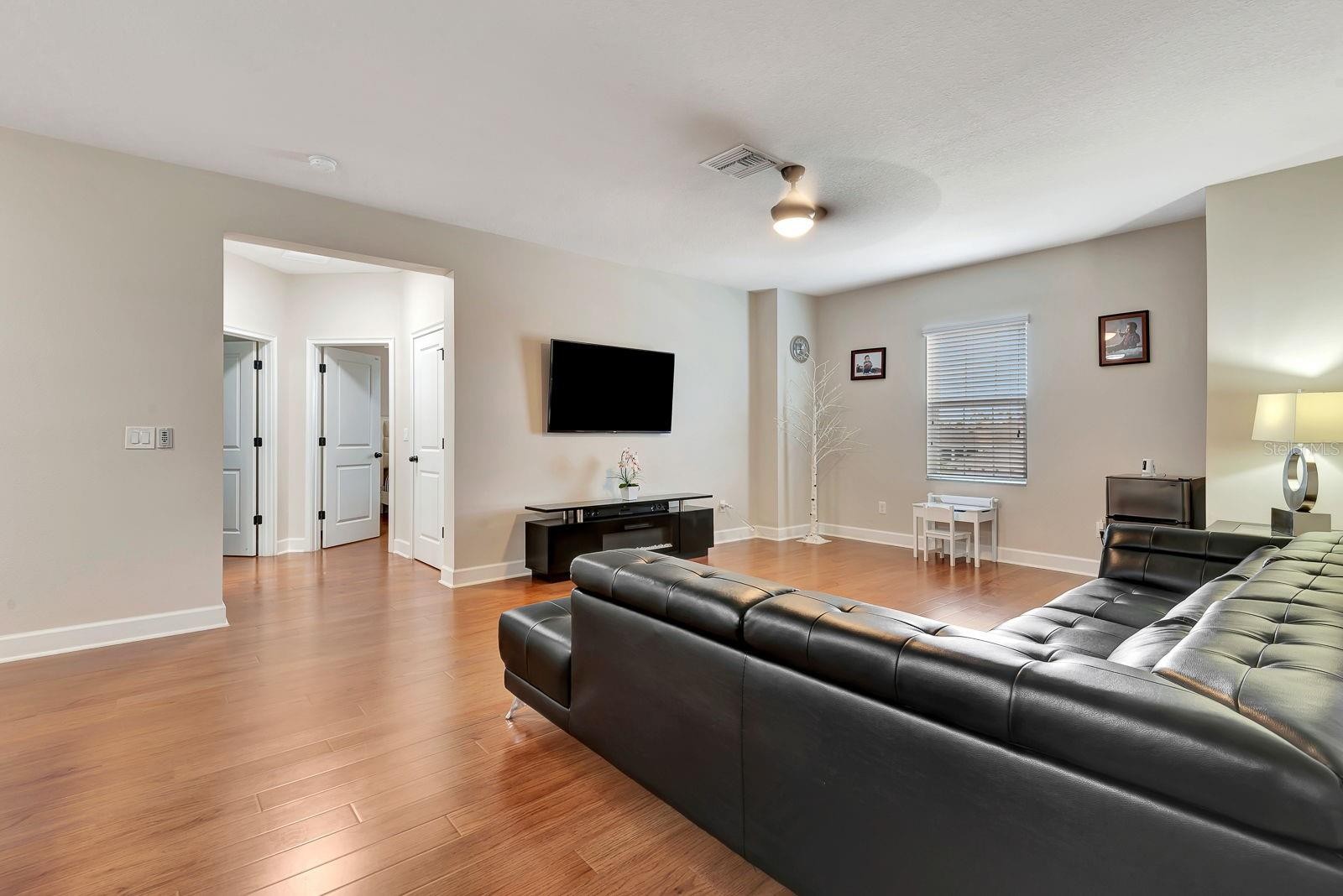 Experience luxurious living in the gated community of Oakleaf Hammock with this tastefully designed 2017 home offering over 3,500 sq ft of living space and a full 4-car garage. This 5-bedroom, 3.5-bath home also features a private office, an upstairs loft, and an oversized bonus room, providing incredible flexibility for work, play, and guests. Step inside to an open-concept living, dining, and kitchen area highlighted by porcelain wood-look tile, crown molding, and soaring ceilings that create a bright, welcoming feel. The dream kitchen boasts 42" custom cabinets, granite countertops, tile backsplash, stainless steel appliances, an electric cooktop with vent hood, a built-in wall oven and microwave, a top-of-the-line 4-door refrigerator, and a convenient closet pantry. A large breakfast bar flows into the dining and living spaces with surround sound and double sliders leading to the covered porch, perfect for entertaining. The first-floor primary suite offers a true retreat with a spa-like ensuite featuring a granite double-sink vanity, huge seamless glass walk-in shower with dual shower heads, and a generous walk-in closet. Also on the main level are a French-door office/flex room, a half bath with a linen closet, and a laundry room. Upstairs, a spacious loft plus an oversized bonus room provide additional living space ideal for a media room, game room, or second office. Two 12x12 bedrooms share a Jack-and-Jill bath witha granite vanity, while two more bedrooms share a third full bath. Outside, you'll find an oversized paver driveway, professional landscaping, and an exterior Ring camera system. The covered back porch overlooks the luxurious POOL with Screened Lanai! This home offers easy access to I-75, making commutes to Tampa, St. Petersburg, Sarasota, and the growing Palmetto and Parrish areas a breeze. Just minutes from Ellenton Premium Outlets, top-rated schools, shopping, dining, and medical facilities, this home is also a short drive to University Town Center Mall, St. Armands Circle, Selby Botanical Gardens, the Ringling Museum, and Florida's breathtaking Gulf beaches. Homes with this much space, privacy, and natural beauty are a rare find! Don't wait -schedule your showing today and make this exceptional home yours!