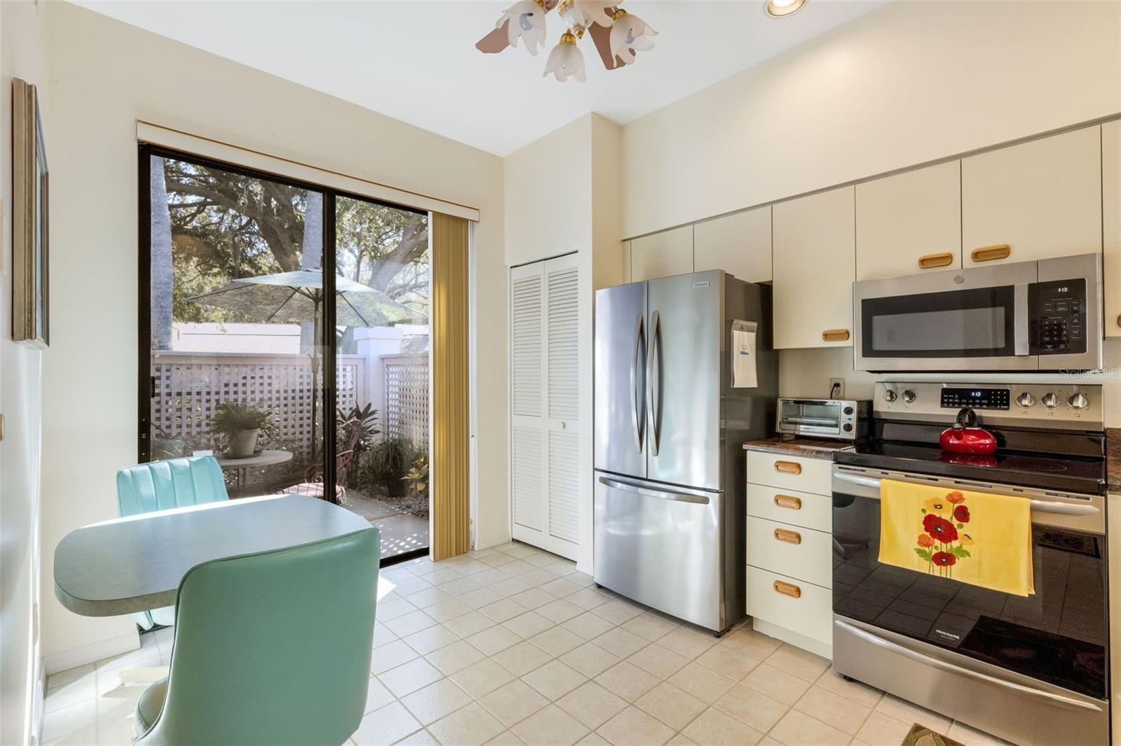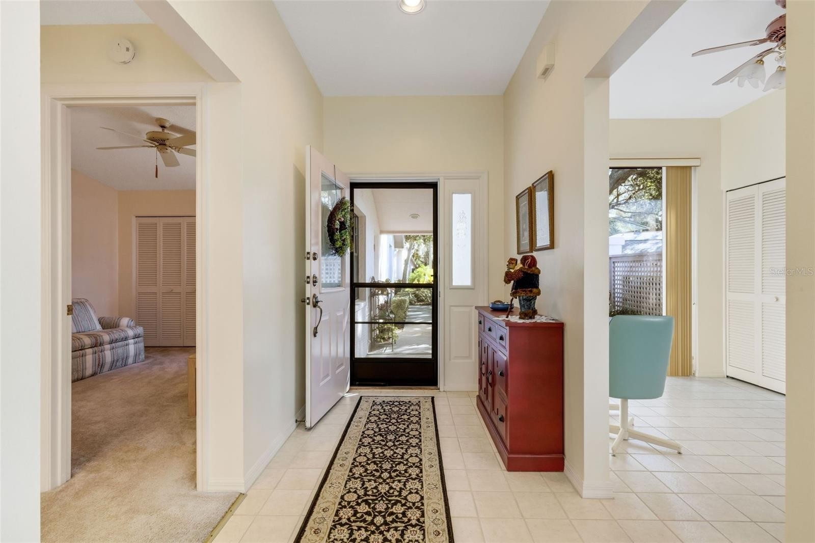 This charming end-unit villa offers two bedrooms and two bathrooms in the desirable Meadows community. Meticulously maintained and completely maintenance-free, the home is in excellent condition and designed for easy, single-level living. A lattice-enclosed patio off the kitchen and a spacious rear lanai with sliding doors provide wonderful indoor-outdoor living, while the expansive grassy backyard is ideal for play or relaxation. Vaulted ceilings and a large dining-room window with plantation shutters fill the home with natural light, creating an open and airy feel. The eat-in kitchen features granite countertops and newer appliances. The generous primary suite boasts a vaulted ceiling, walk-in closet, and en-suite bathroom with a large dual-sink vanity and a walk-in shower with built-in bench. Additional highlights include an attached one-car garage with durable storage shelving, hurricane-rated roofs installed in 2024, and scheduled exterior painting in early 2026—allowing the new owner to select their front-door color. The Hampstead Heath community pool has also been recently resurfaced. The Meadows is a resort-style community spanning 1,600 park-like acres with 14 miles of biking and hiking trails, a fitness center, Junior Olympic pool, pickleball courts, and a full calendar of activities. Conveniently located near downtown, beaches, the airport, I-75, UTC Mall, Nathan Benderson Aquatic Complex, Mote Marine, and endless shopping, dining, and entertainment. No repairs needed—this villa is spotless, move-in ready, and easy to show.