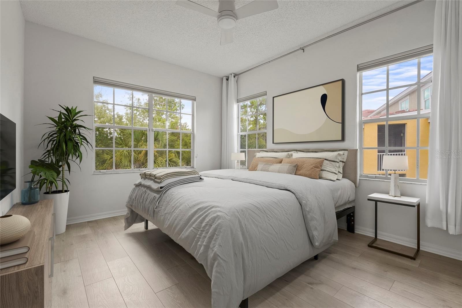 One or more photo(s) has been virtually staged. PRIME LOCATION, 3 Beds/2Baths, END UNIT, RESORT STYLE COMMUNITY, Walk to BENDERSON, MOVE IN READY!! Welcome to 5551 Bentgrass a beautifully updated 3-bedroom, 2-bath second-floor condo located in the resort-style, gated community of Las Palmas in Sarasota. This spacious unit features freshly updated lighting, newly installed flooring, and upgraded kitchen cabinets, offering a move-in-ready experience with modern touches throughout. This END UNIT offers privacy as well as extra windows to make the space feel bright and airy! Enjoy an open-concept layout with a split bedroom floor plan, generous closet space, and a screened-in lanai overlooking the conservation perfect for your morning coffee. The primary suite includes a walk-in closet and private bath, while the two additional bedrooms offer versatility for guests, home office, or family living. Laundry room and One Car attached Garage give this home all of the convenience you will need for comfortable living. For my nature enthusiast, Las Palmas has direct access to Benderson Park where you can bike, walk, row or just enjoy the beautiful nature around you! Las Palmas is known for its resort-style amenities including two swimming pools, hot tub, fitness center, clubhouse, tennis courts, and even an on-site car wash station. Located just off University Parkway, you're minutes from UTC shopping and dining, I-75, Nathan Benderson Park, and a short drive to downtown Sarasota and award-winning beaches. Whether you're a first-time buyer, investor, or snowbird looking for a seasonal home, this is a rare opportunity for affordable Sarasota living in a prime location.
