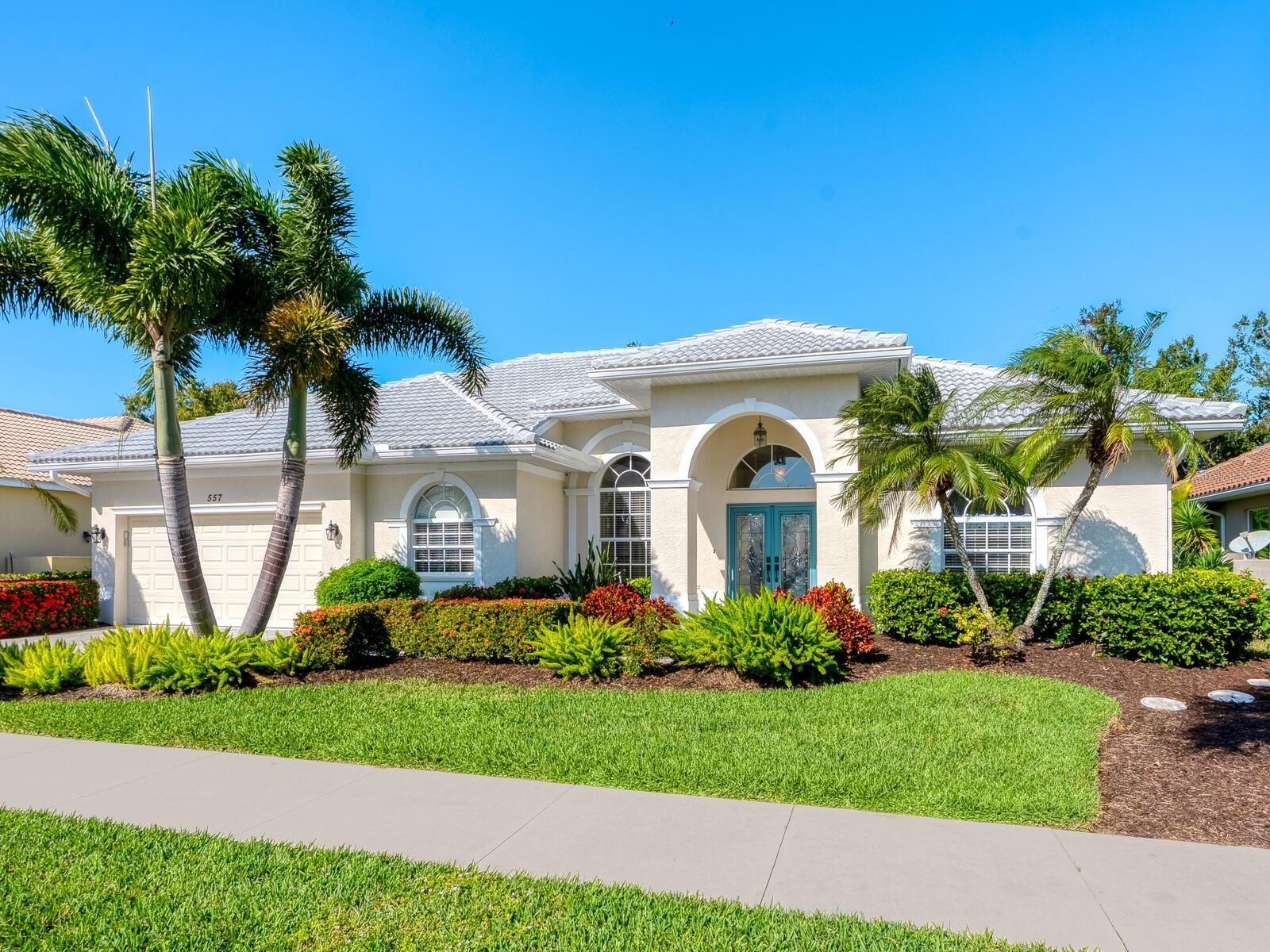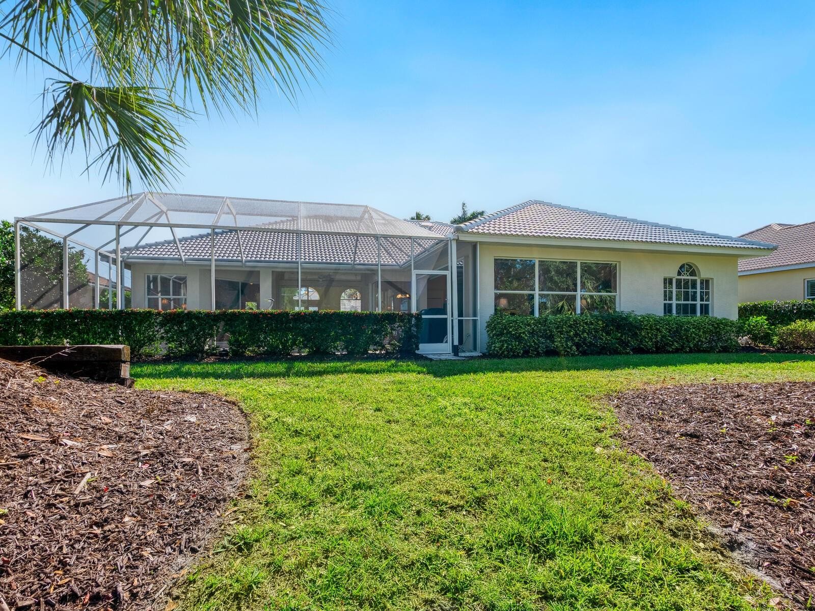 This stunning Sawgrass Aruba III model offers an incredibly spacious and timeless design, featuring a sought-after floor plan. Restyled kitchen December 2025 to include new stainless appliances and stylish quartz counters. With new roof installed in 2024 and a new air-conditioning system from 2022, this custom J&J home is ideal for those seeking comfort and style. Overlooking a picturesque blend of golf greens, Curry Creek and mature trees, the property boasts a large, heated pool, making it an ideal retreat. Being sold turnkey furnished, this home allows you to start enjoying the Florida lifestyle immediately. Breathtaking views from living and family rooms. The layout includes three generous bedrooms, two full baths, and a den/office, all designed in a fabulous split plan to maximize privacy. Stately vaulted ceilings enhance the feeling of openness, while a neutral palette creates an energizing yet tranquil atmosphere. Unique architectural details such as detailed arches, crown molding, transom windows, and a built-in entertainment system add character and charm. The well-appointed kitchen features inspiring views, a breakfast bar, a center island and white cabinetry, making it a delightful space for cooking and entertaining. The owners’ suite serves as a serene oasis, overlooking the pool, complete with double-glass entry doors, a walk-in closet and a luxurious bath with dual sinks, a walk-in shower, a separate toilet and a large bathtub. Outdoor living spaces are as inviting as the interior, offering multiple sitting areas for relaxation and enjoyment. Just minutes from downtown Venice, beaches and Legacy Trail, Sawgrass is a gated community that provides a clubhouse, a 70-foot heated pool, a fitness center, four pickleball courts and optional golf, all with low HOA fees and no CDD fee.